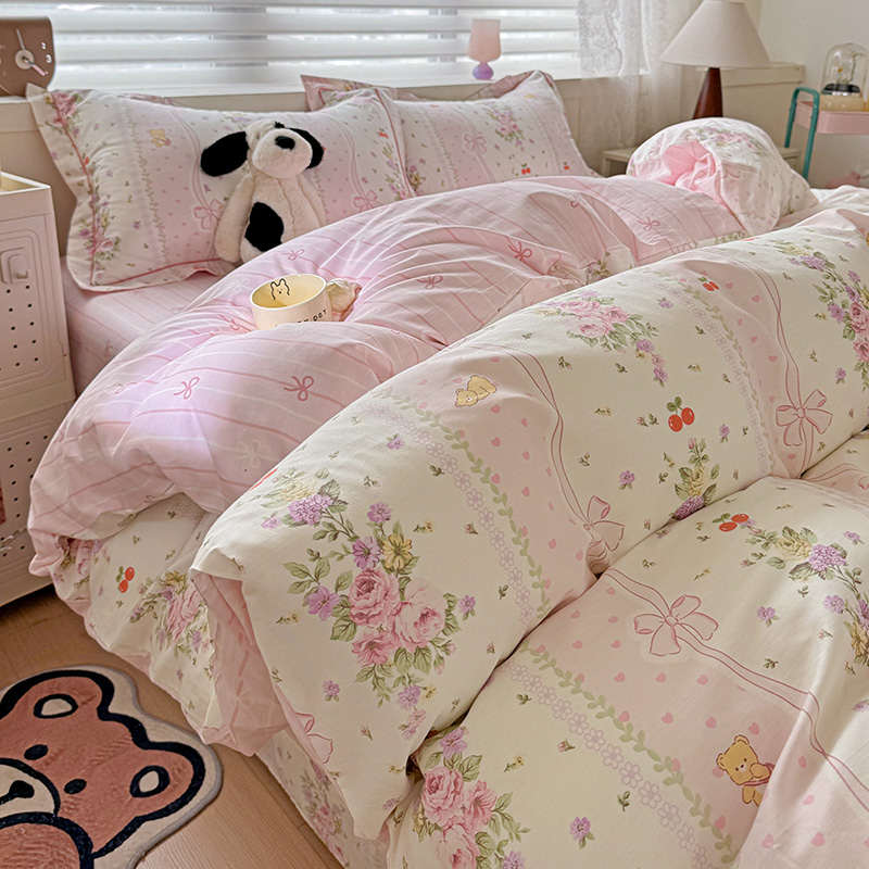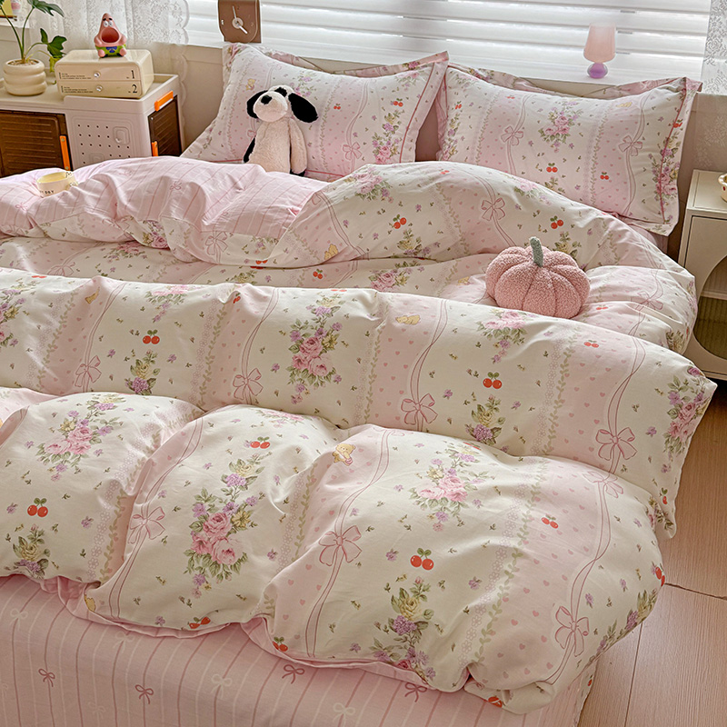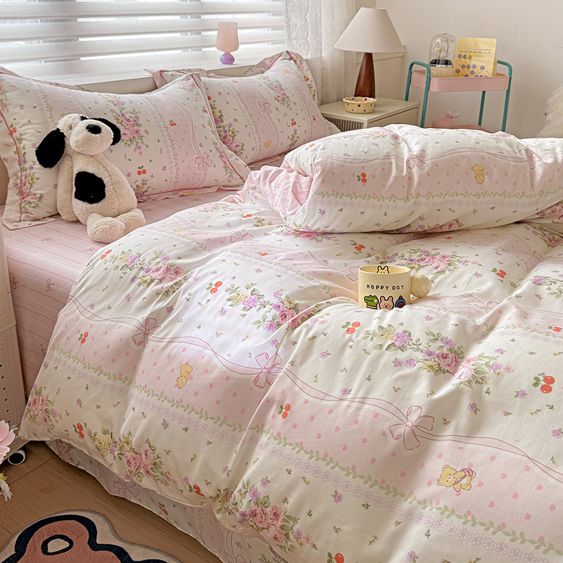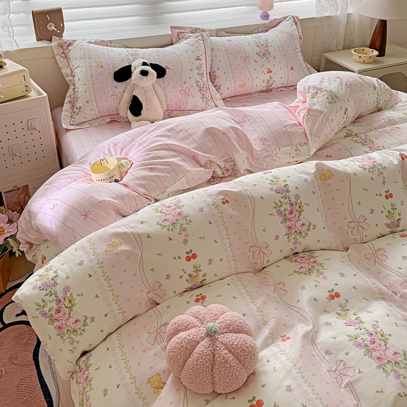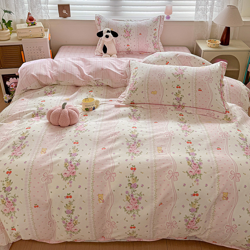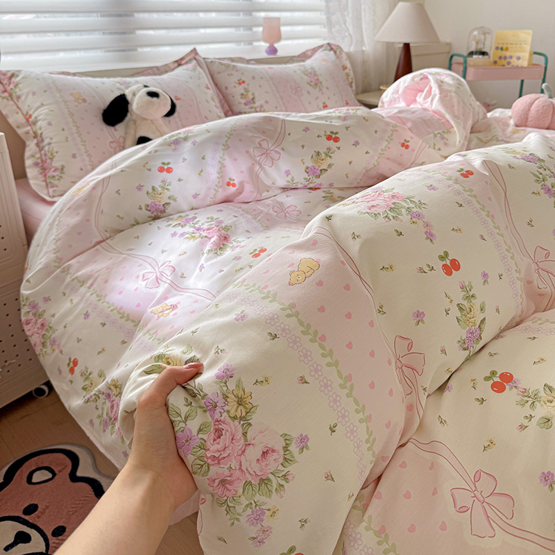 商品名称:乐童 2024新款直播爆款13070纯棉印花吊边款一字绣四件套第八波少女心结