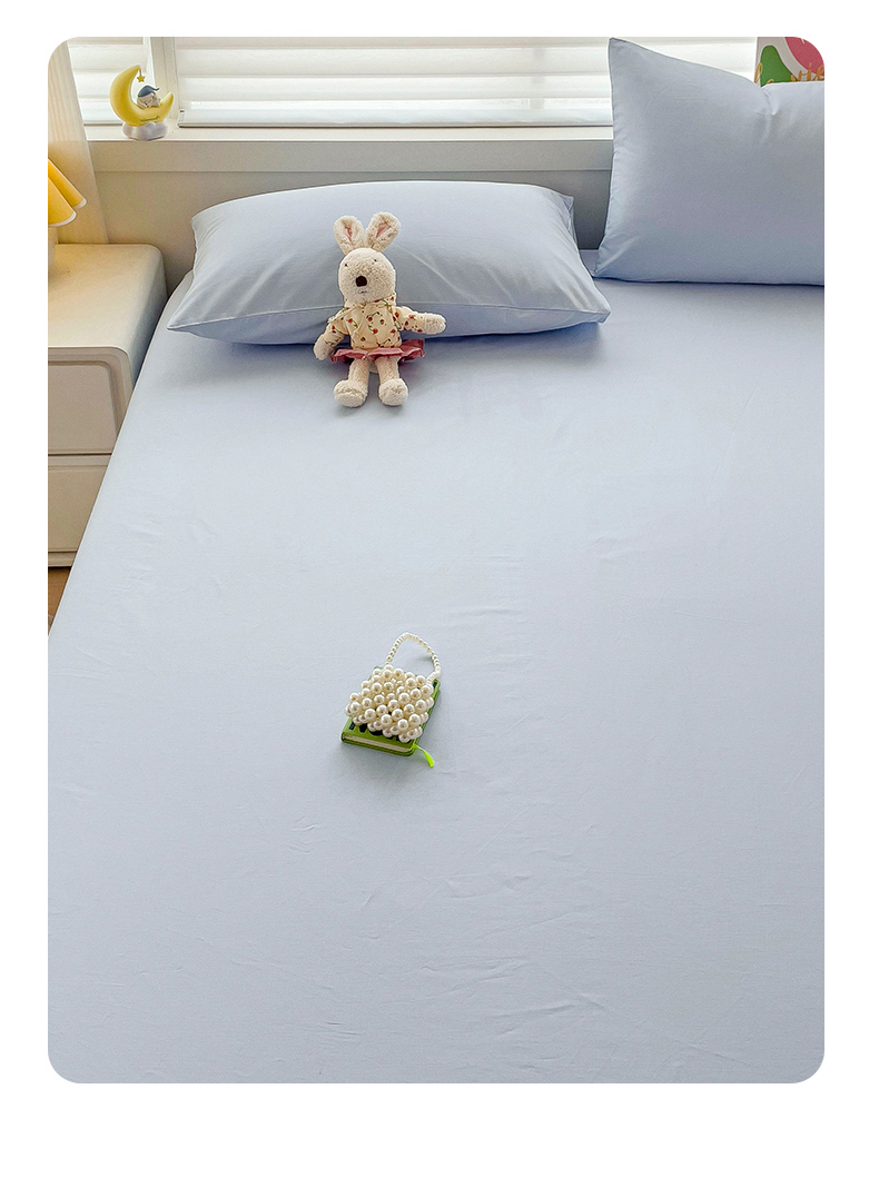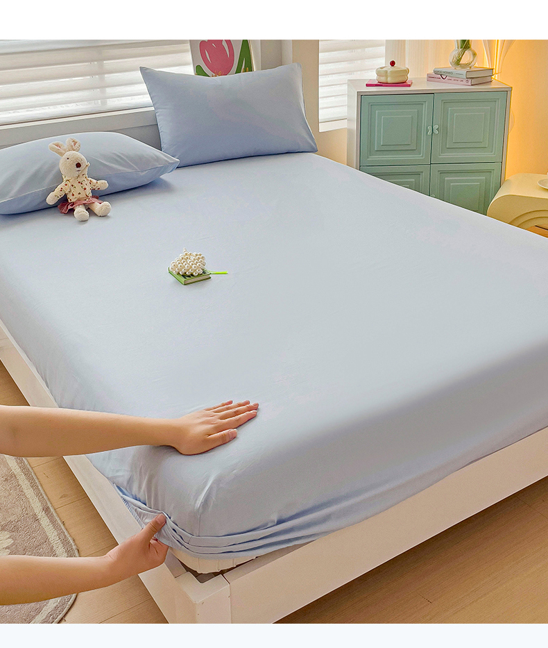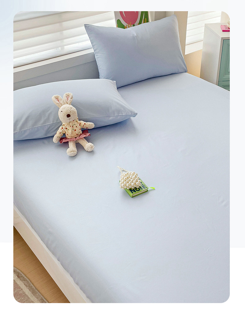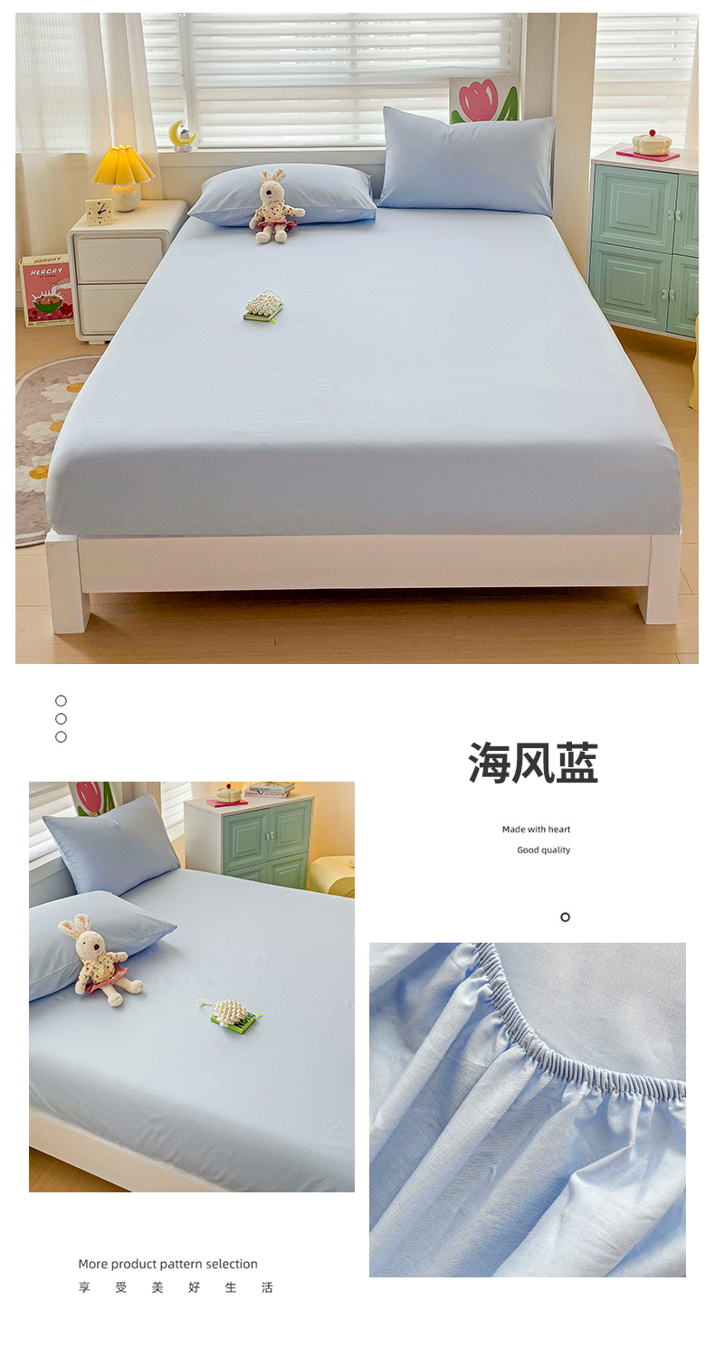 2024新款纯色全棉简约床笠 海风蓝