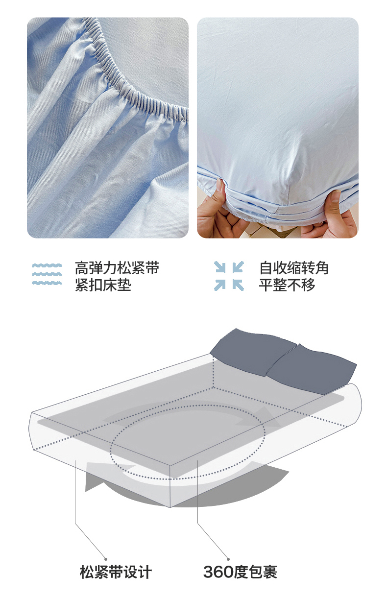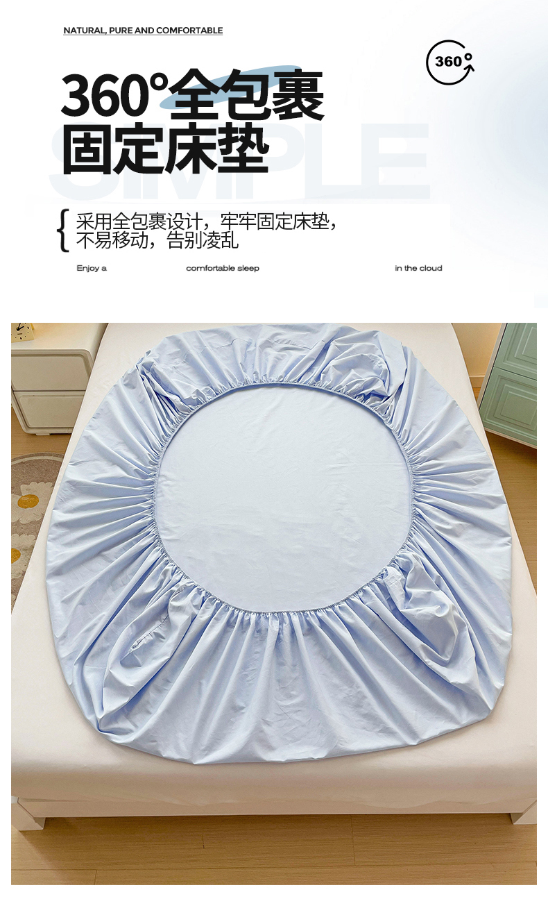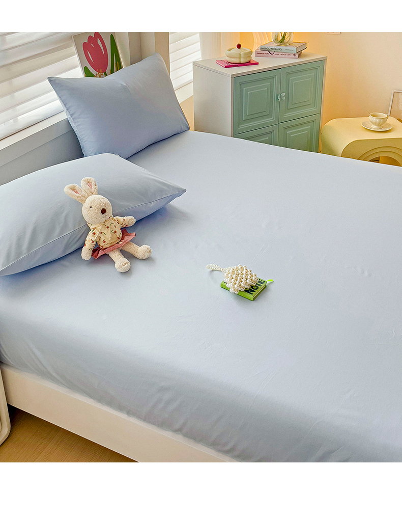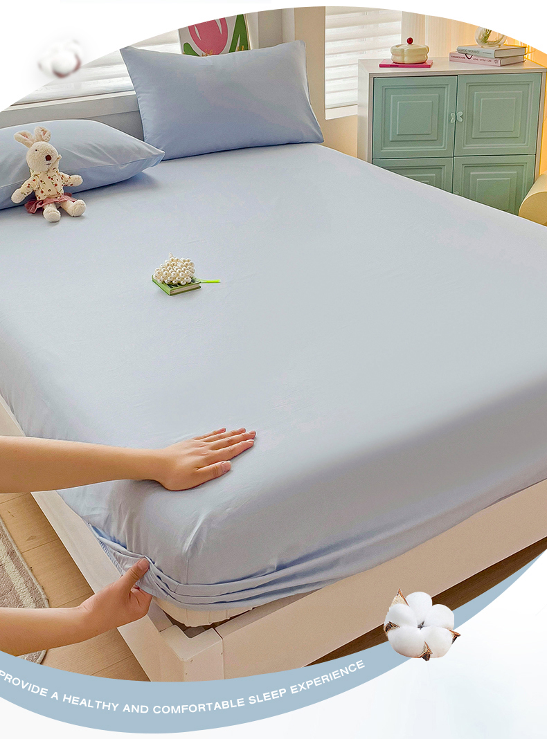 2024新款纯色全棉简约床笠 海风蓝