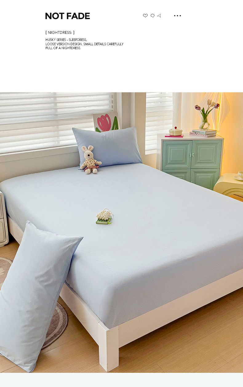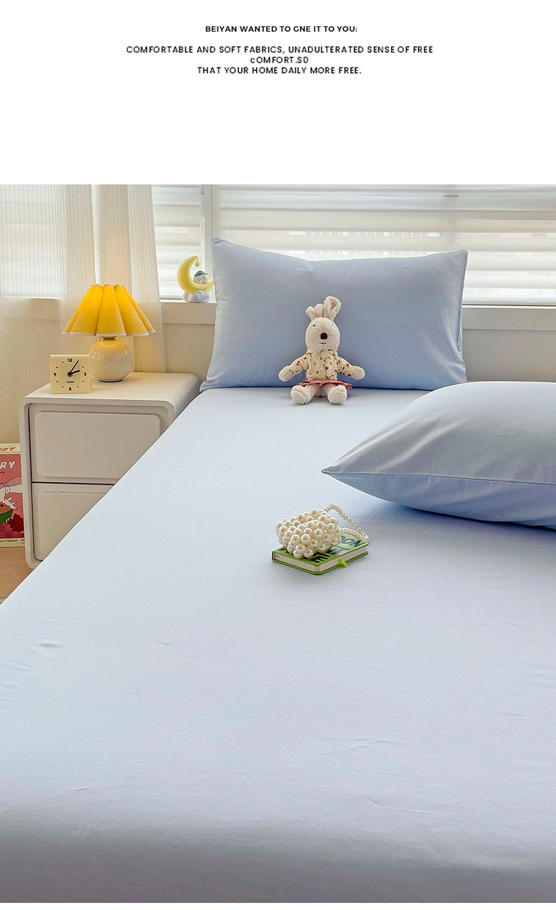 • 91家纺网 家纺一手货源 找家纺 2024新款纯色全棉简约床笠 海风蓝