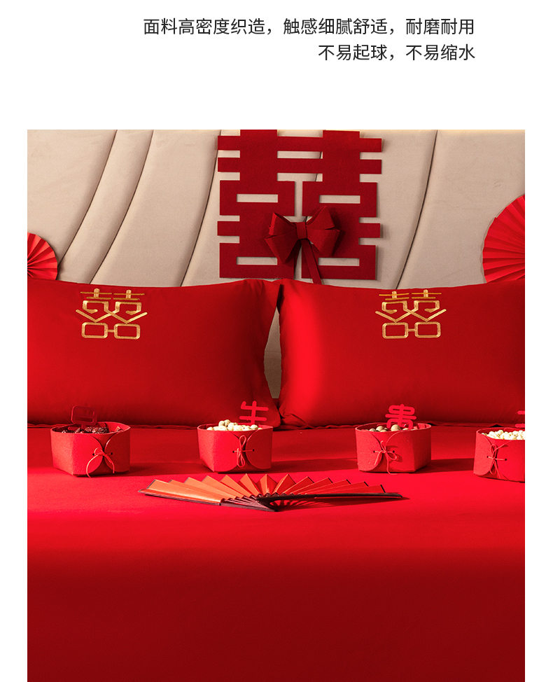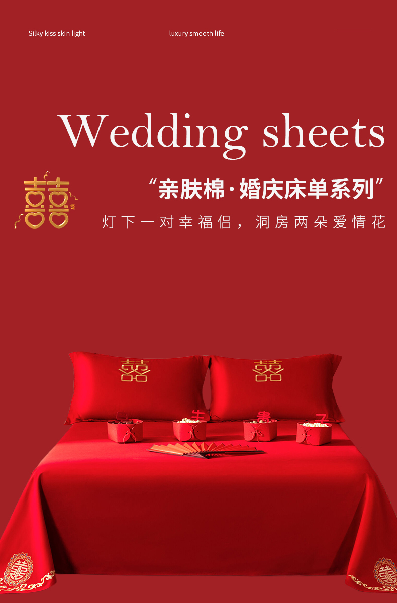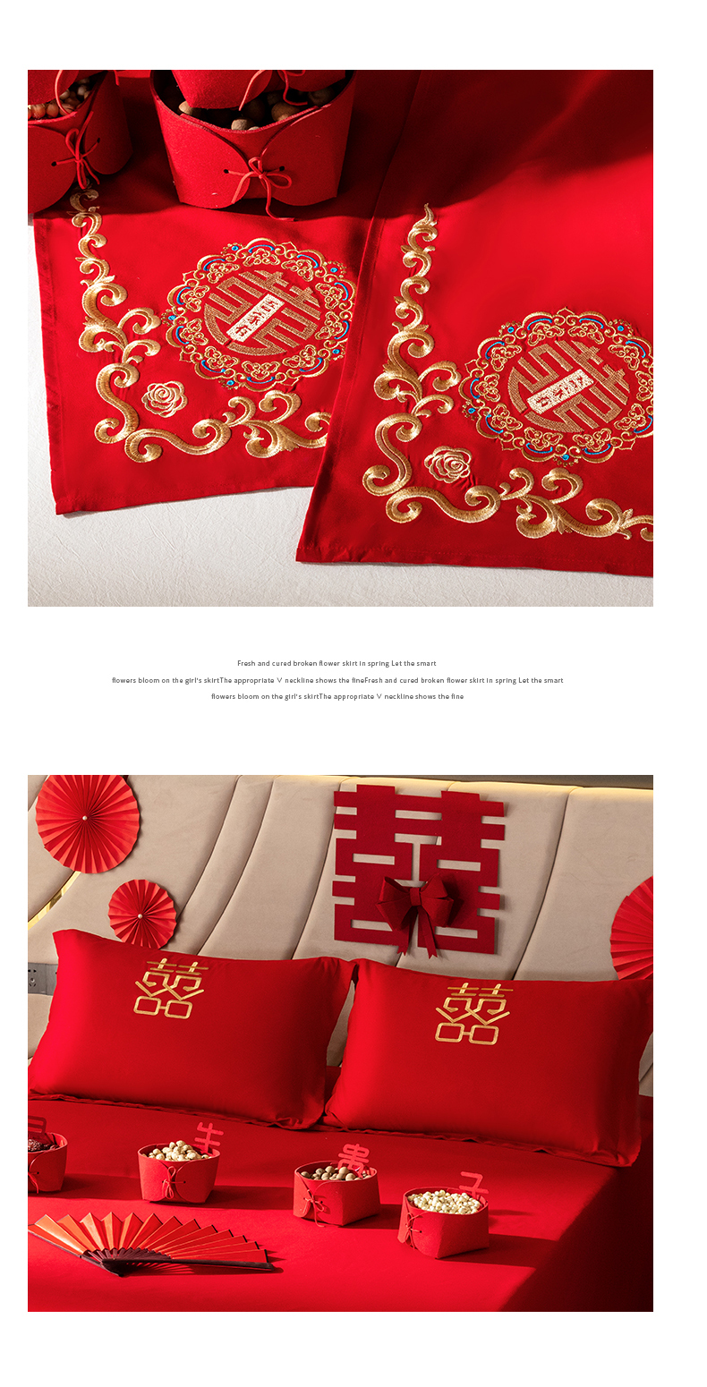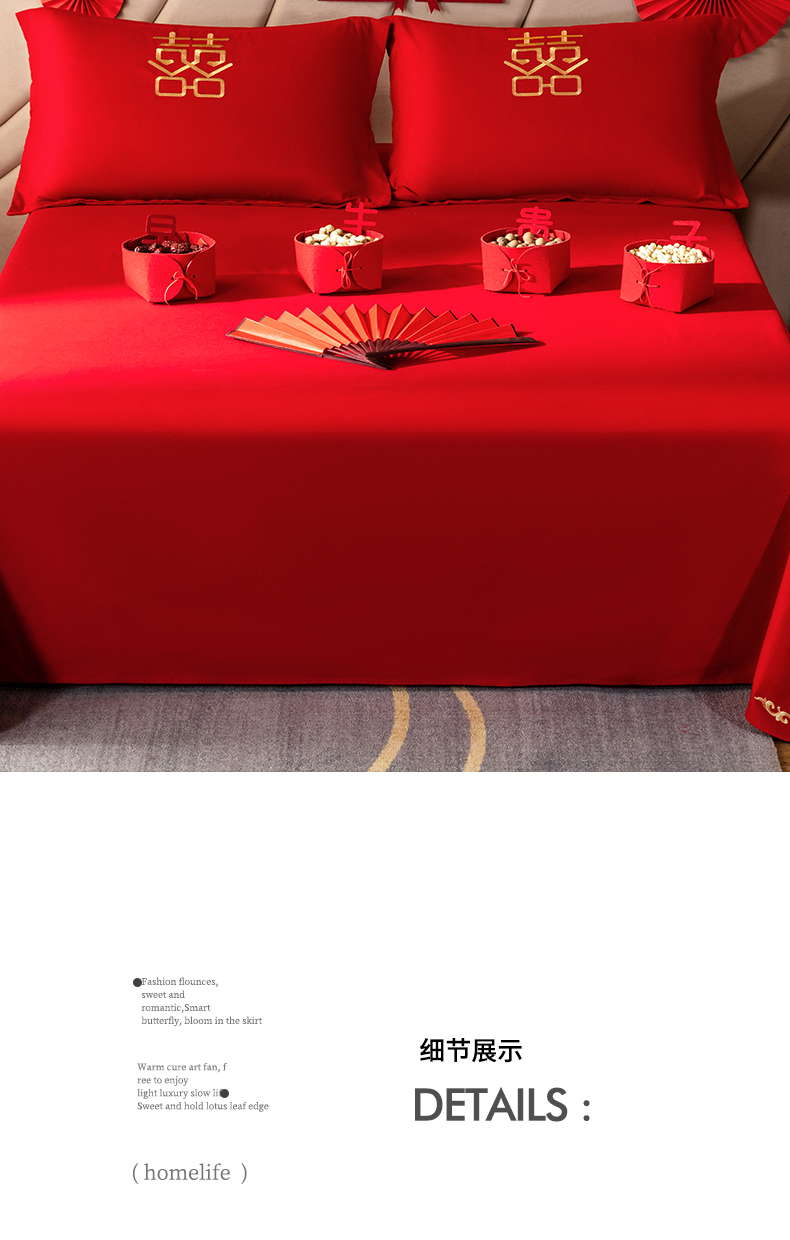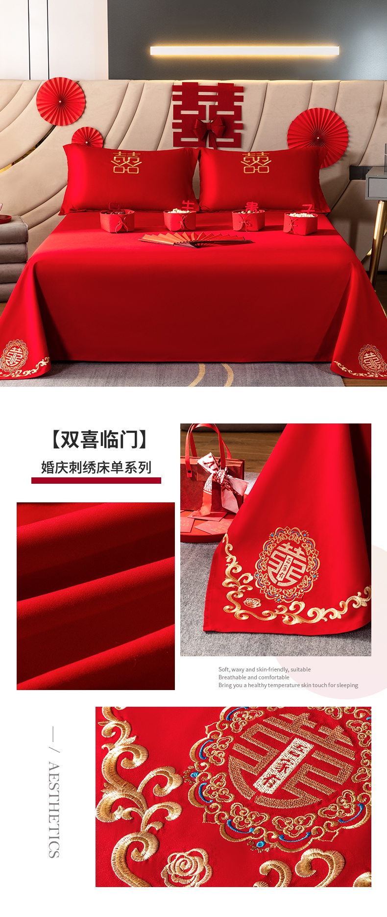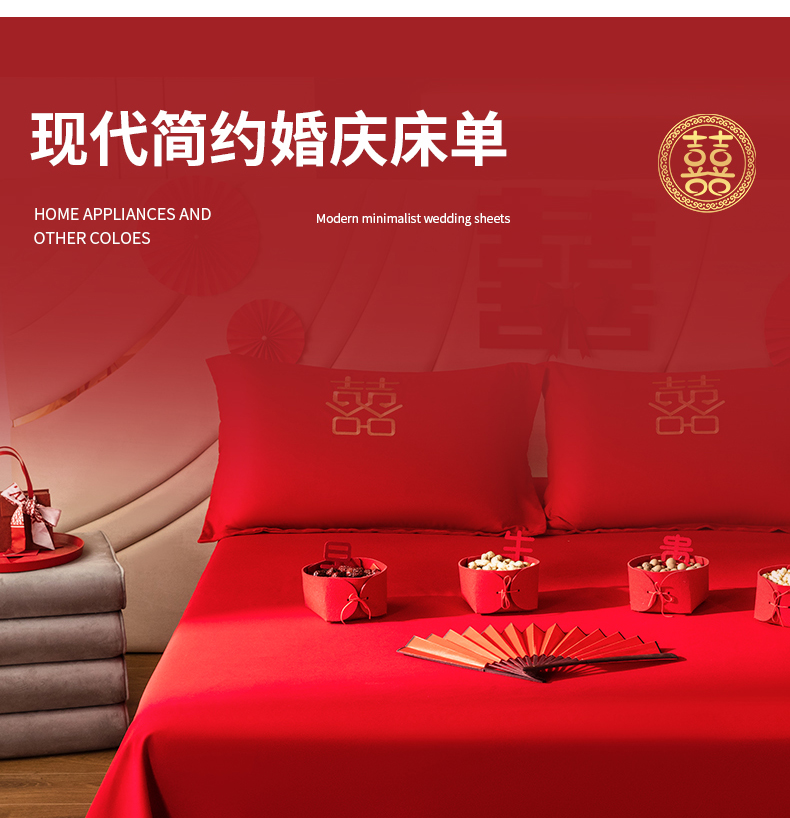 当前位置: 91家纺网 > 商品网购 > 床品套件 > 四件套 > 婚庆四件套 > 玉雅家纺 2025新款婚庆刺绣单品床裙床单床笠三件套 婚庆床单-双喜临门