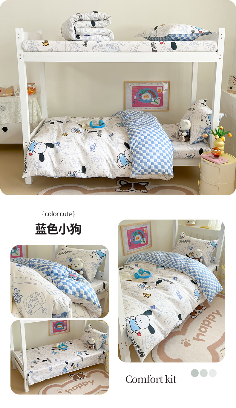 绵庭家纺 2024新款全棉印花学生季宿舍三件套 蓝色小狗