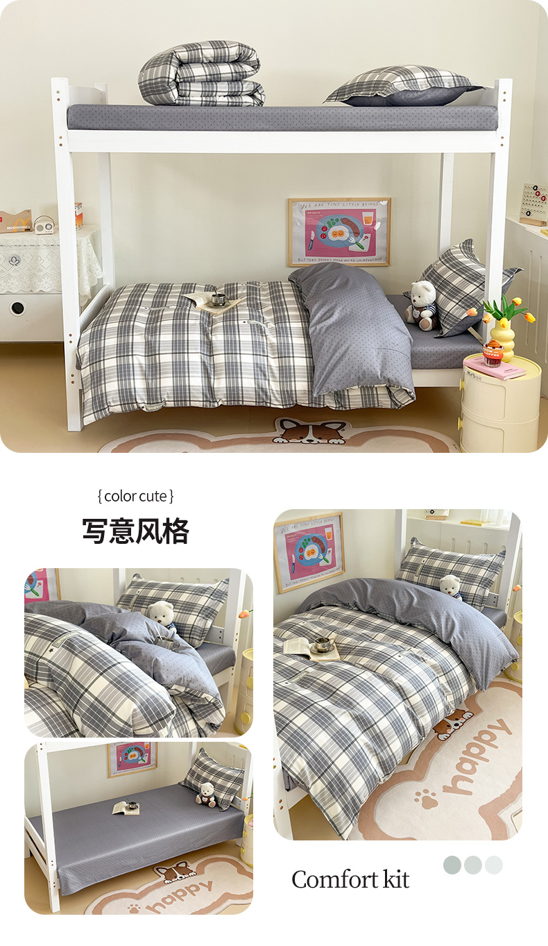 绵庭家纺 2024新款全棉印花学生季宿舍三件套 写意风格