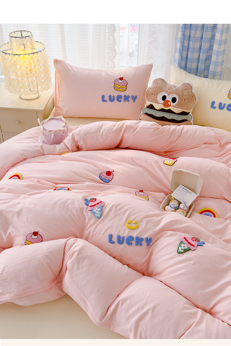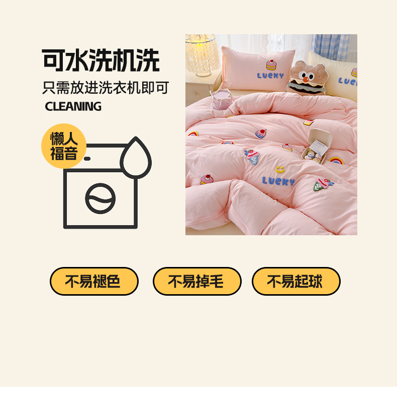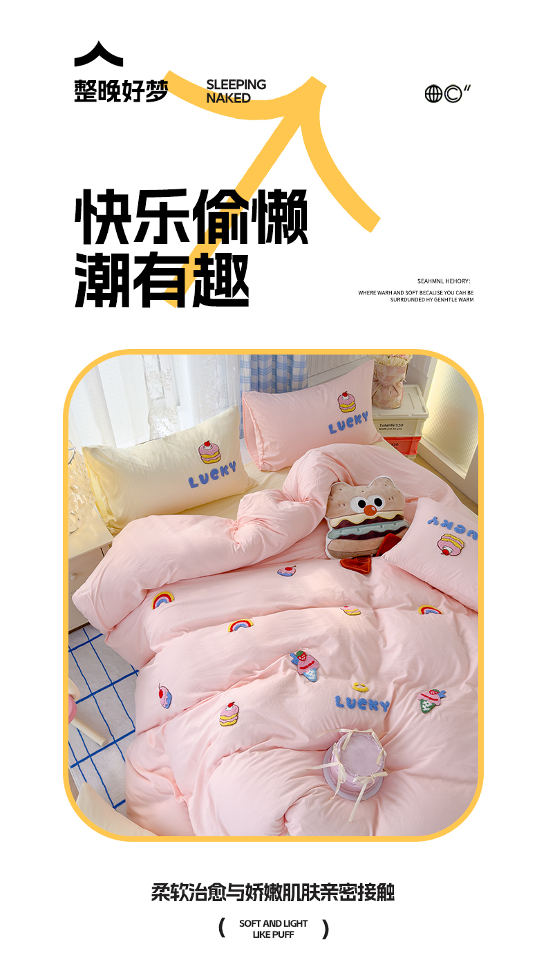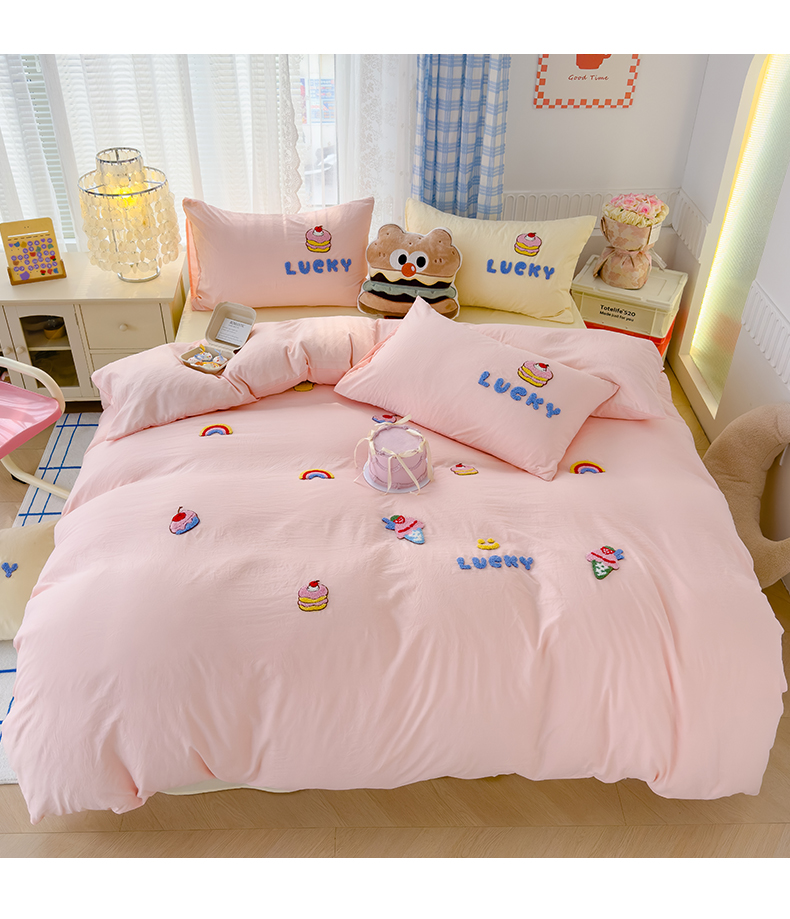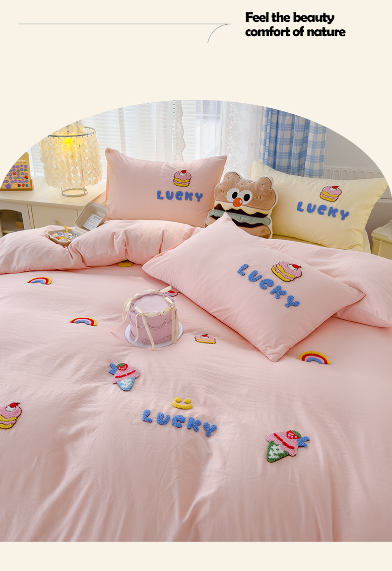 当前位置: 91家纺网 > 商品网购 > 床品套件 > 四件套 > 水洗棉四件套 > 颜选 2024新款小清新水洗棉立体毛巾绣四件套-生日派对 生日派对+粉玉