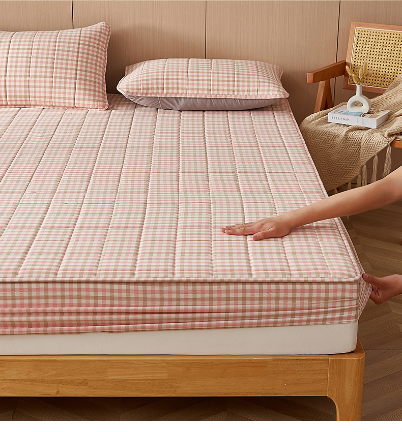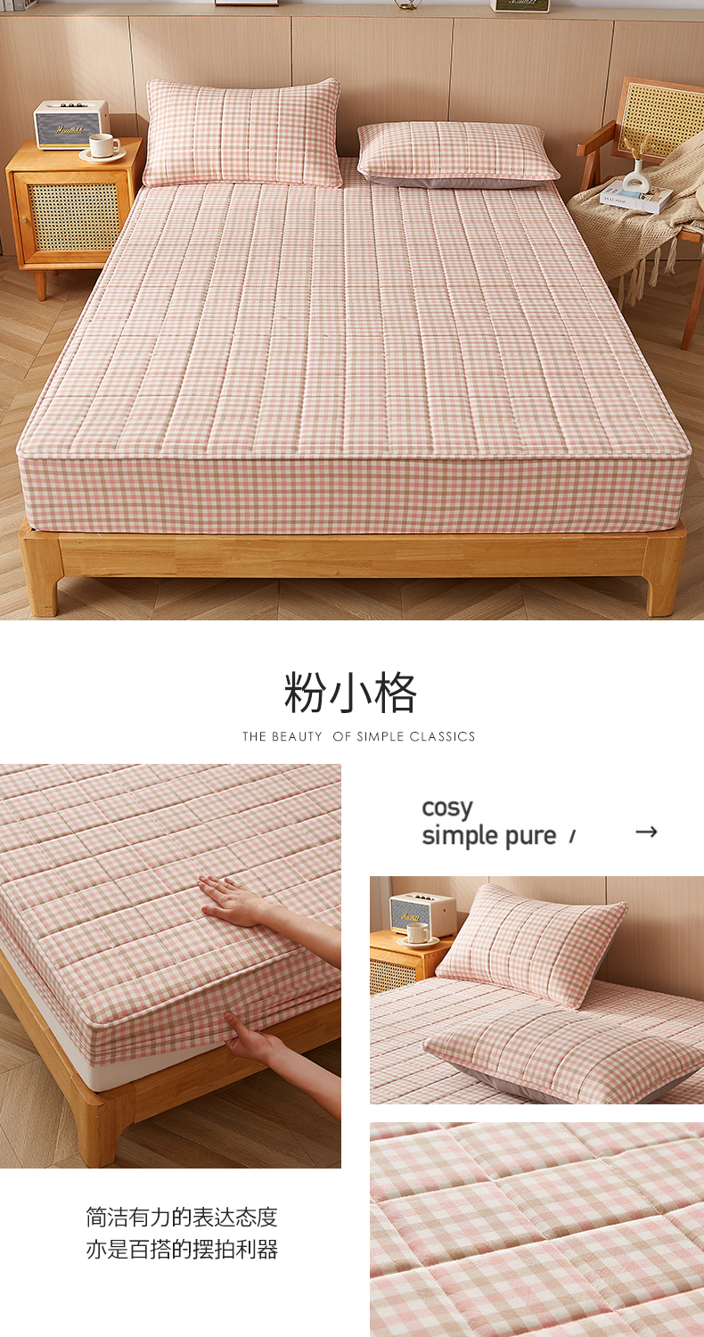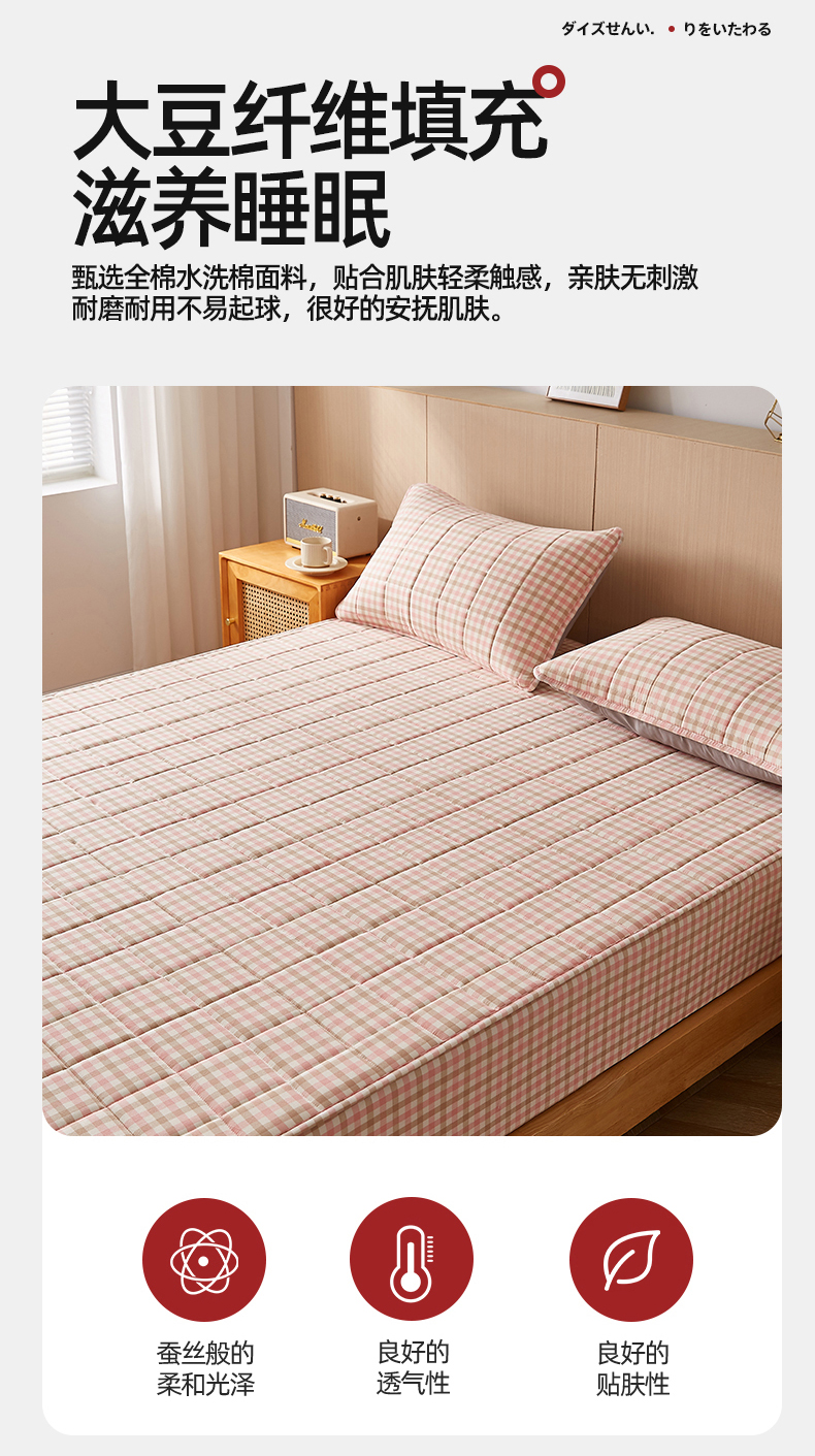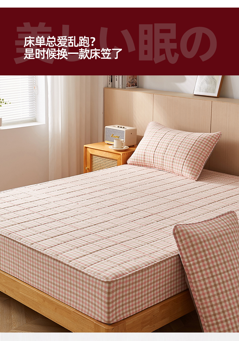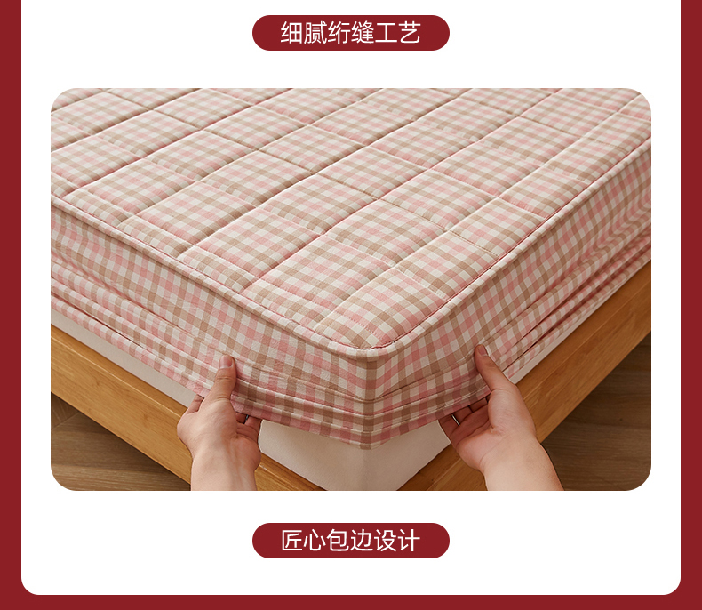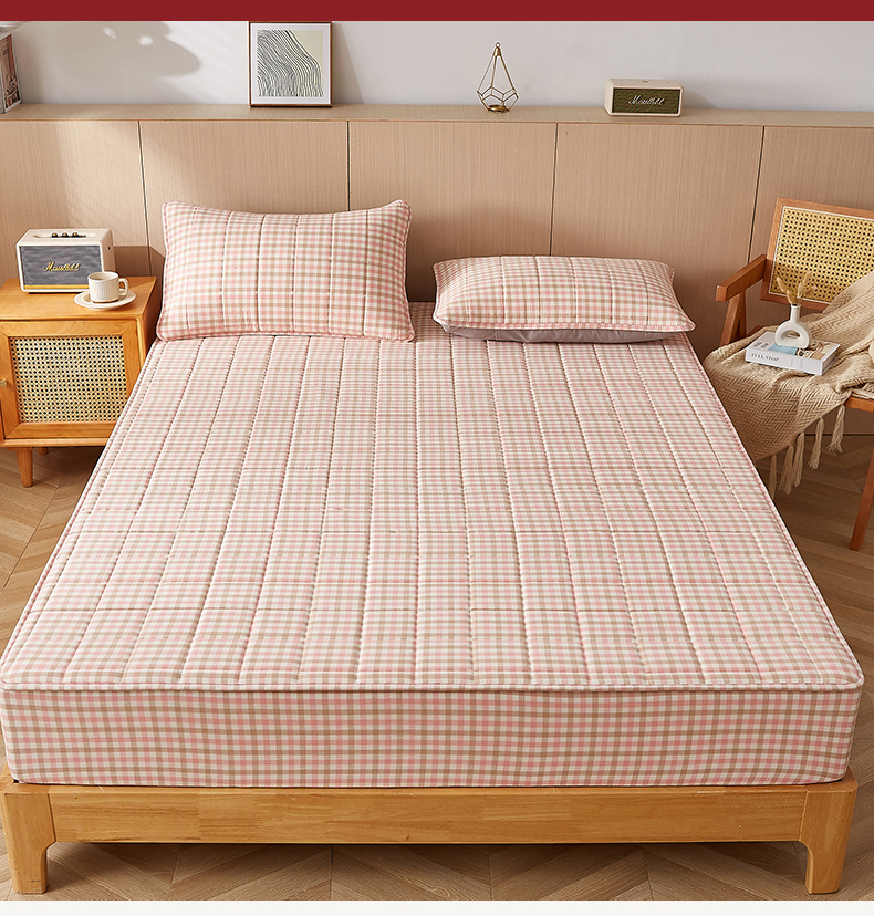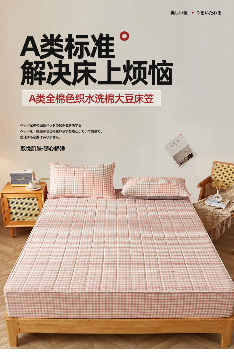 商品名称:2025新款A类全棉色织水洗棉大豆夹棉抗菌床笠 粉小格