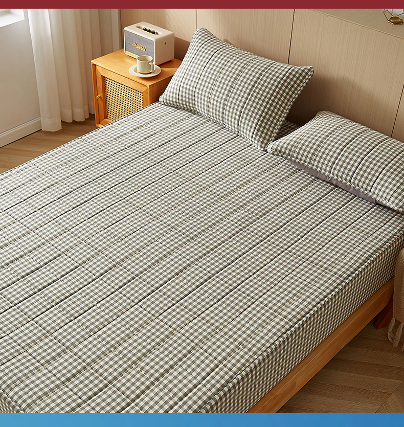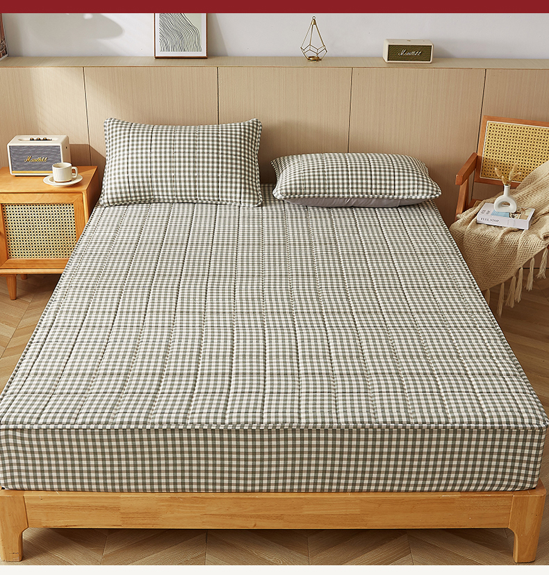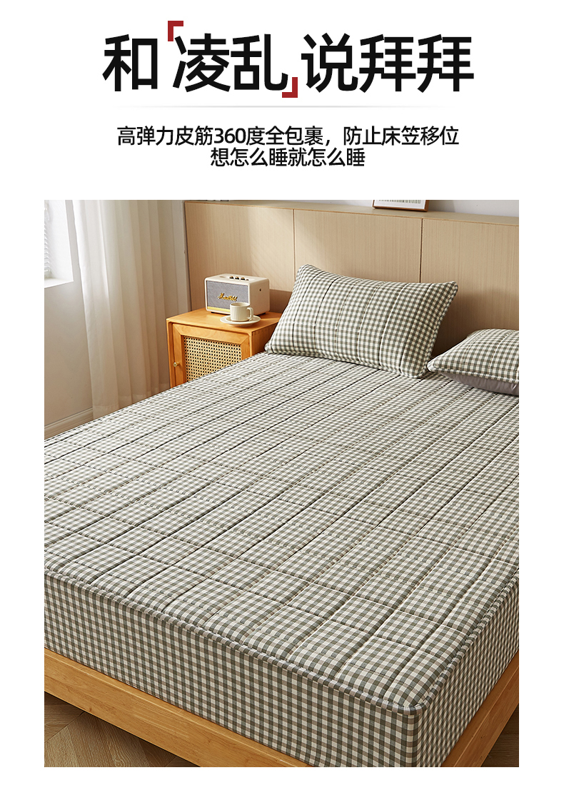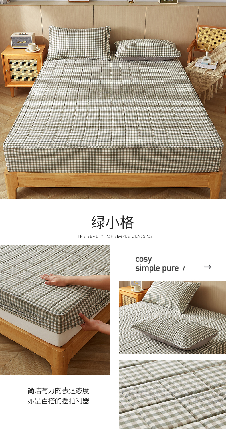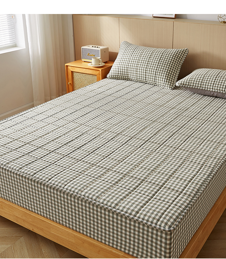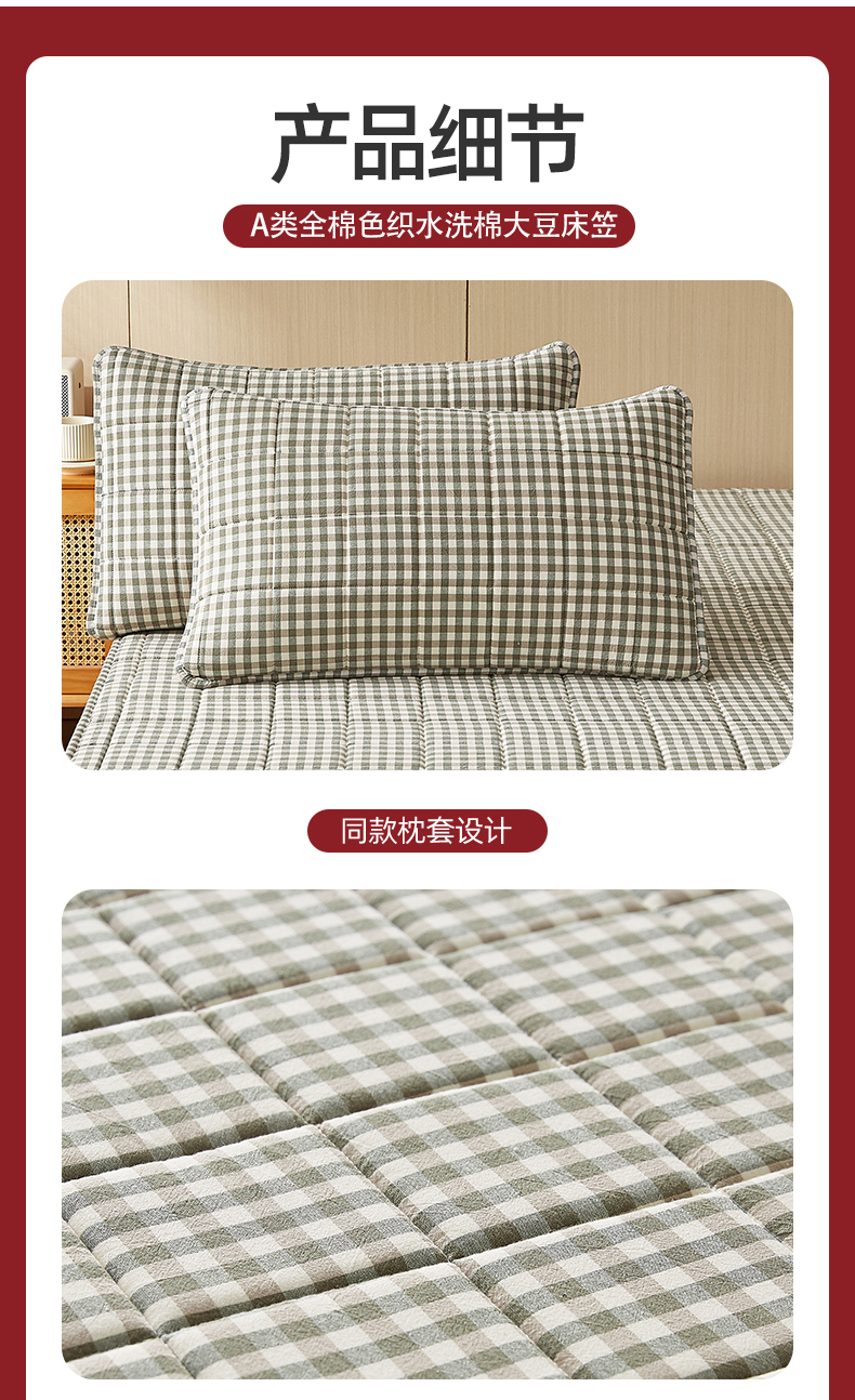 商品名称:2025新款A类全棉色织水洗棉大豆夹棉抗菌床笠 绿小格
