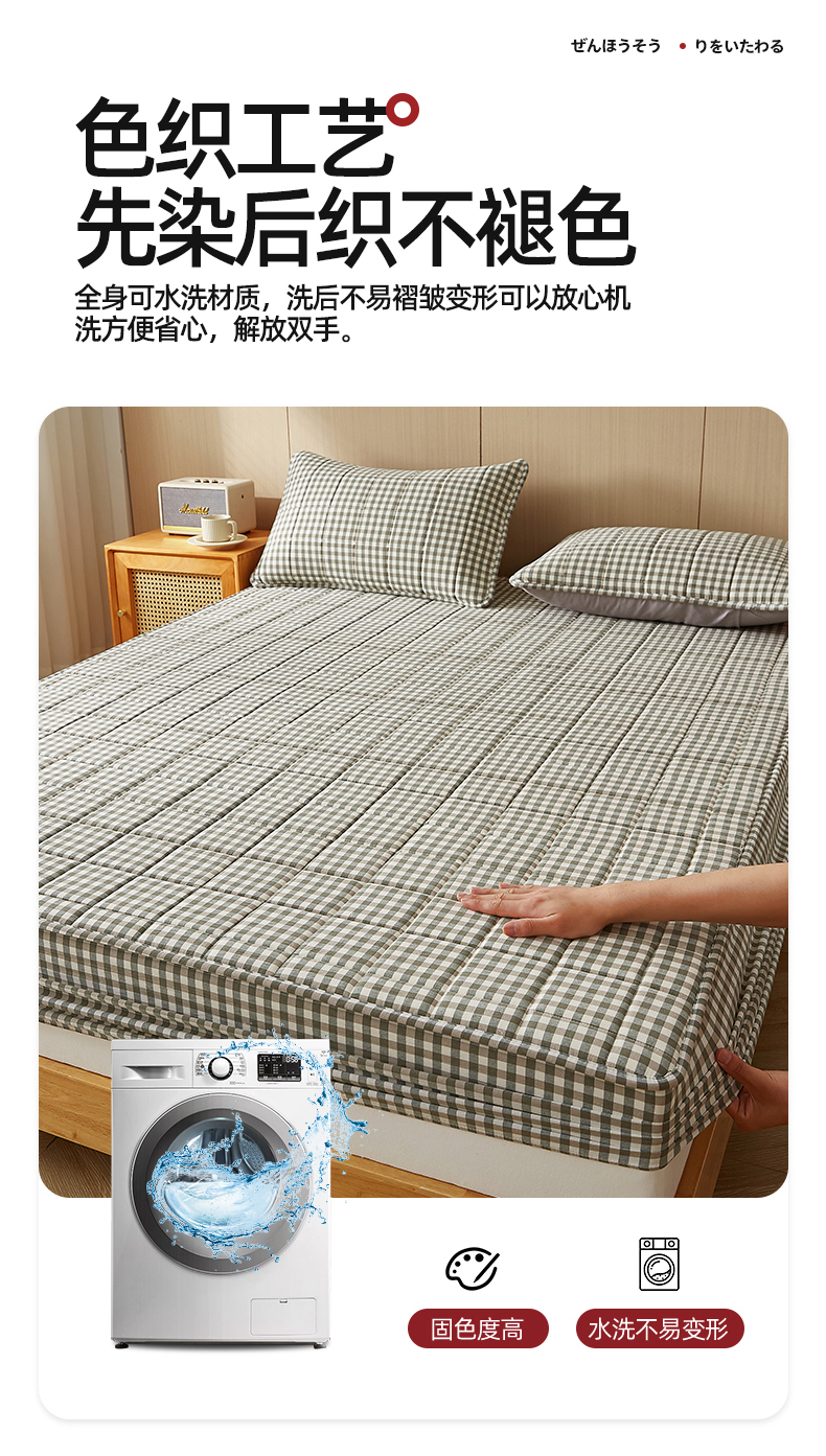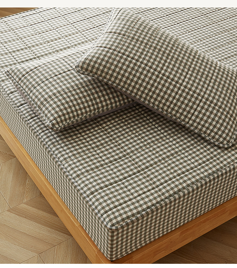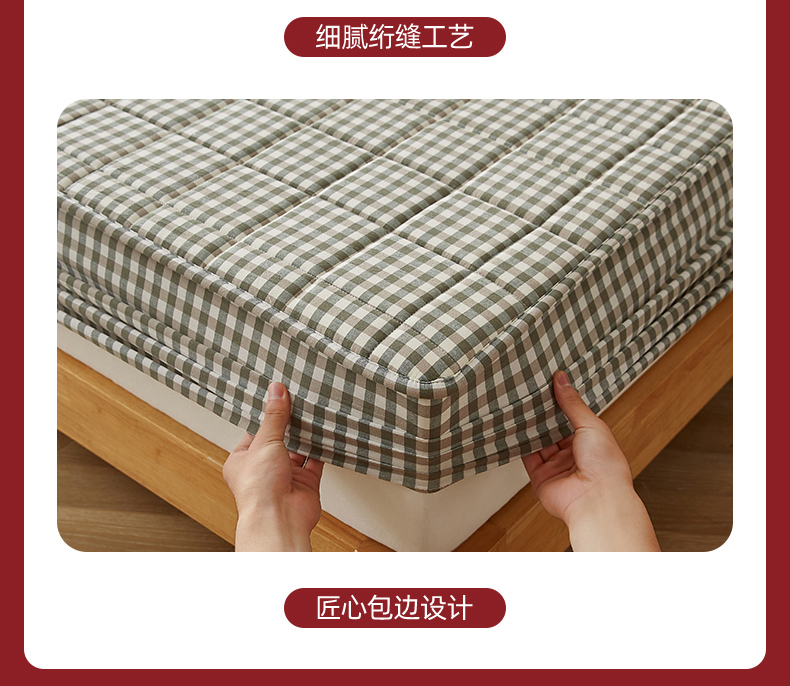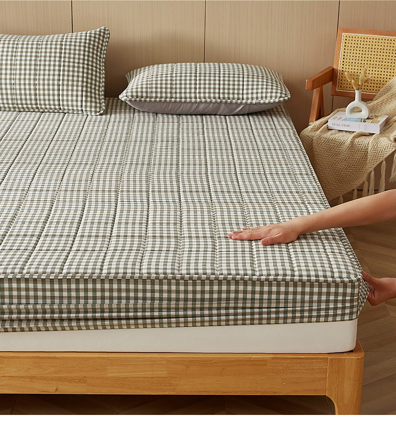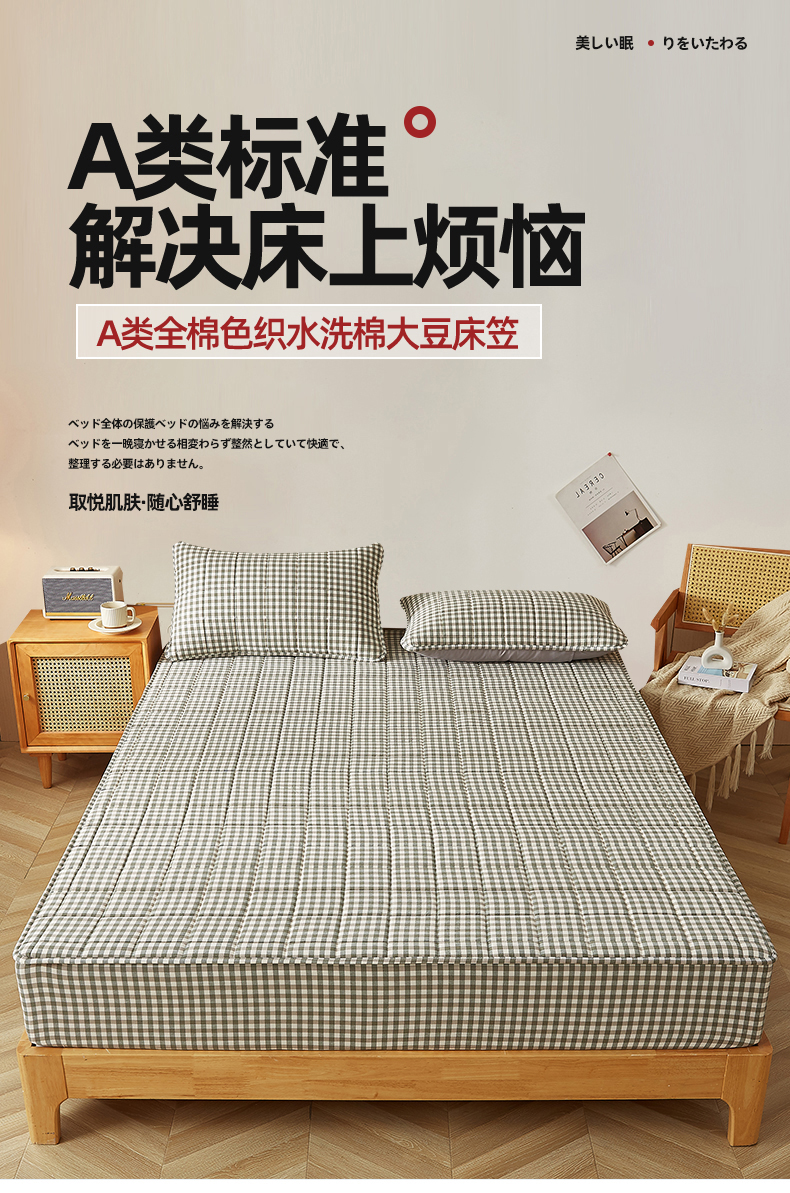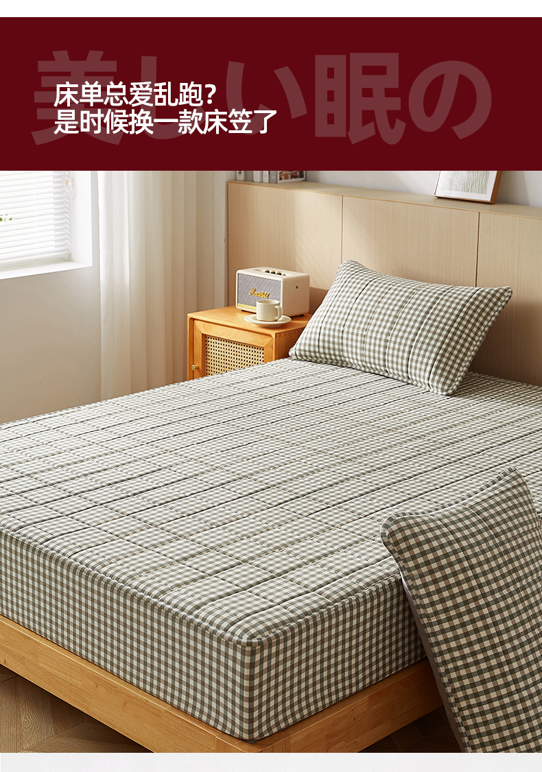 商品名称:2025新款A类全棉色织水洗棉大豆夹棉抗菌床笠 绿小格