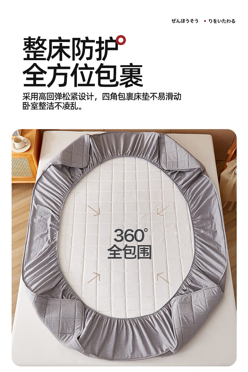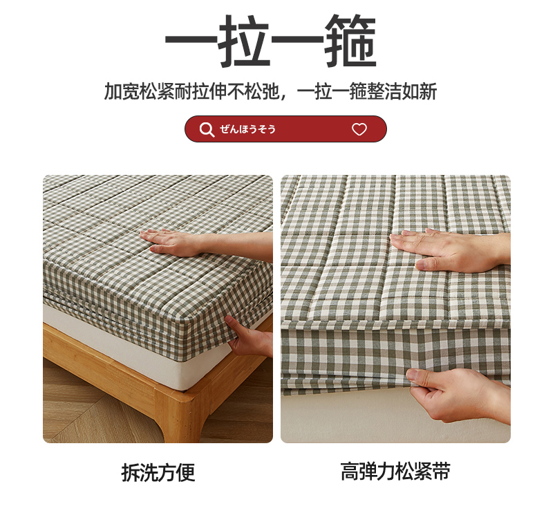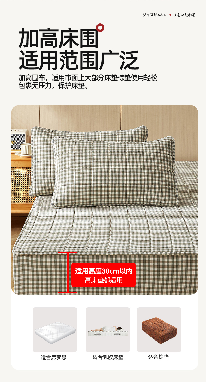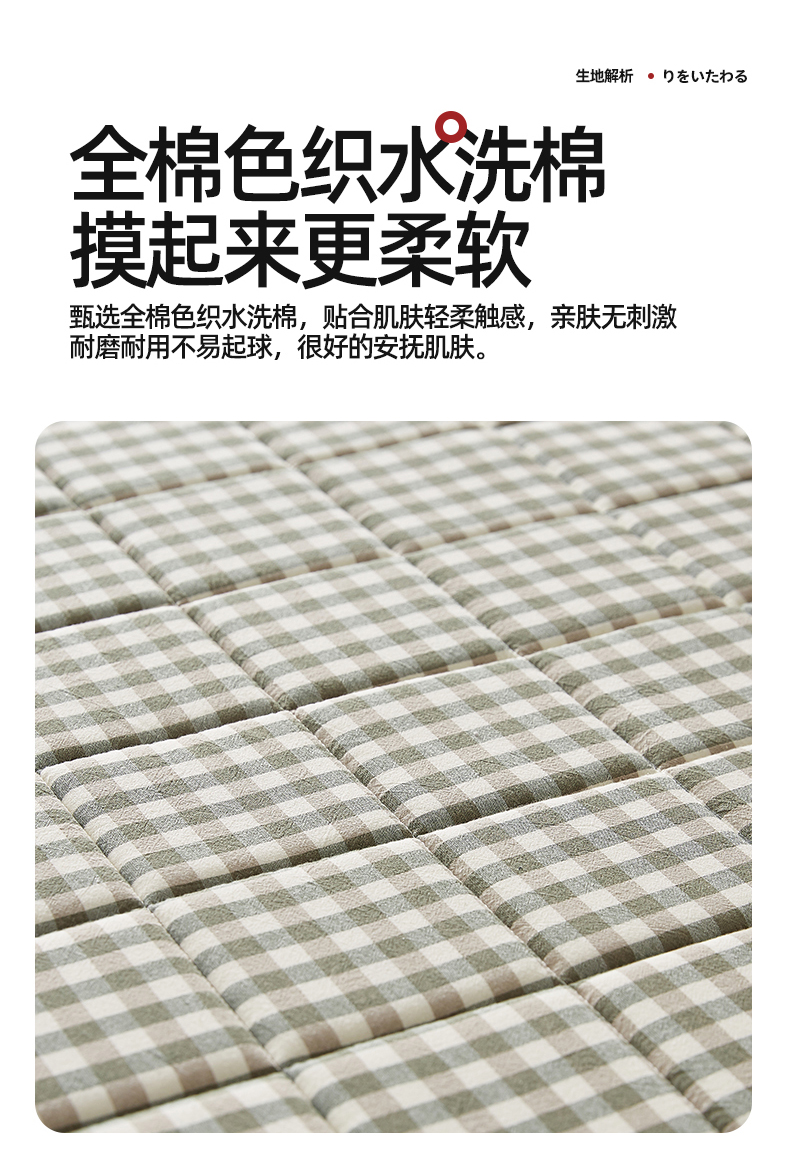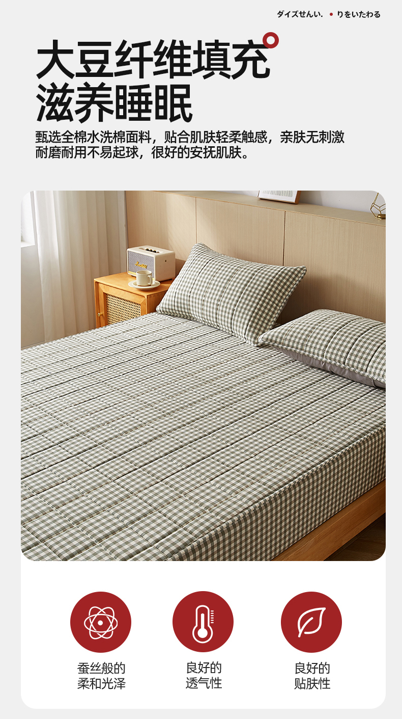 商品名称:2025新款A类全棉色织水洗棉大豆夹棉抗菌床笠 绿小格