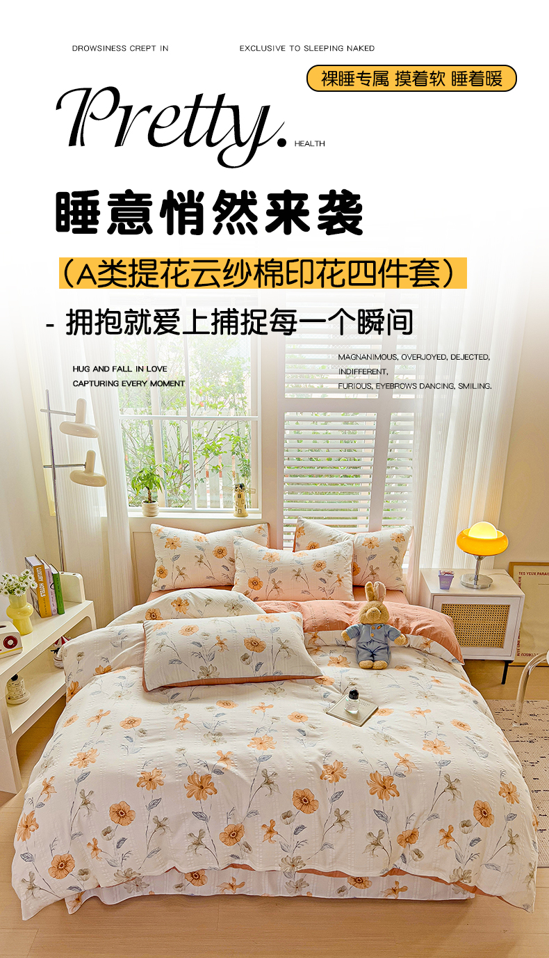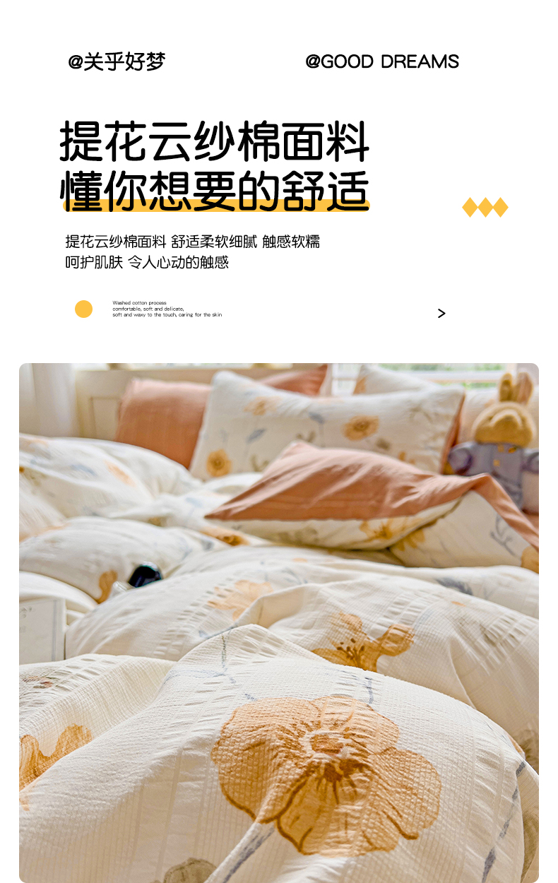 当前位置: 91家纺网 > 商品网购 > 床品套件 > 四件套 > 其它四件套 > 优选良品 2025新款有氧提花云纱棉圆角吊边工艺款四件套学生三件套如烟