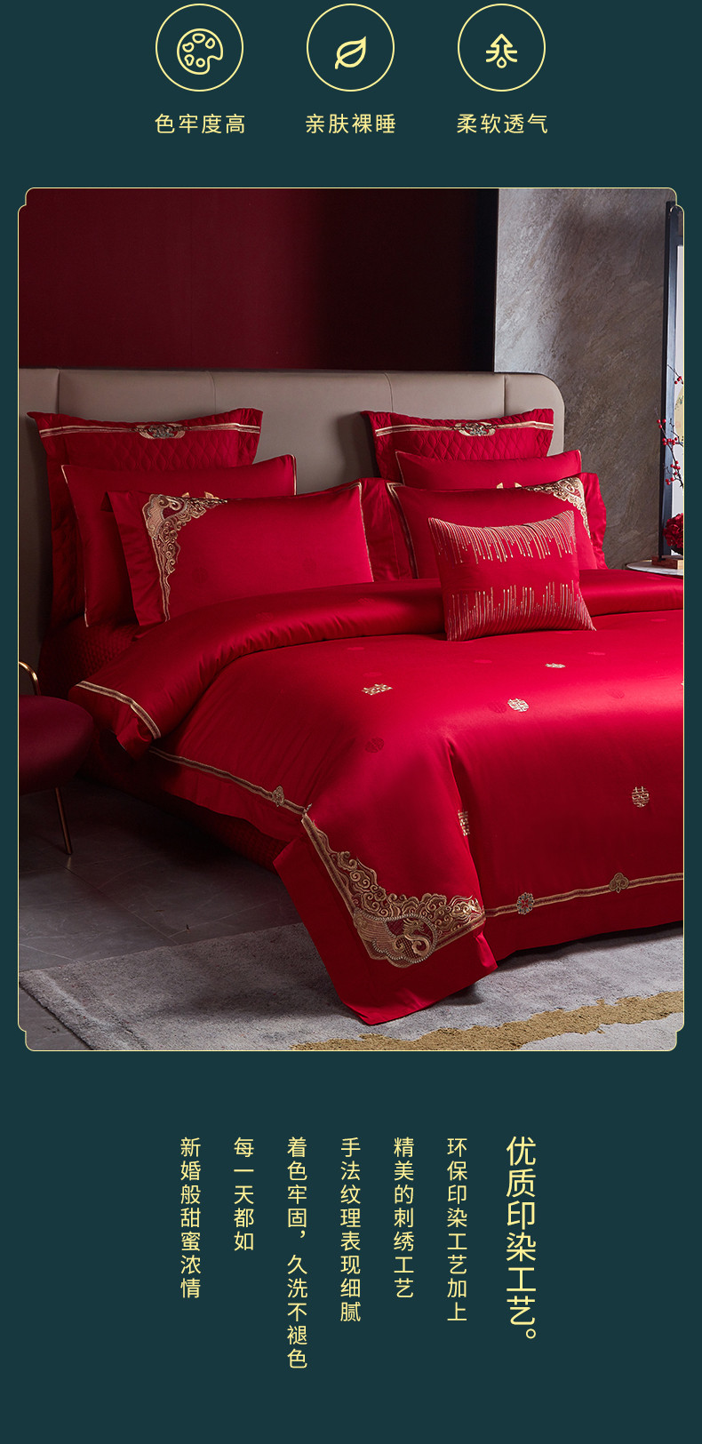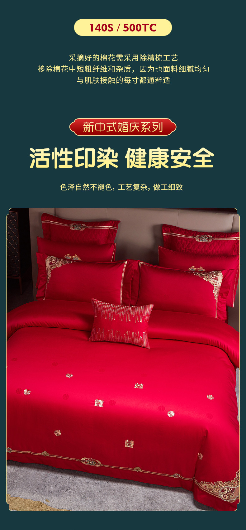 当前位置: 91家纺网 > 商品网购 > 床品套件 > 四件套 > 婚庆四件套 > 美娘阁 2025新款长绒棉贡缎提花款新中式古典韵味精美刺绣婚庆四件套多件套 喜气满满