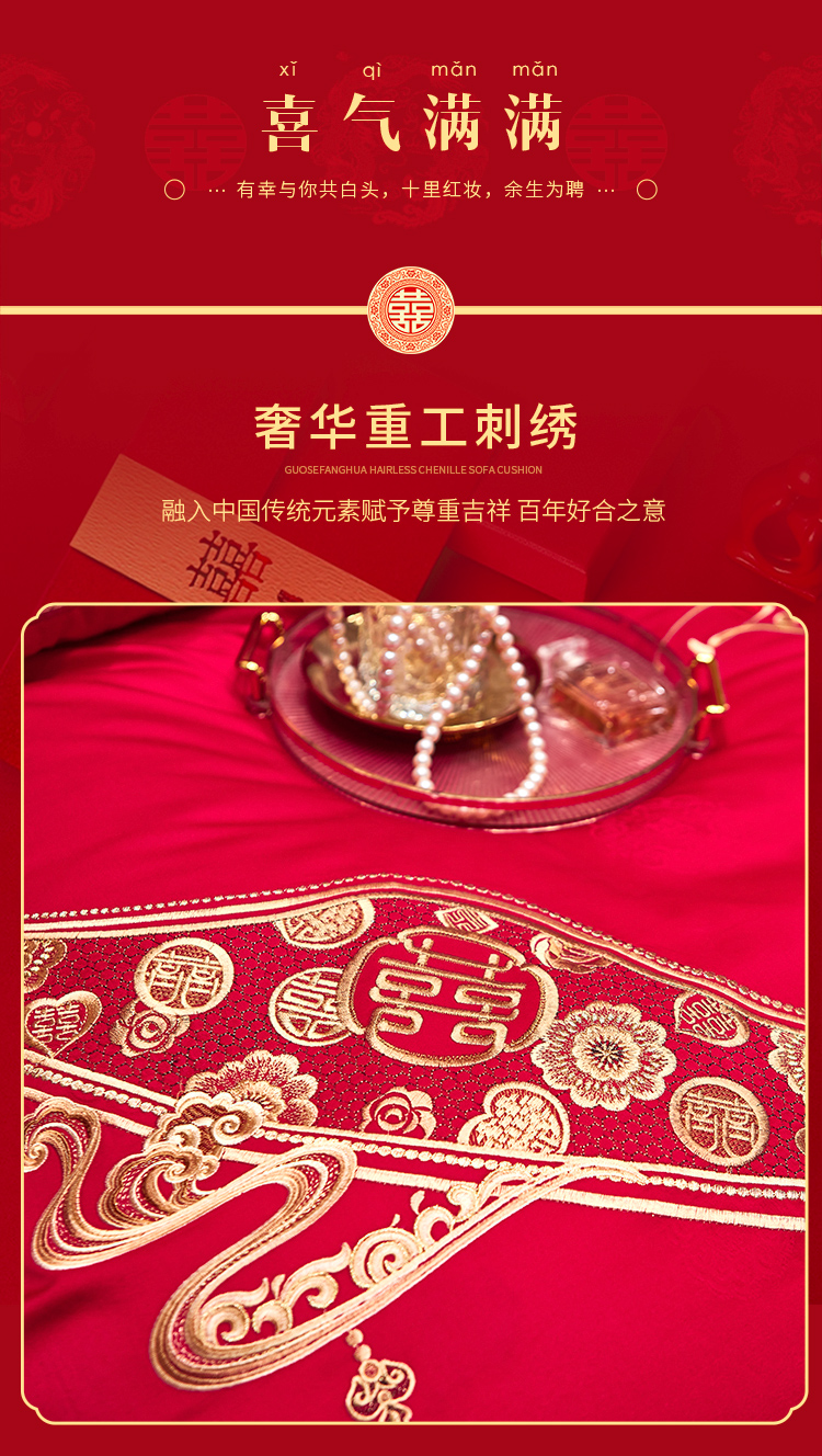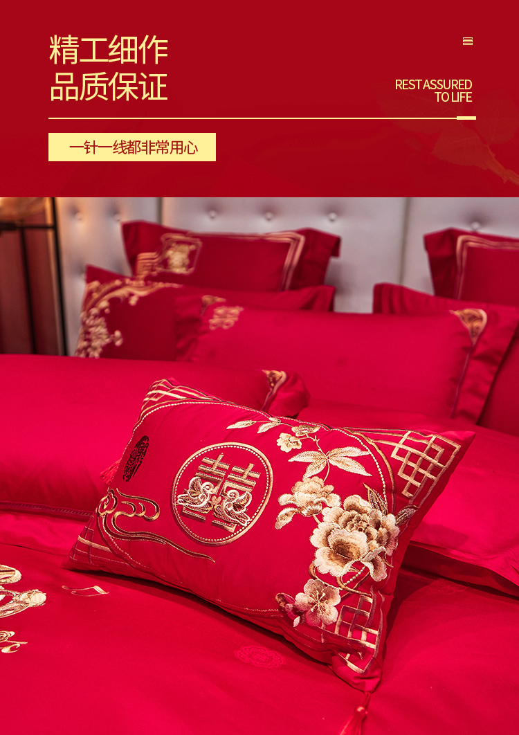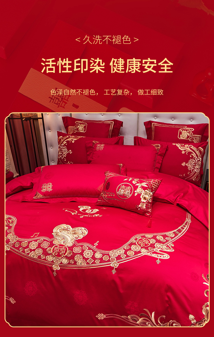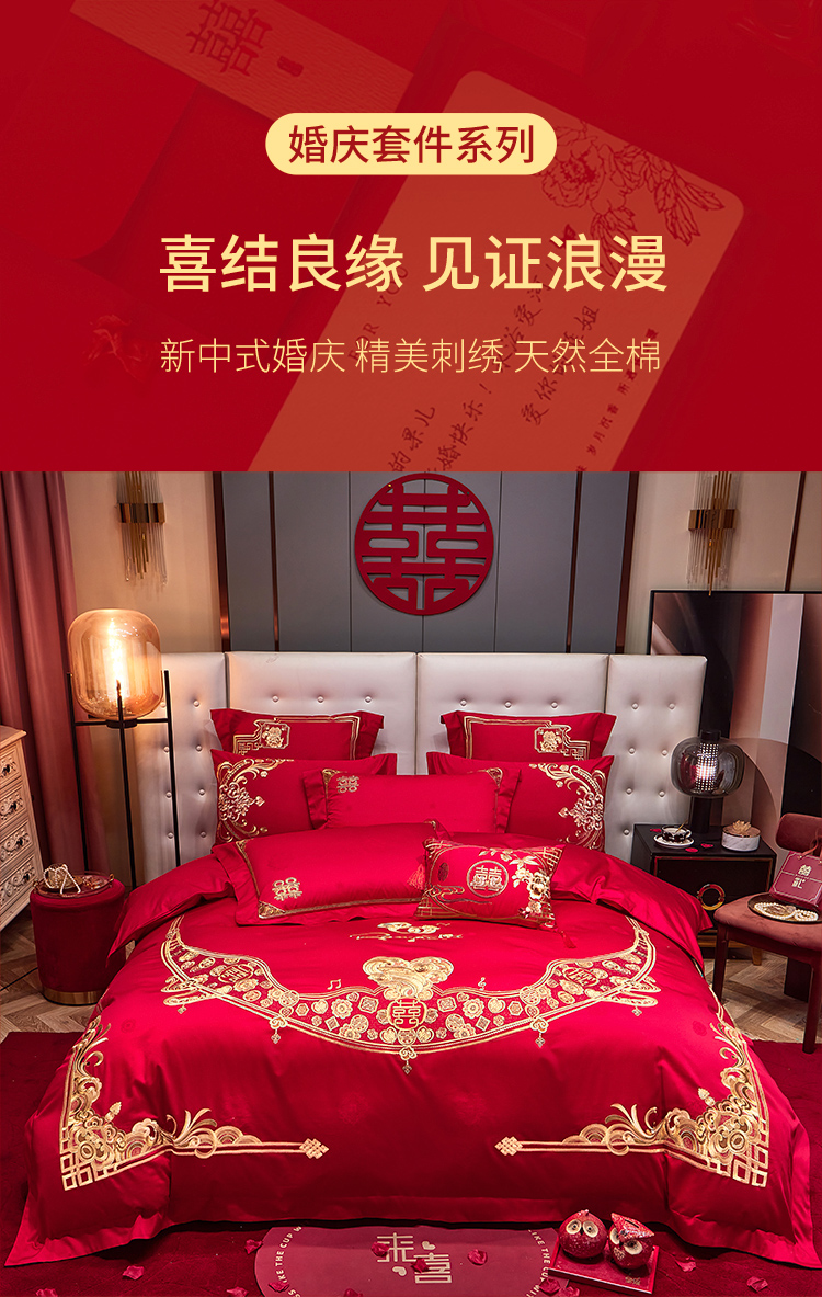 当前位置: 91家纺网 > 商品网购 > 床品套件 > 四件套 > 婚庆四件套 > 美娘阁 2025新款长绒棉贡缎提花款新中式古典韵味精美刺绣婚庆四件套多件套 爱意浓浓(金)