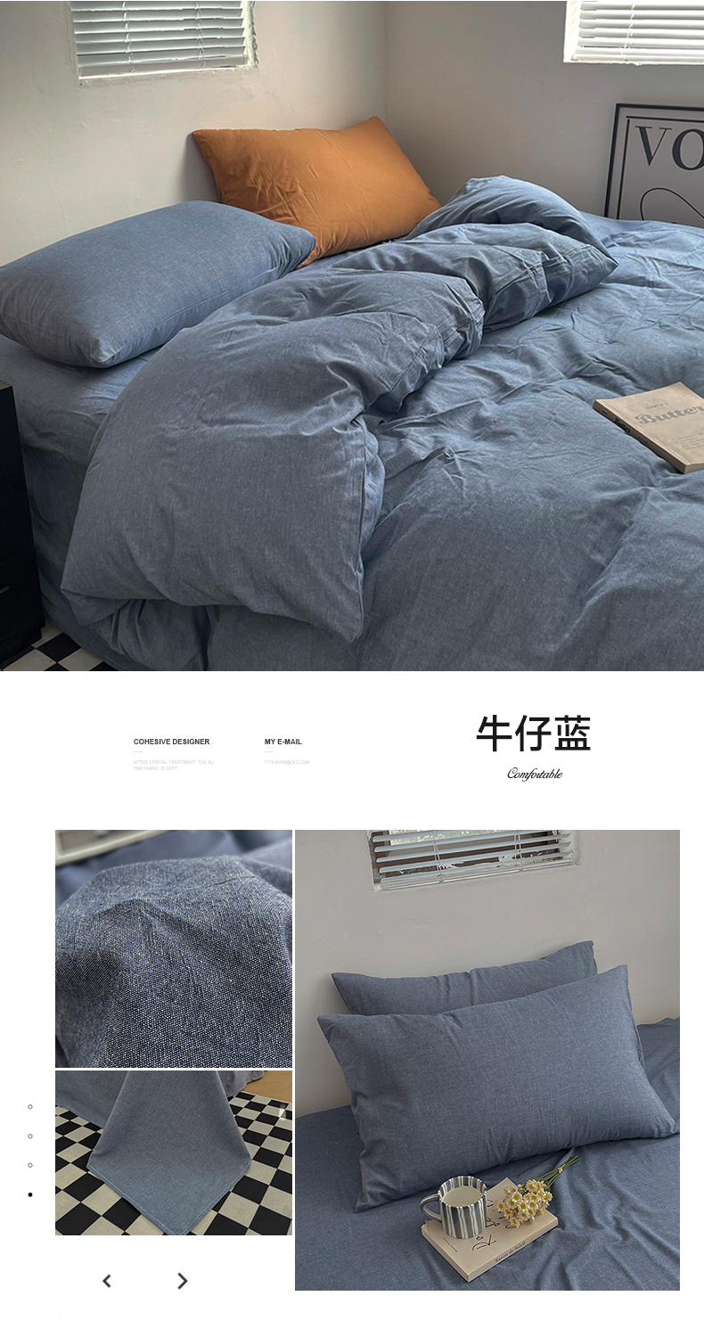 当前位置: 91家纺网 > 商品网购 > 床品套件 > 四件套 > 全棉普通四件套 > 2024新款A类全棉纯棉纯色双拼色织水洗棉四件套 牛仔蓝