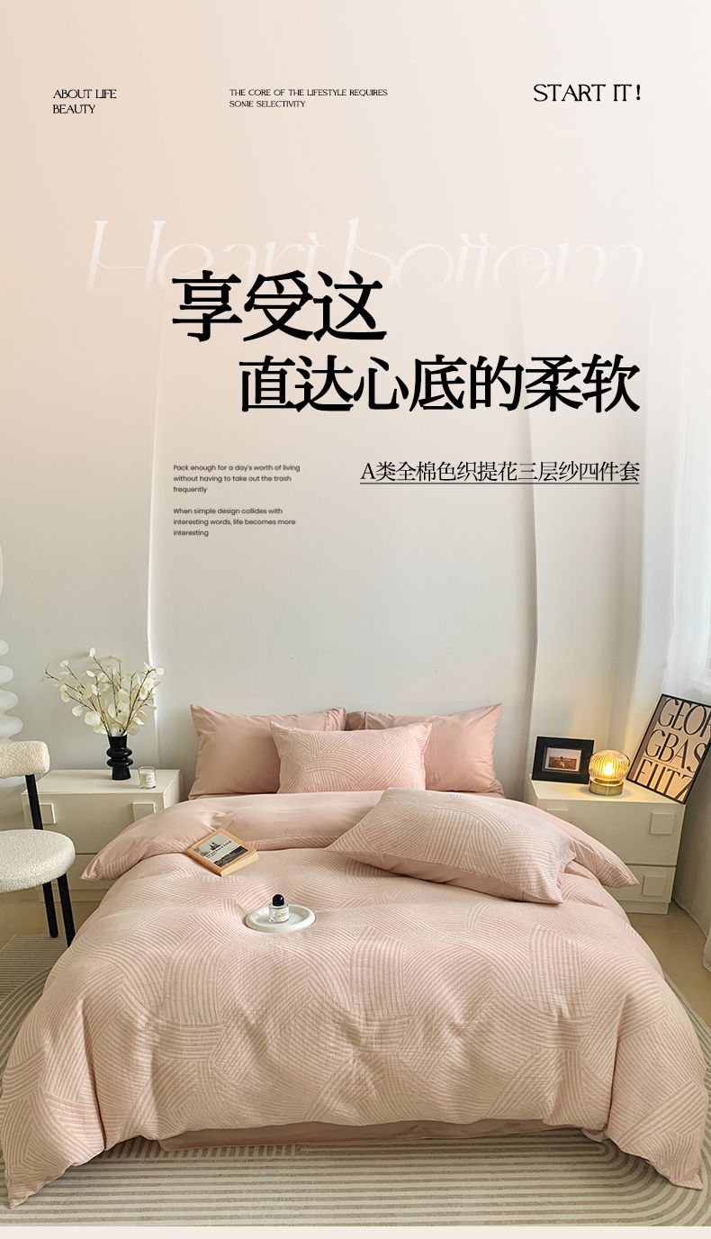 (总)莱茵家居 2025新款A类简约60S色织提花磨毛四件套,层染,辞花-暖卡其,辞花-深霜灰,丝序-暮色棕,丝序-浅茶灰,丝序-深霜灰,丝序-胭脂粉,夜织,织境-深霜灰