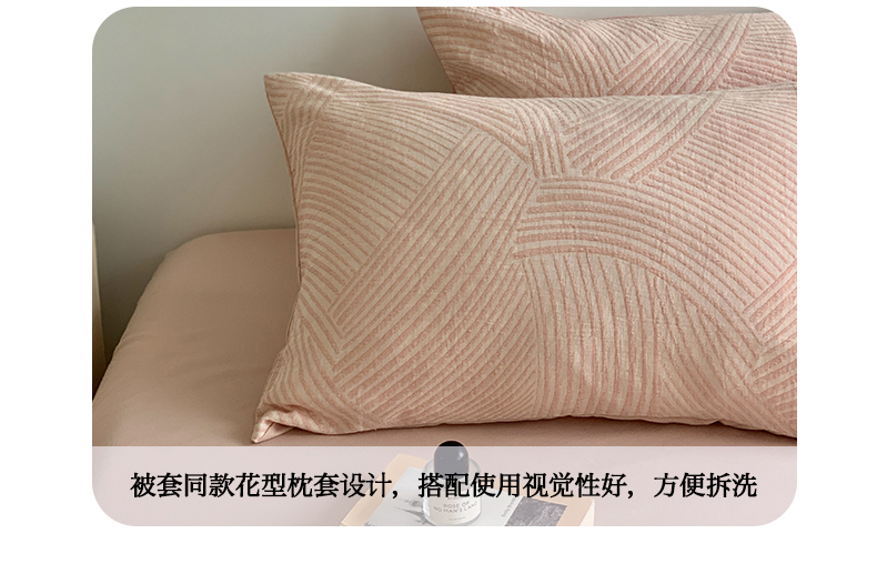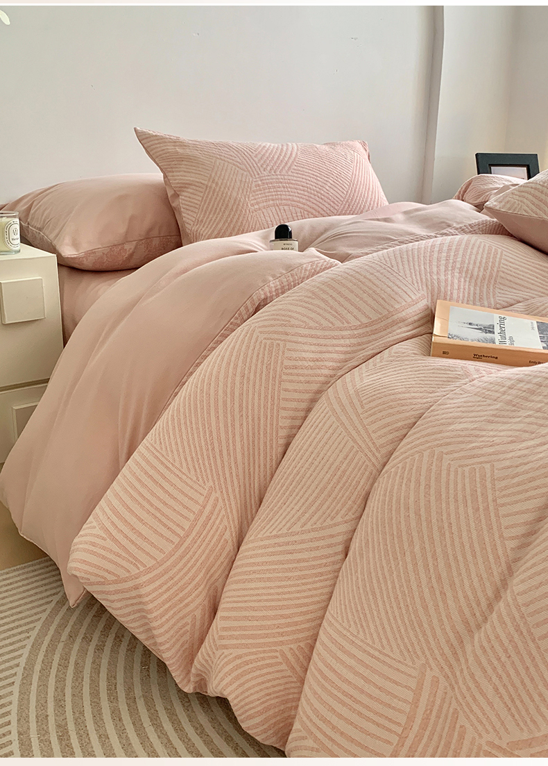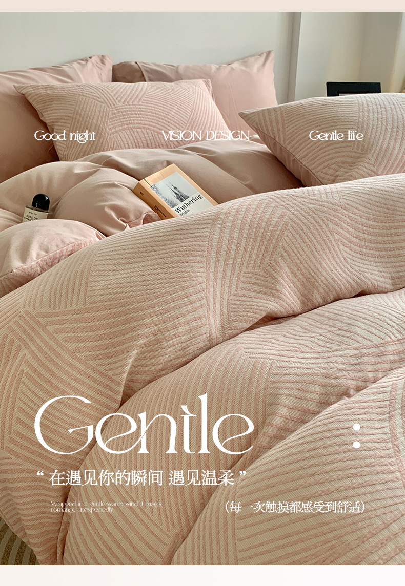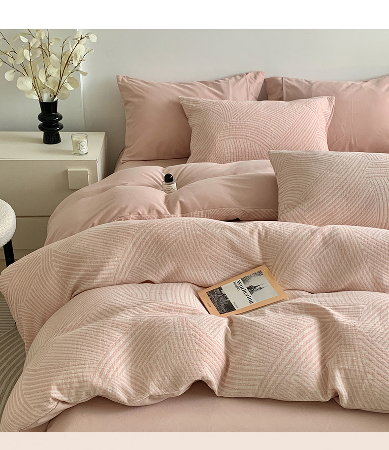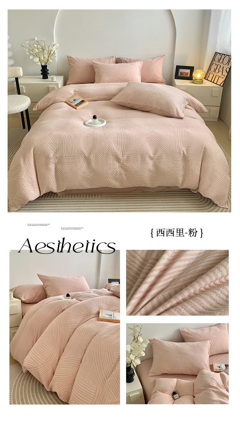 莱茵家居 2024新款全棉磨毛A类色织提花四件套 西西里-粉