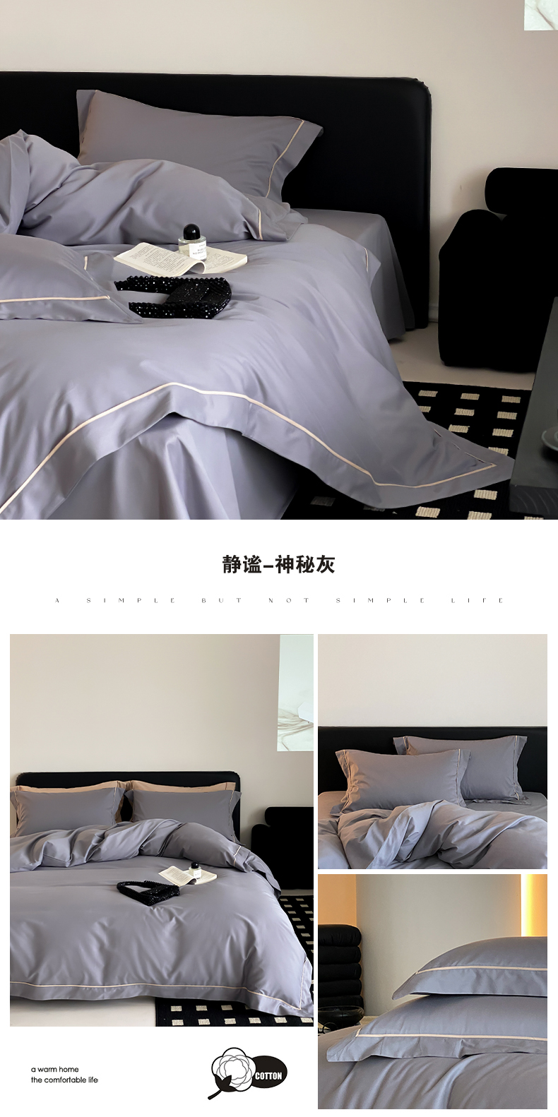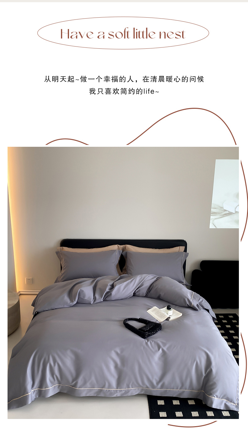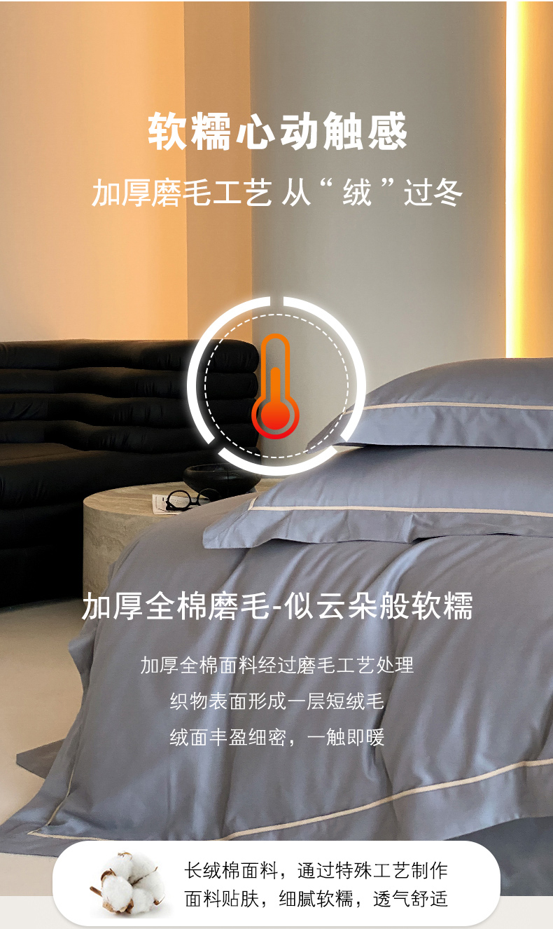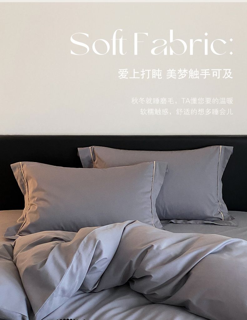 商品名称:云栖家居 2024A类全棉磨毛静谧系列四件套 静谧-神秘灰