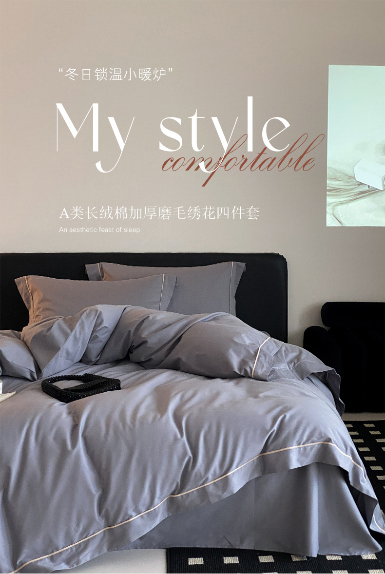 云栖家居 2024A类全棉磨毛静谧系列四件套 静谧-神秘灰