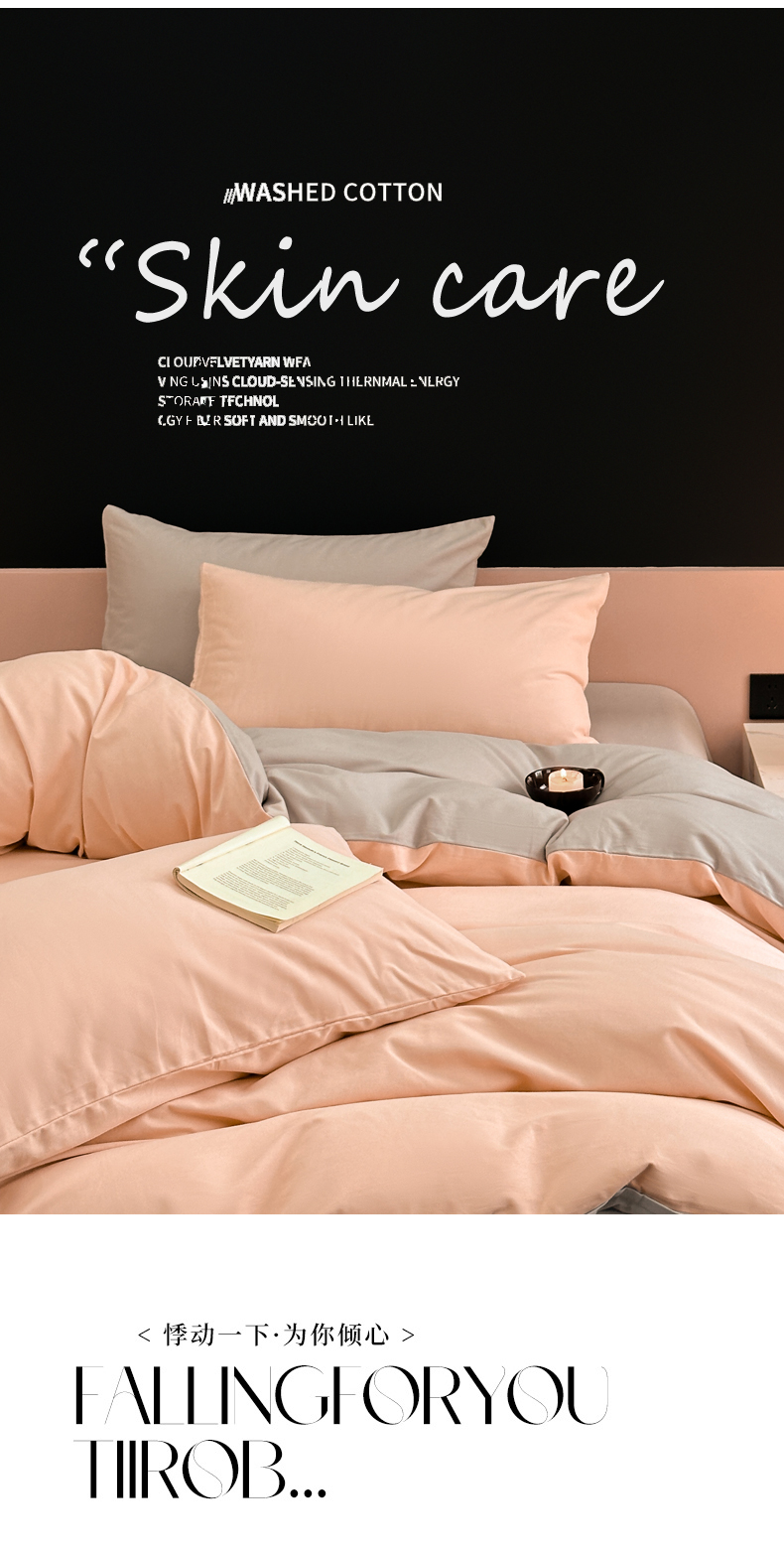 柠馨 2024新款全棉磨毛纯色四件套-赫尔墨斯系列 2蜜桃粉+雅灰