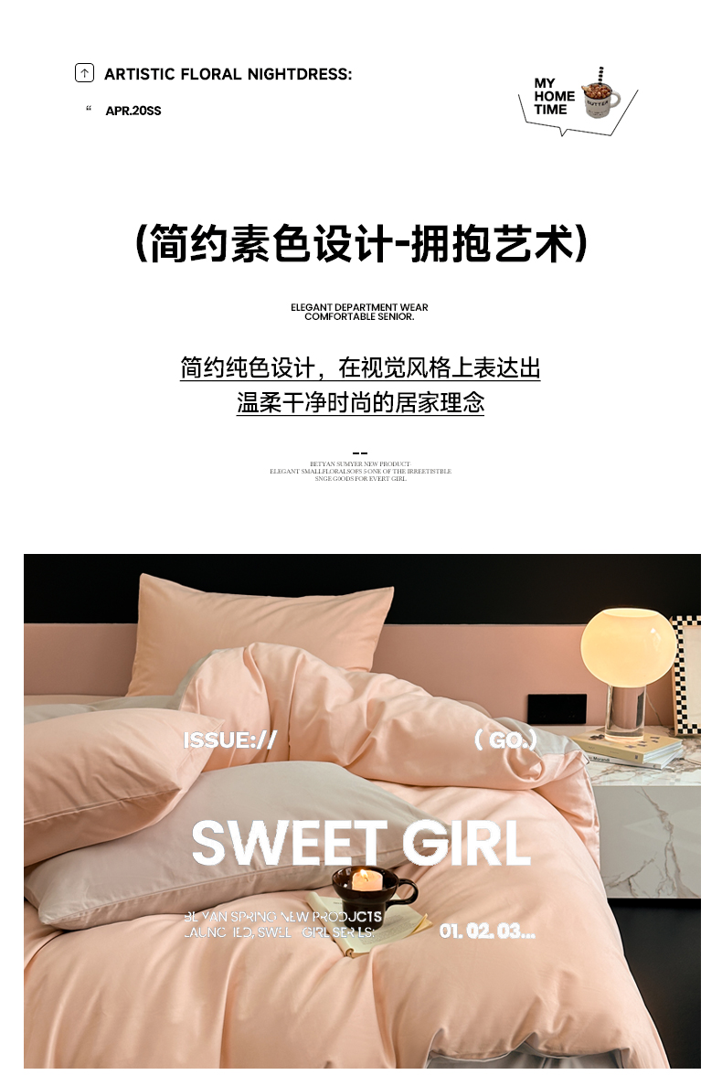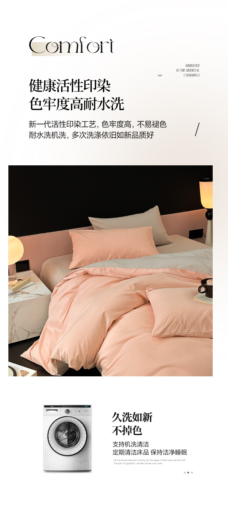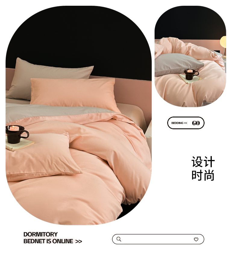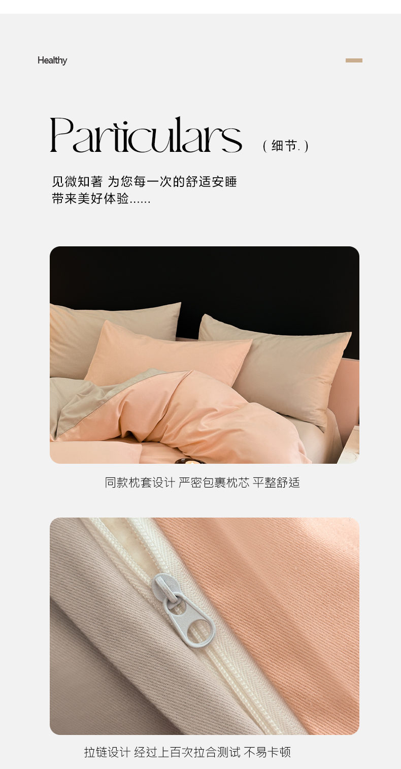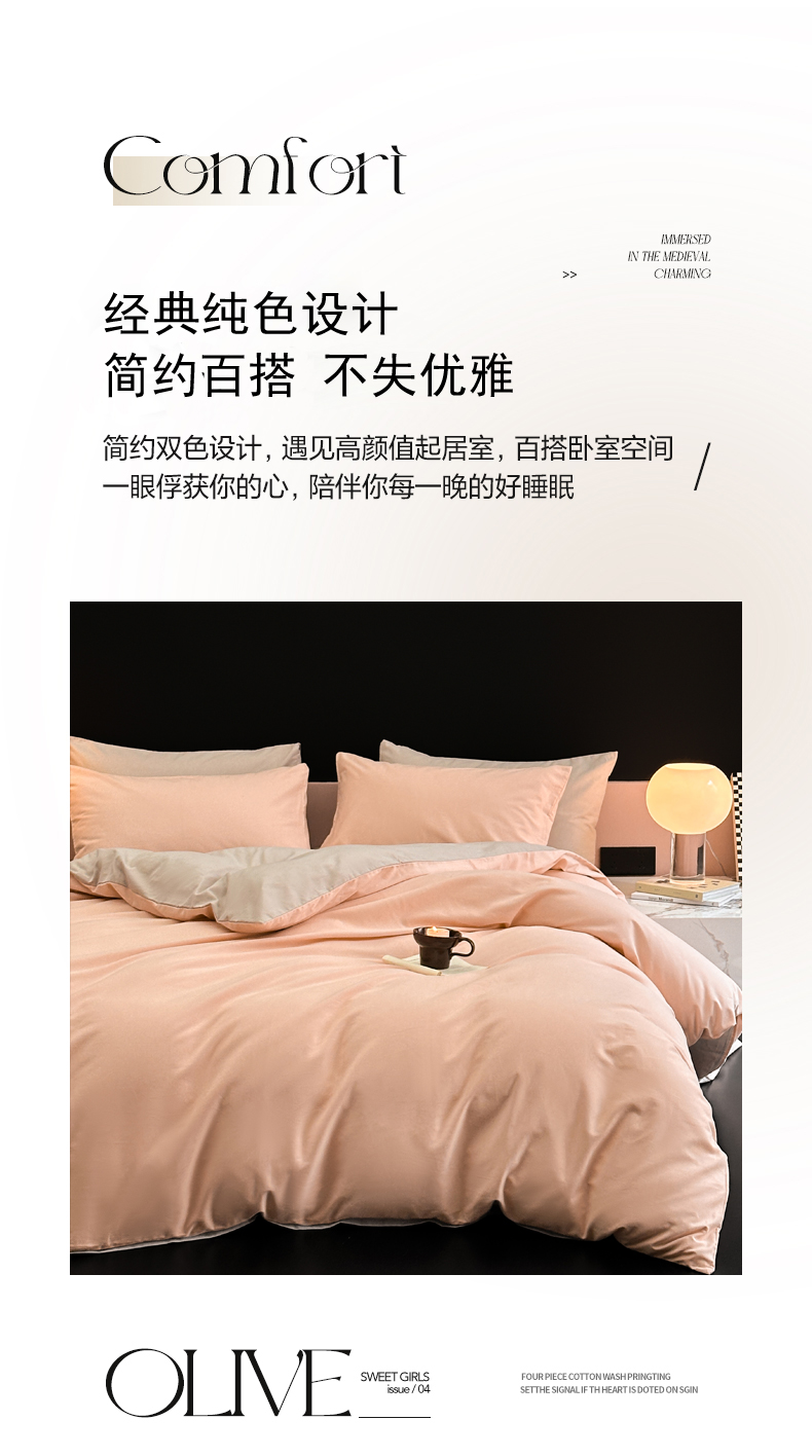 商品名称:柠馨 2024新款全棉磨毛纯色四件套-赫尔墨斯系列 2蜜桃粉+雅灰