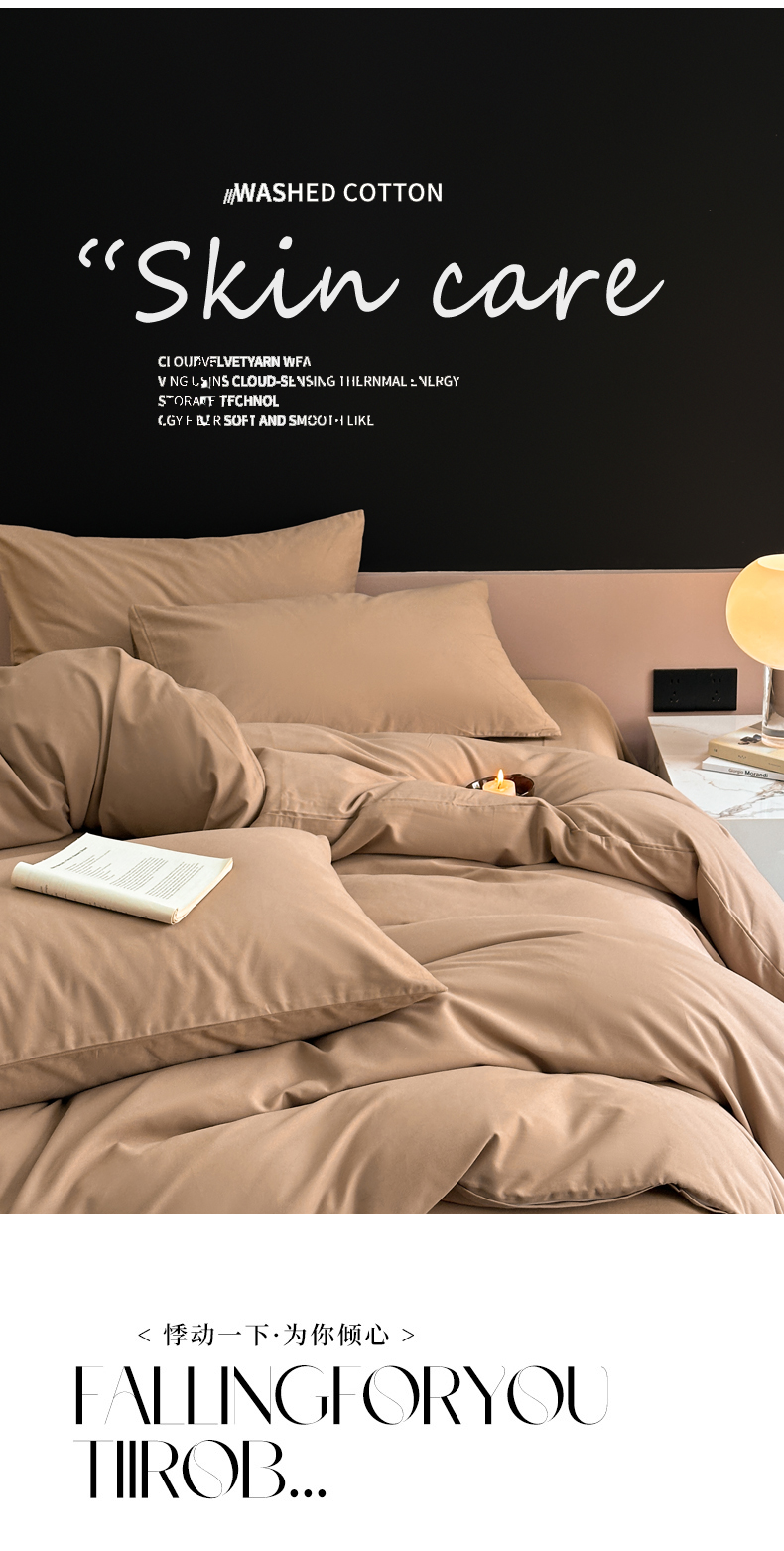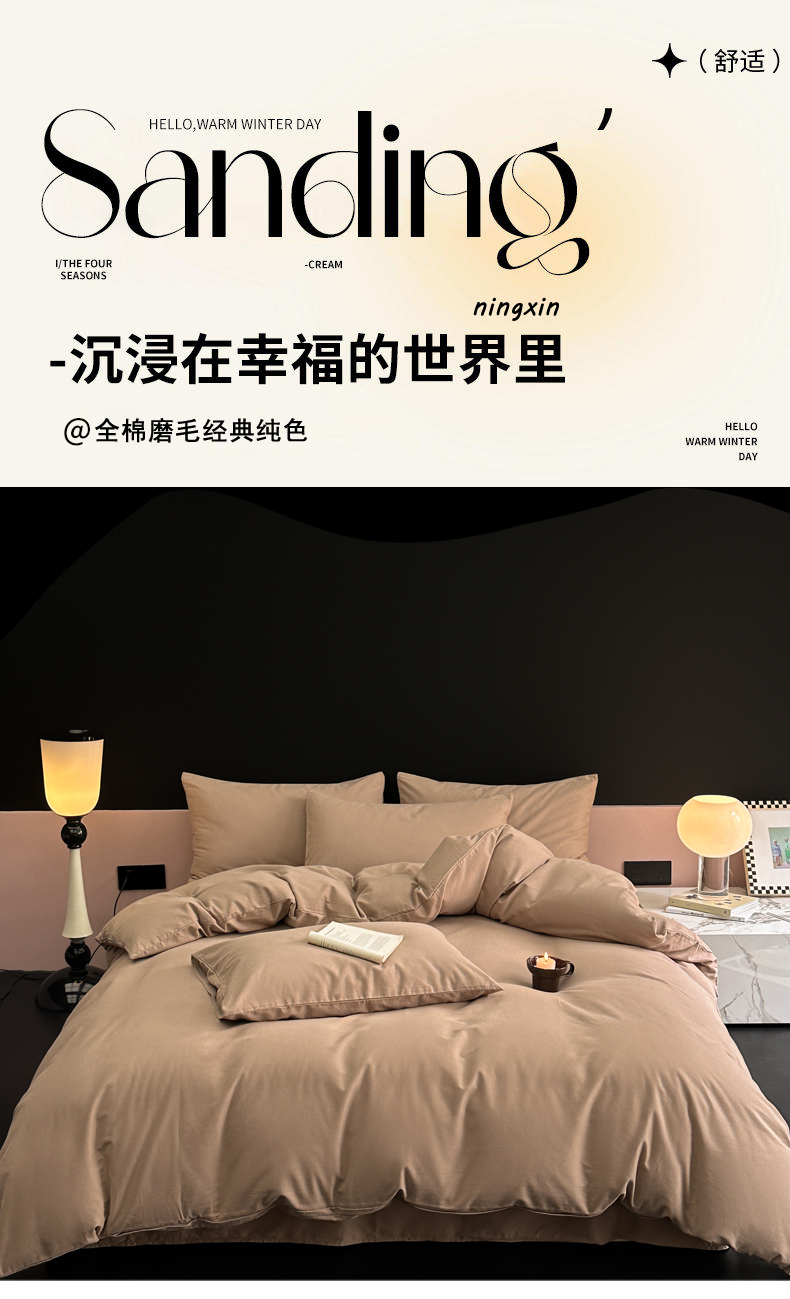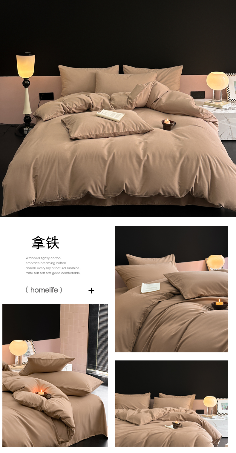 商品名称:柠馨 2024新款全棉磨毛纯色四件套-赫尔墨斯系列 12拿铁