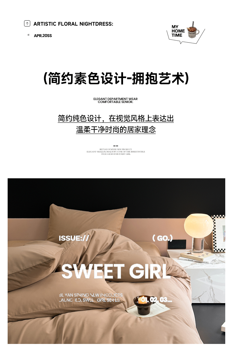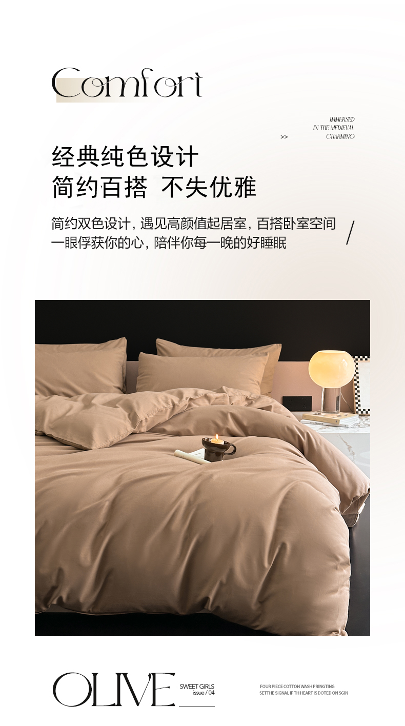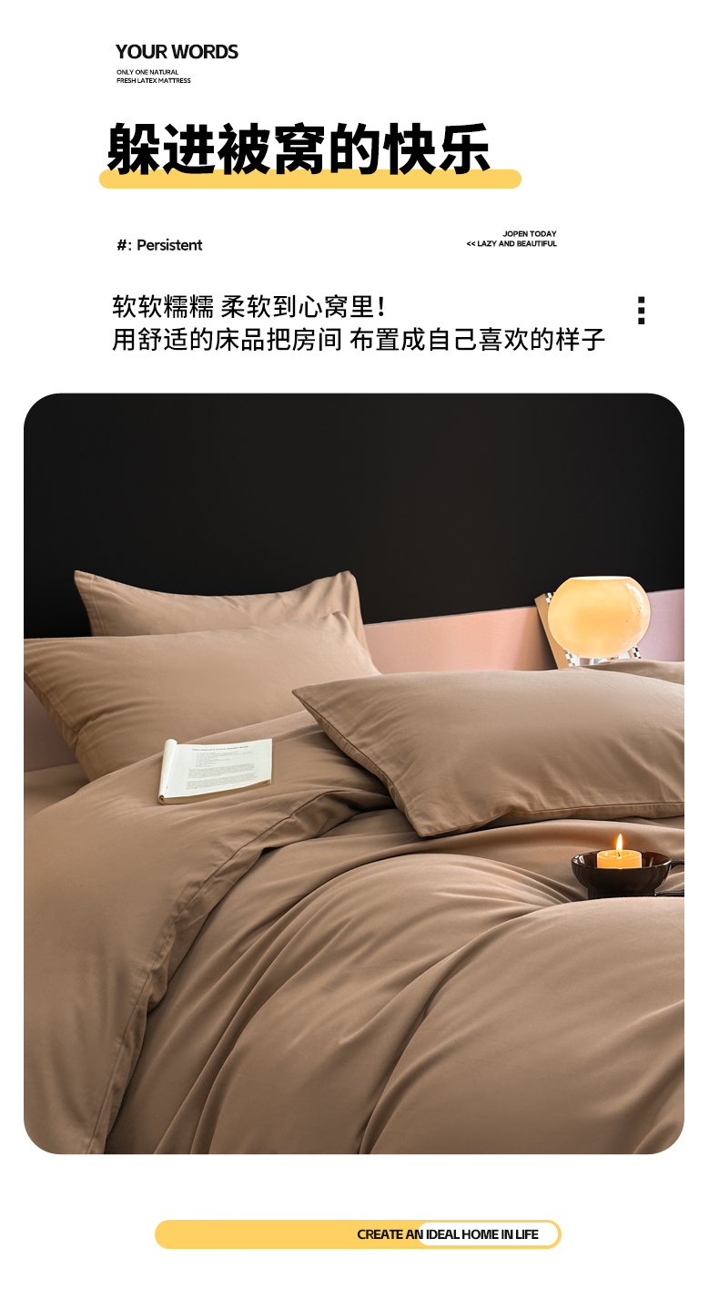 商品名称:柠馨 2024新款全棉磨毛纯色四件套-赫尔墨斯系列 12拿铁