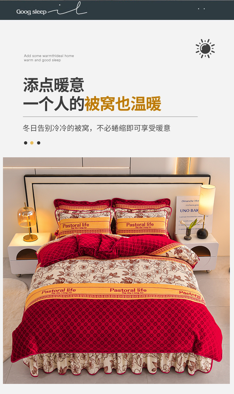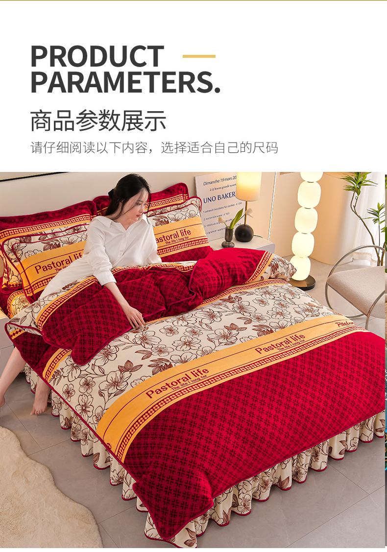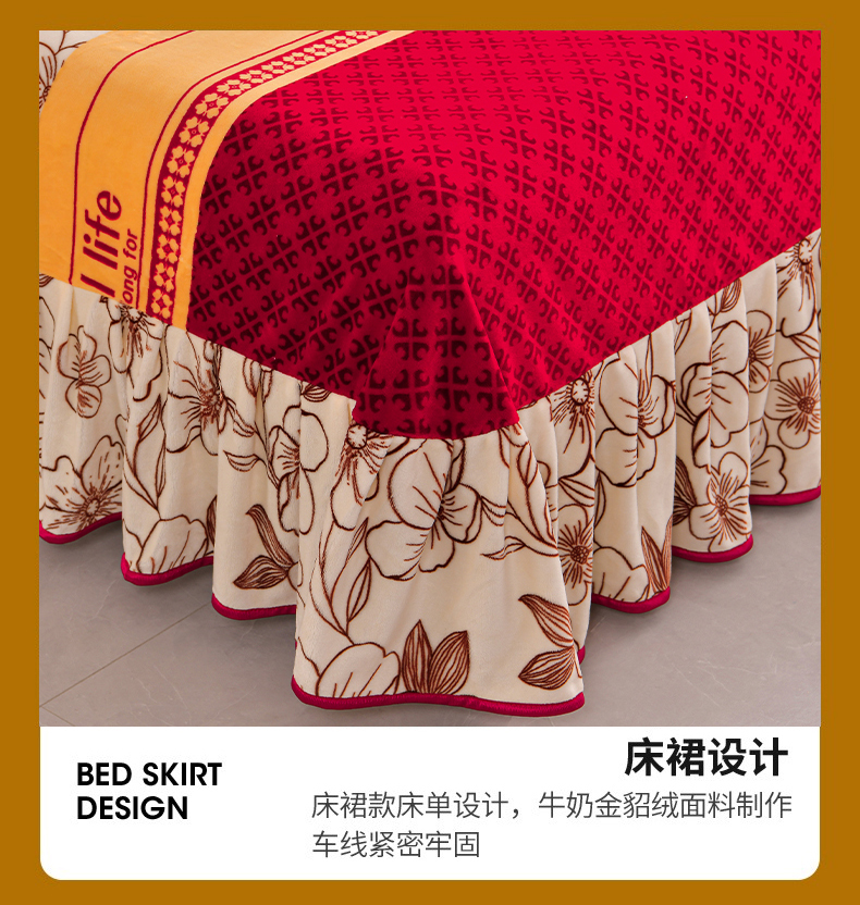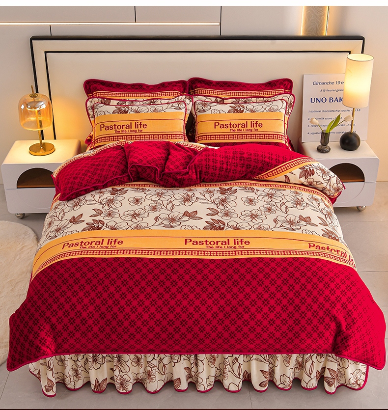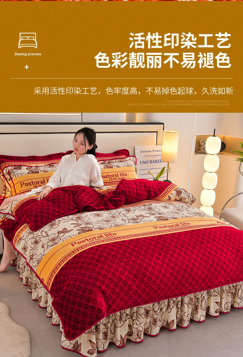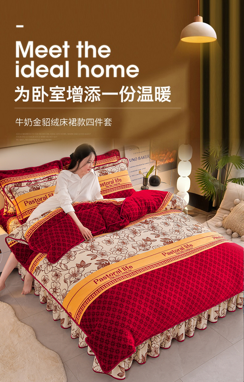 商品名称:馨梦缘 2025新款小包边款牛奶绒8.5斤高克重牛奶绒金雕绒床裙款四件套 爱的花海