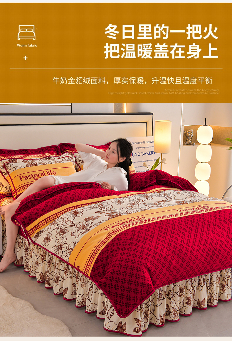 馨梦缘 2025直播爆款8.5斤牛奶绒四件套加厚保暖床裙金貂绒 静若繁花 粉,静若繁花 粉