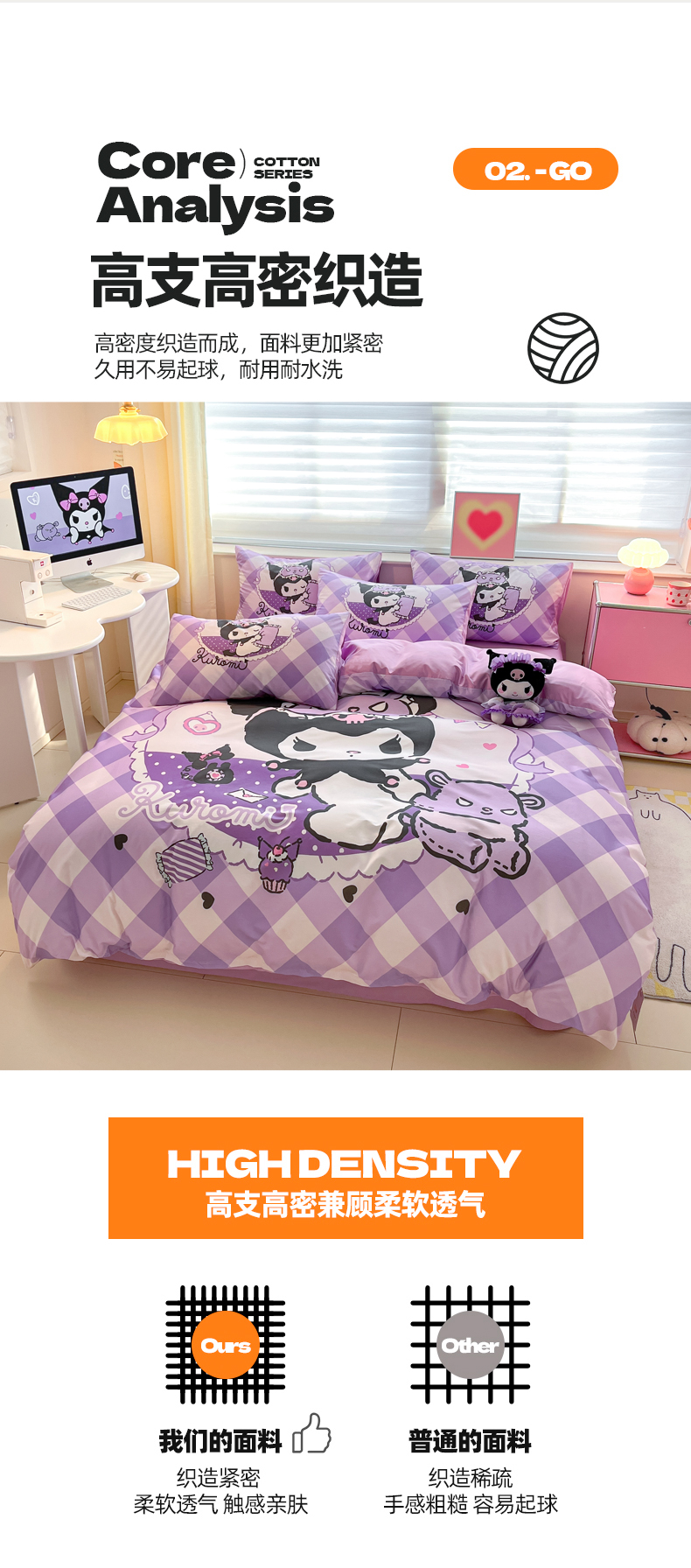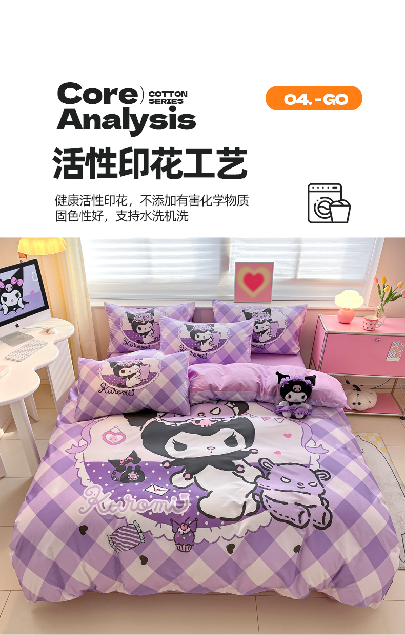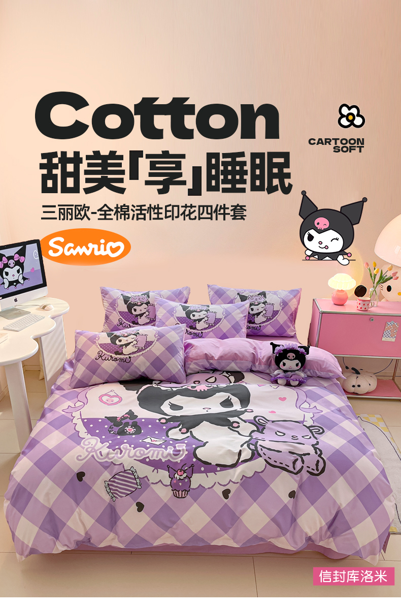 当前位置: 91家纺网 > 商品网购 > 床品套件 > 四件套 > 全棉普通四件套 > 桃子家居 2024纯棉大版三丽鸥卡通平网印花系列四件套 棉大版-D信封库洛米