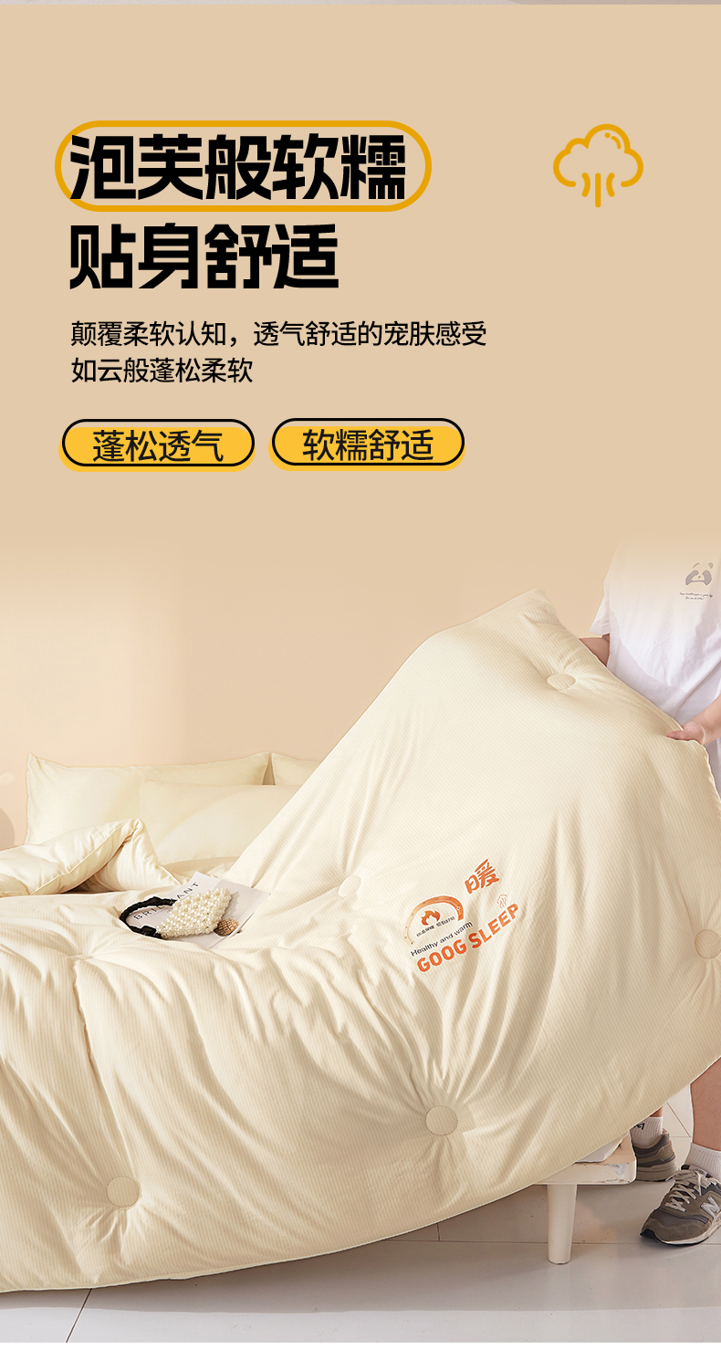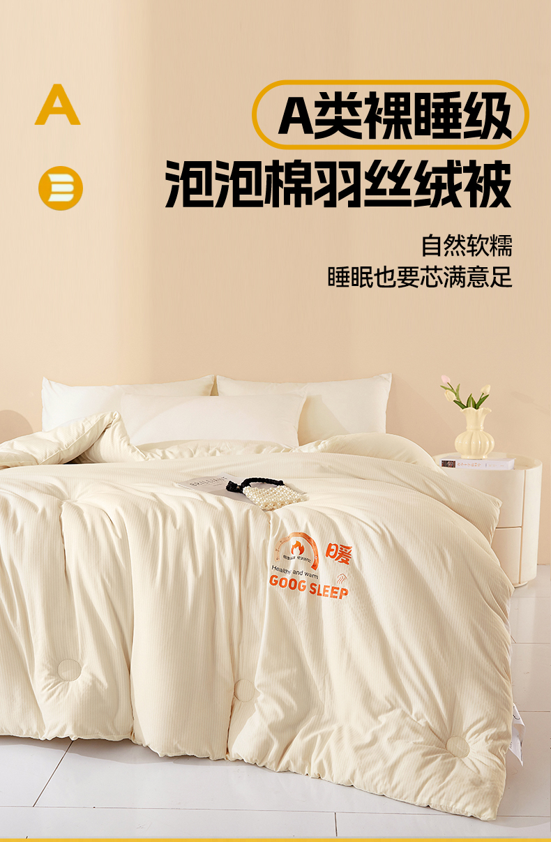 • 91家纺网 家纺一手货源 找家纺 换种生活 2024新款A类泡泡棉羽丝绒暖系列冬被 泡泡-米黄