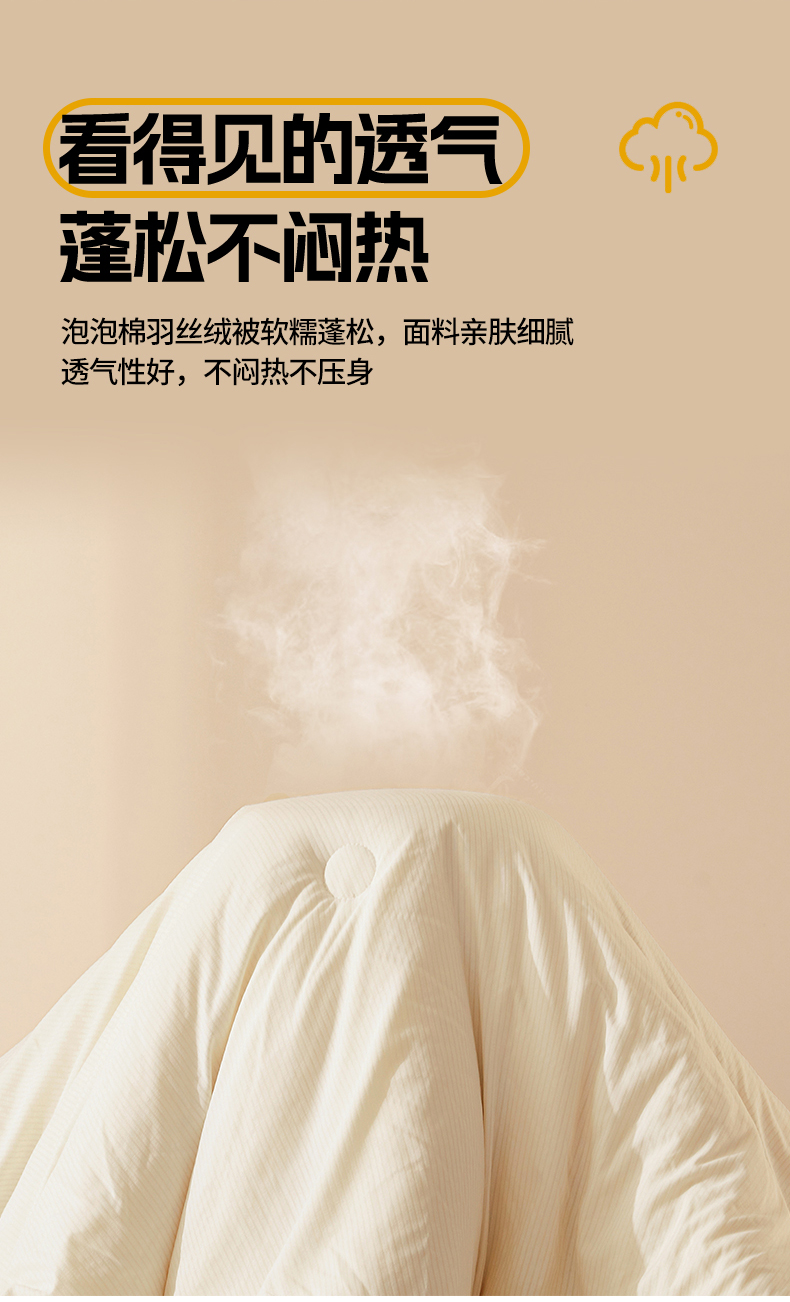 当前位置: 91家纺网 > 商品网购 > 被子 > 冬被 > 换种生活 2024新款A类泡泡棉羽丝绒暖系列冬被 泡泡-米黄