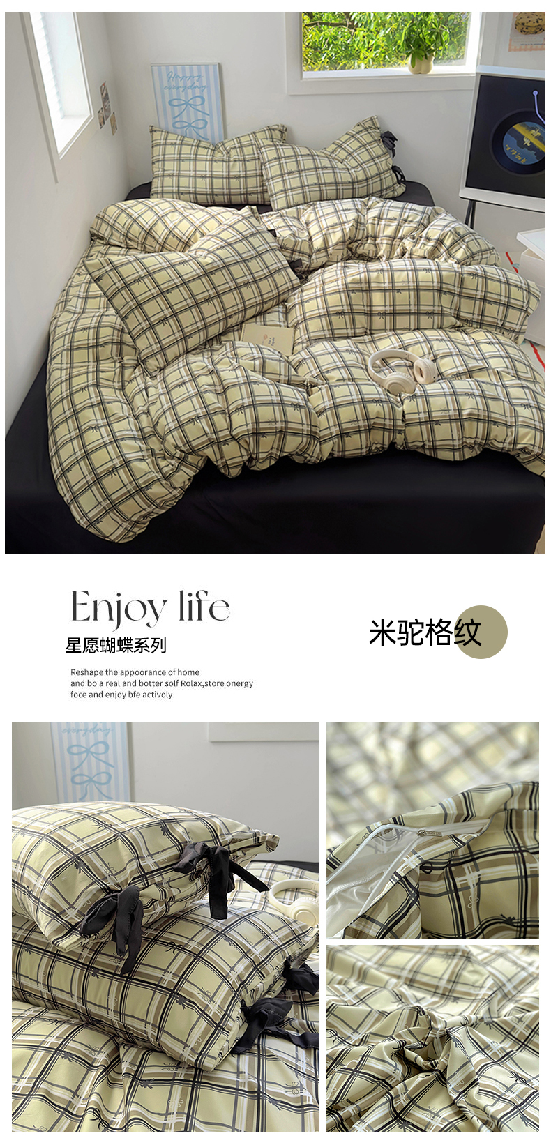 商品名称:春光里 2024新款亲肤棉磨毛印花星愿蝴蝶系列四件套 星愿蝴蝶-米驼格纹