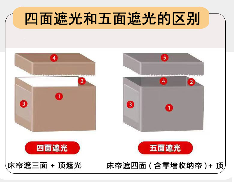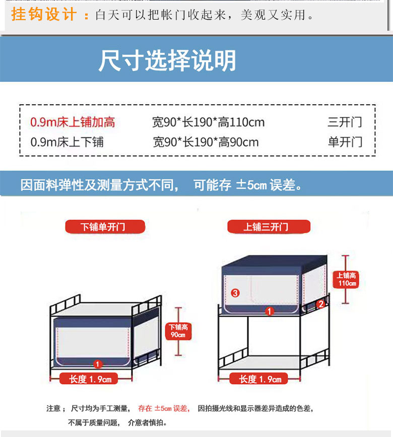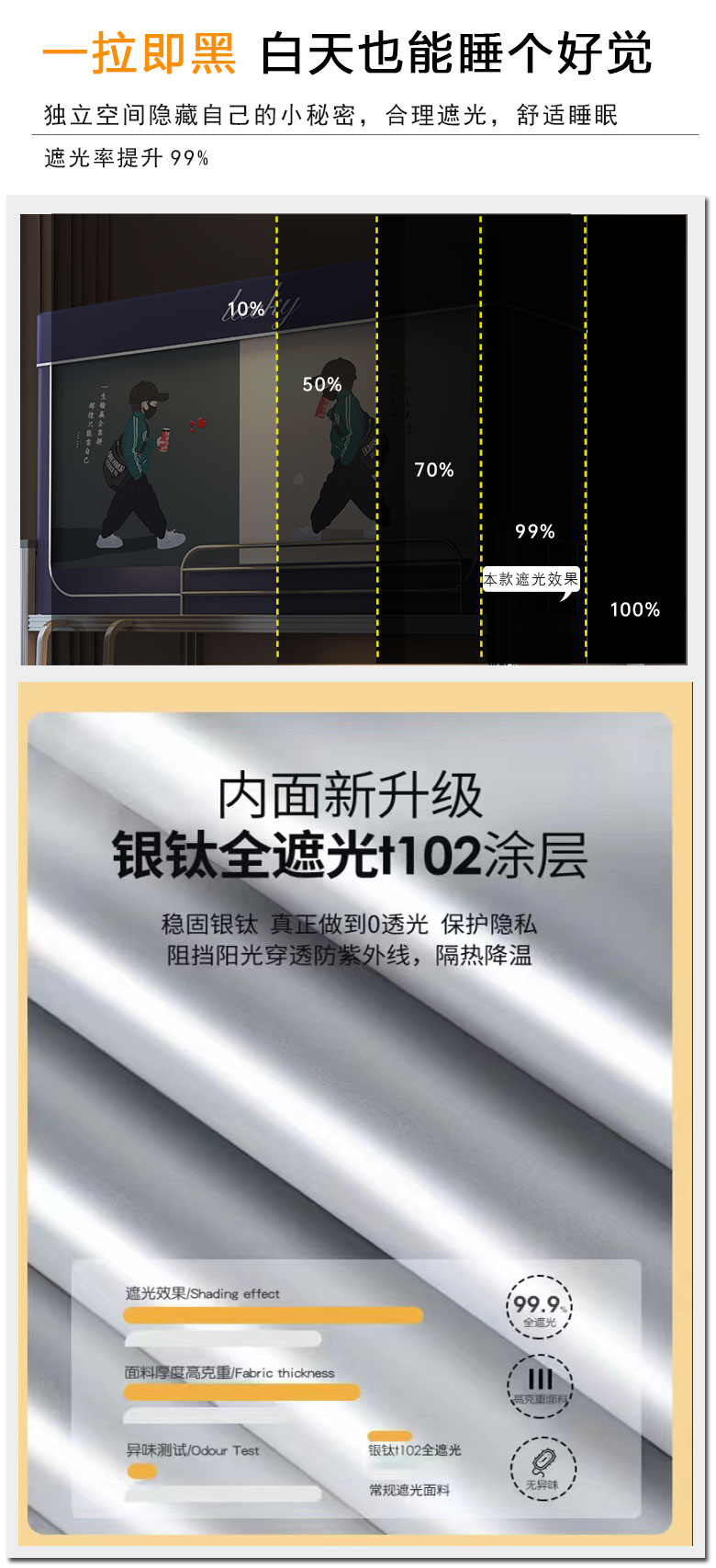 上铺:宽90x长190x高110五面遮光(含靠墙口袋)