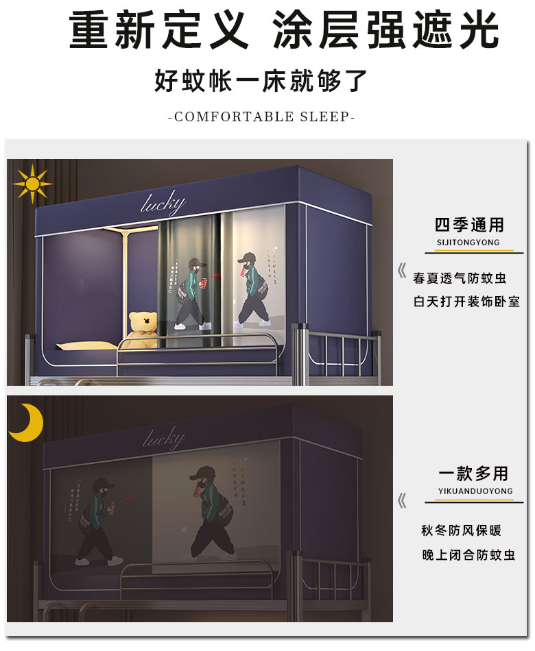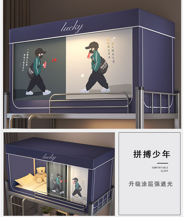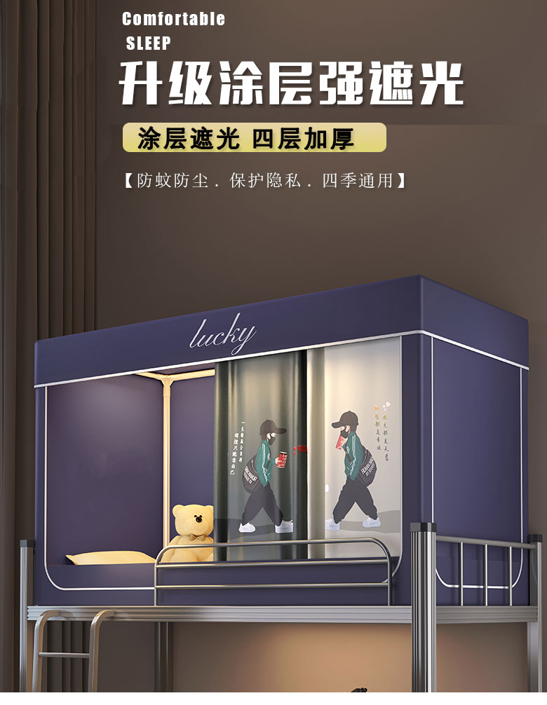 下铺:宽90x长190x高90五面遮光(含靠墙口袋)