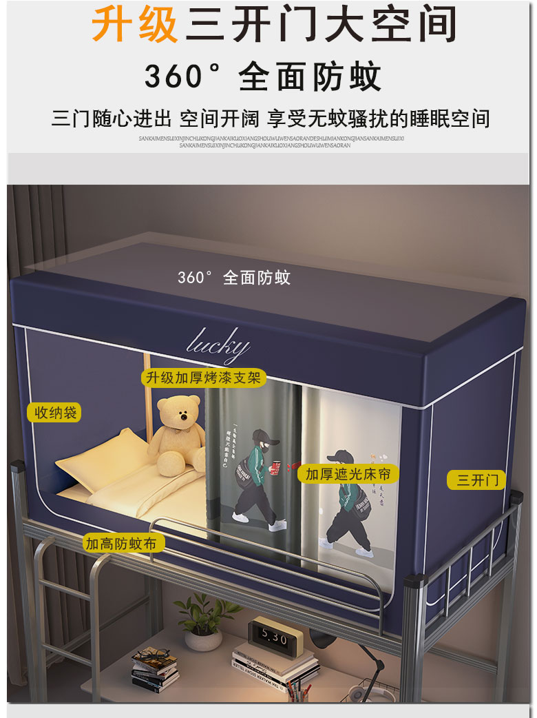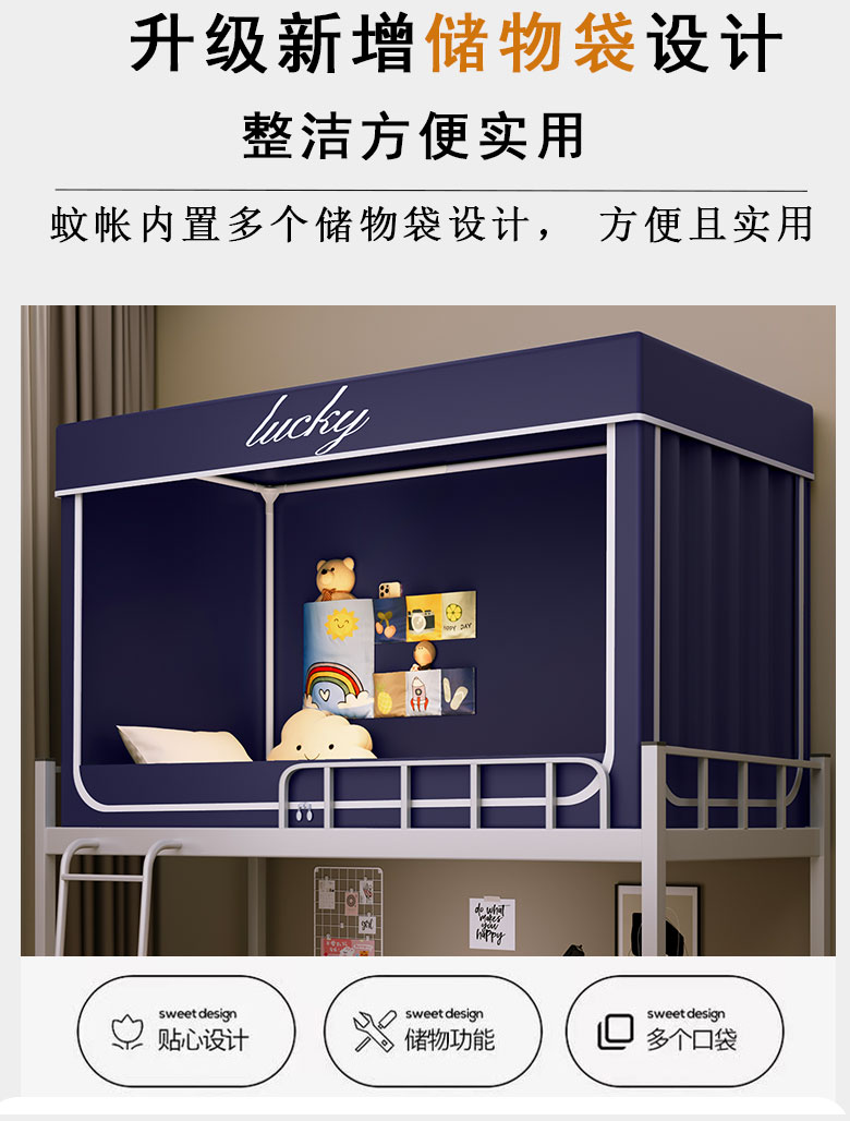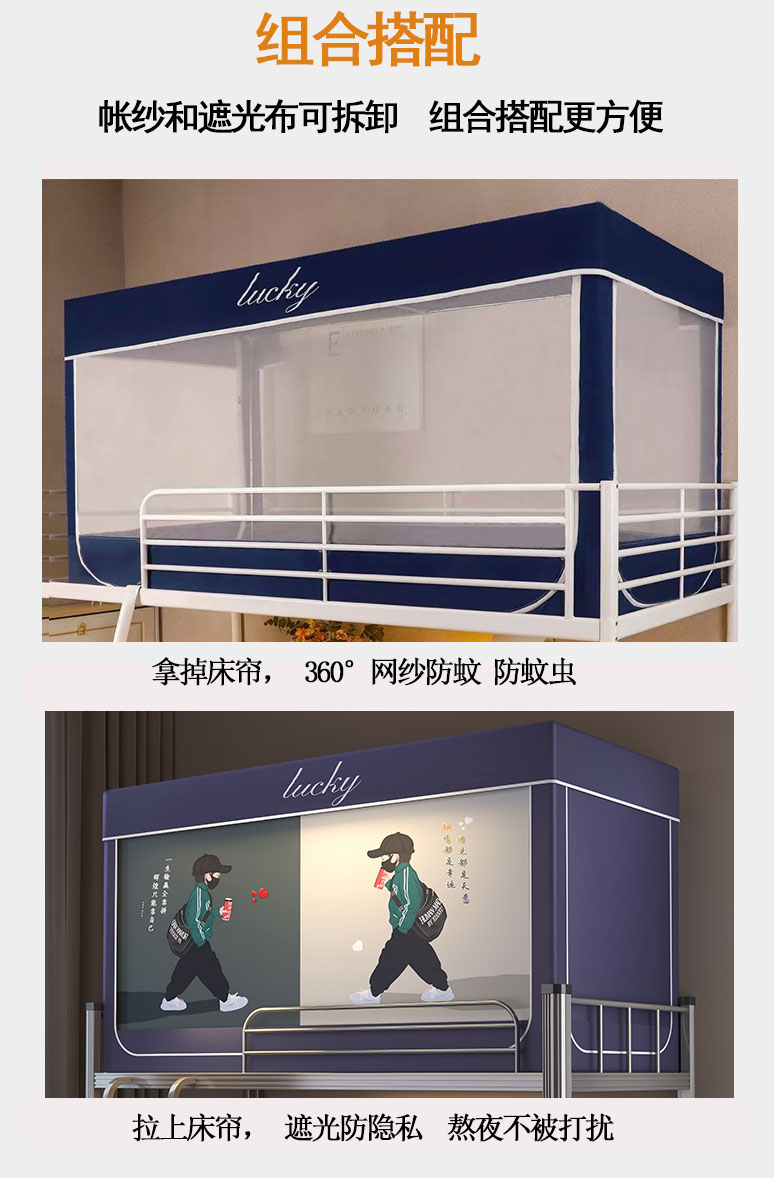 (总)宜品雅 2025新款学生款宿舍遮光蚊帐,藏蓝色,淡雅灰,米色,深空灰,天空蓝,樱花粉