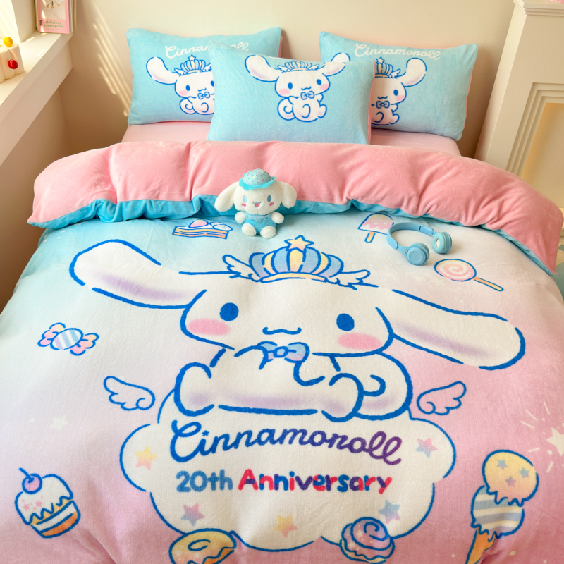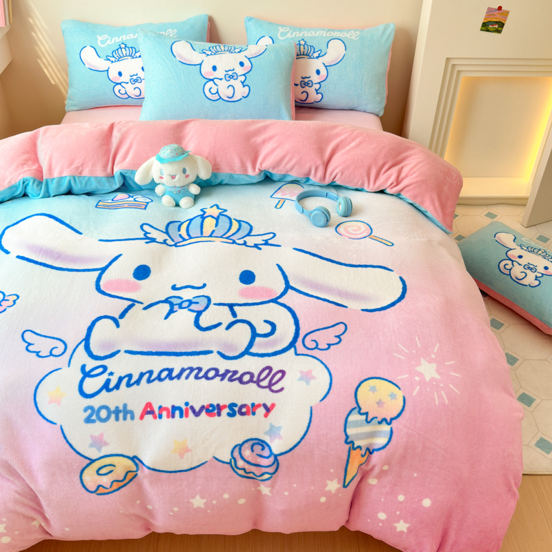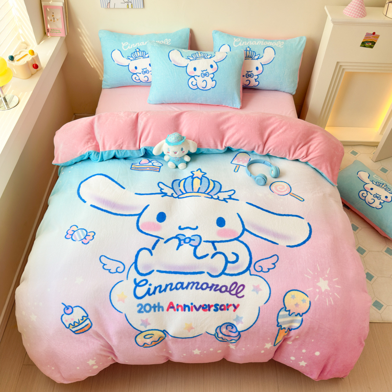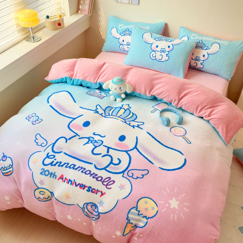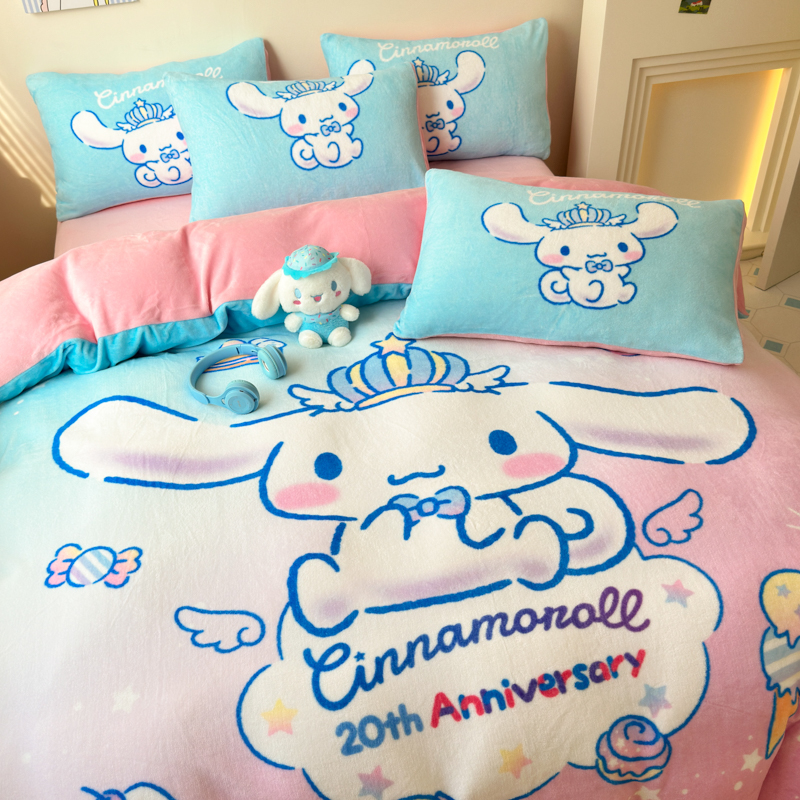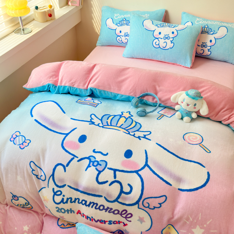 当前位置: 91家纺网 > 商品网购 > 床品套件 > 四件套 > 牛奶绒四件套 > 孩子王家纺 2024新款正版授权三丽鸥库洛米大版卡通学生宿舍双面加厚牛奶绒系列四件套--提供买家秀 闪亮玉桂狗