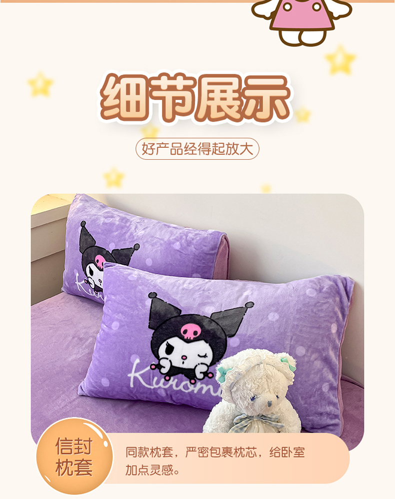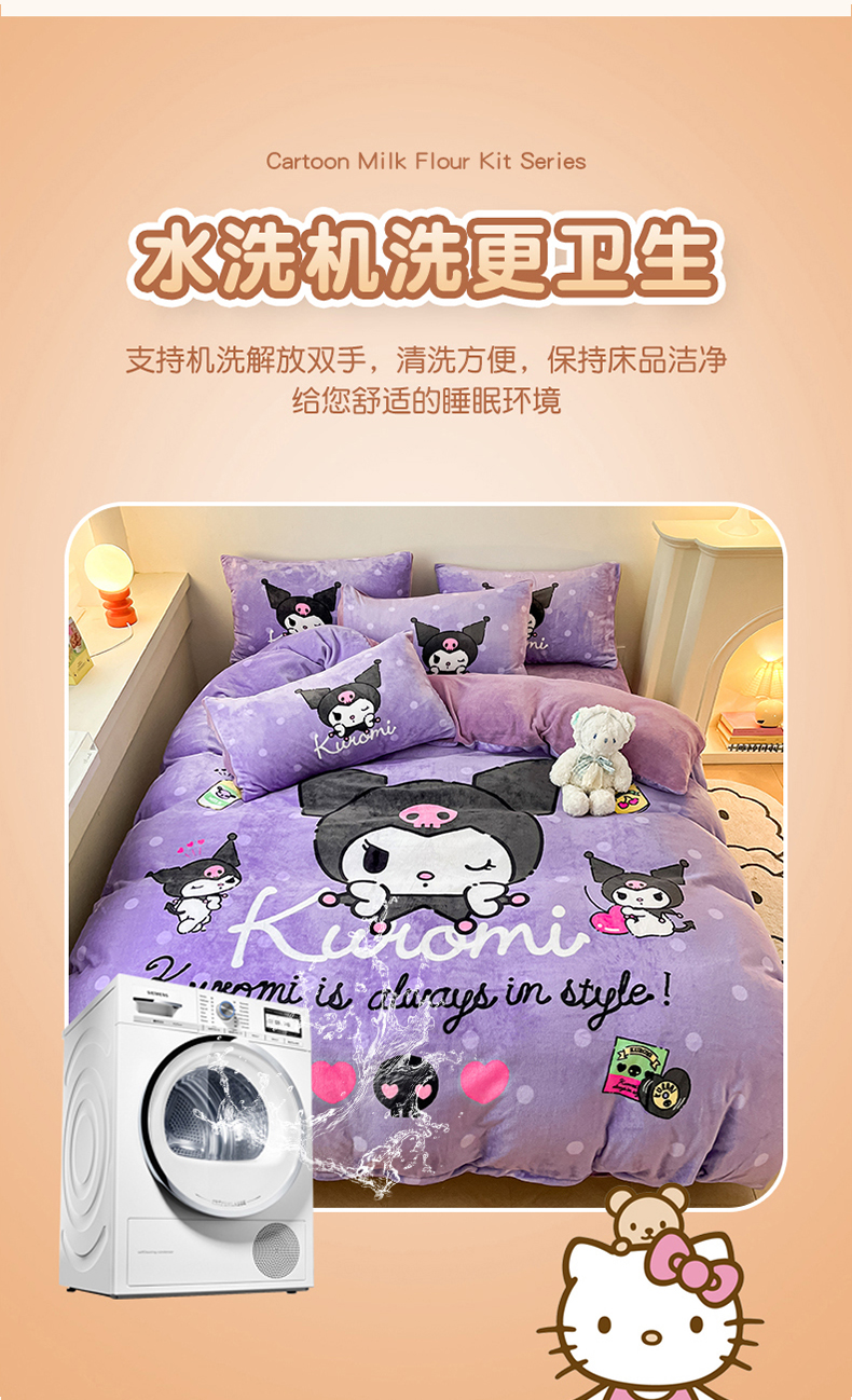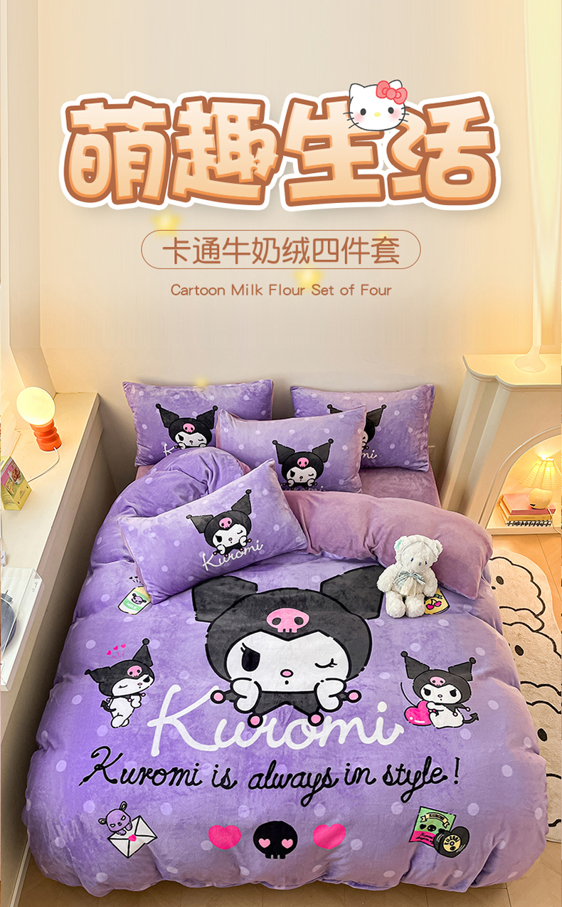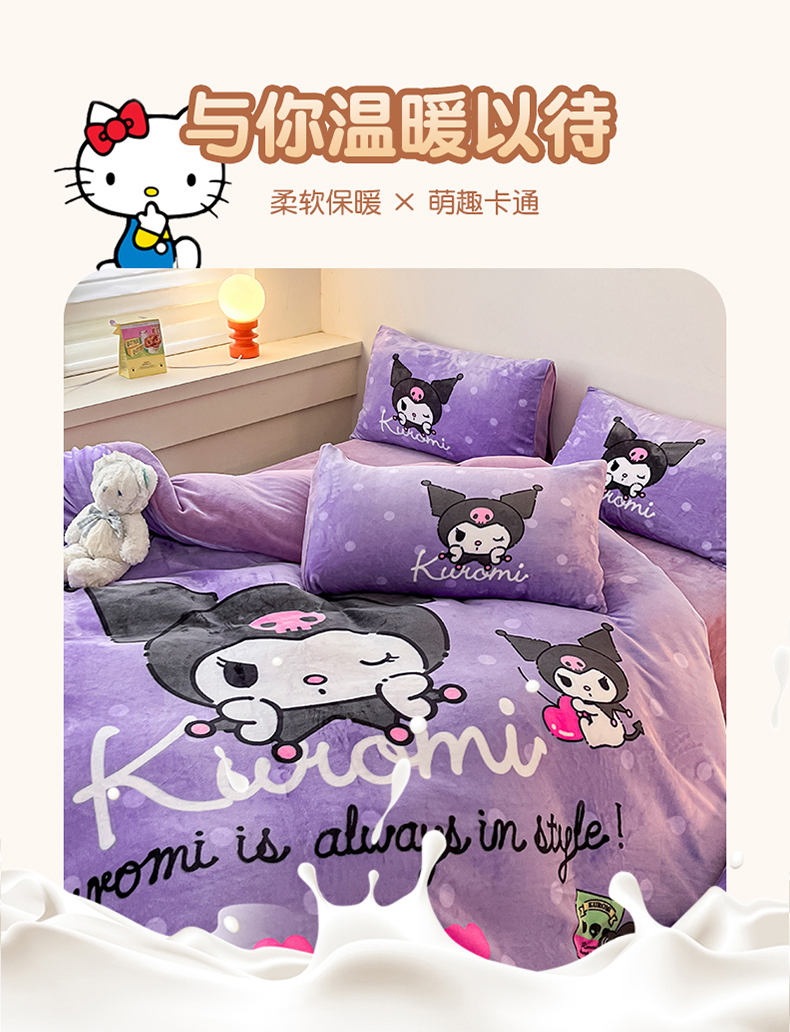 当前位置: 91家纺网 > 商品网购 > 床品套件 > 四件套 > 牛奶绒四件套 > 孩子王家纺 2024新款正版授权三丽鸥库洛米大版卡通学生宿舍双面加厚牛奶绒系列四件套--提供买家秀 圆点库洛米