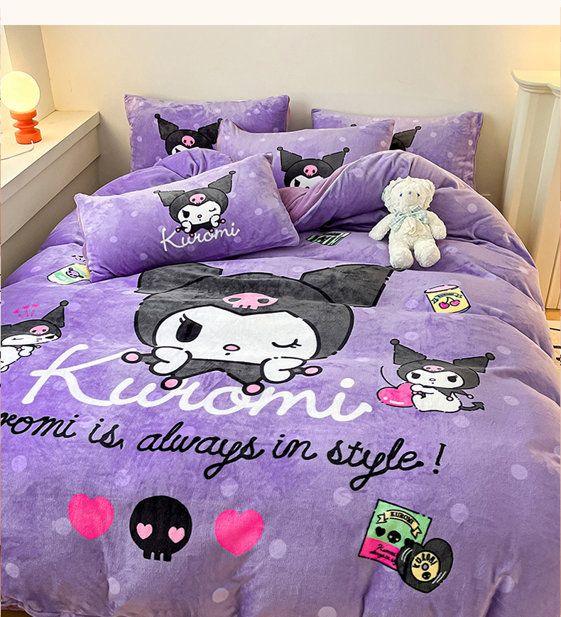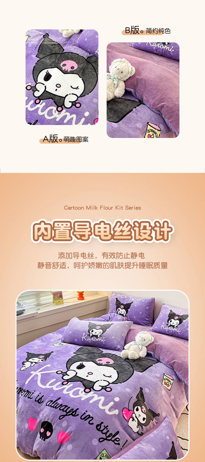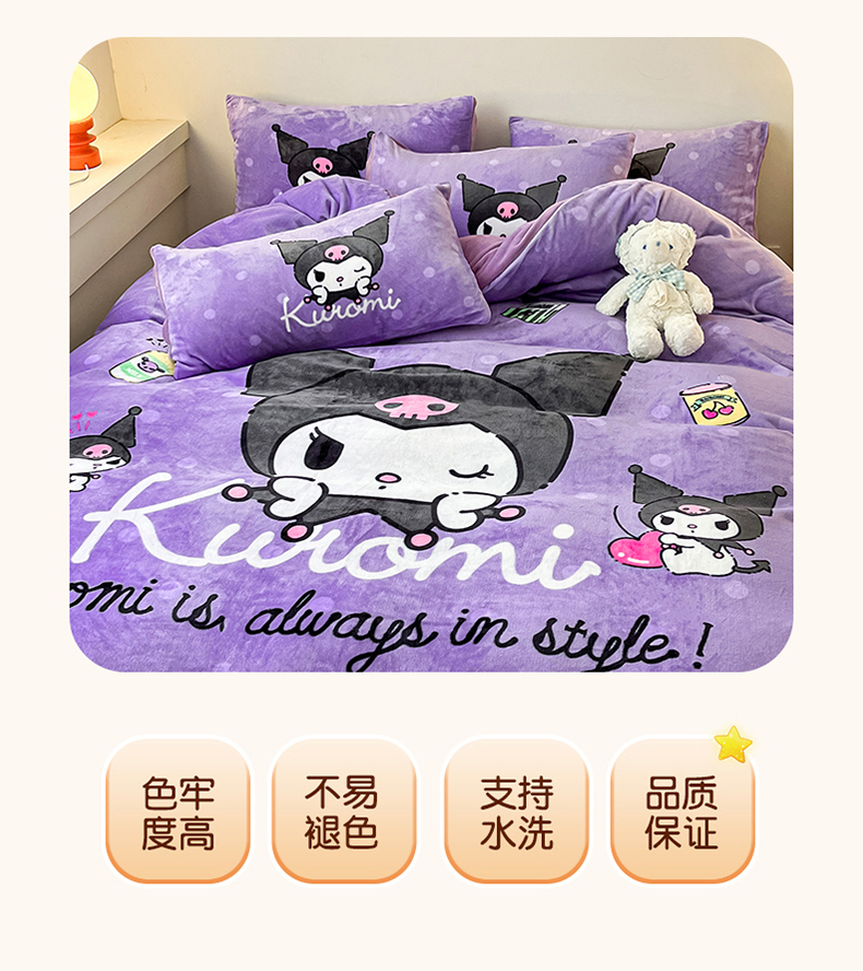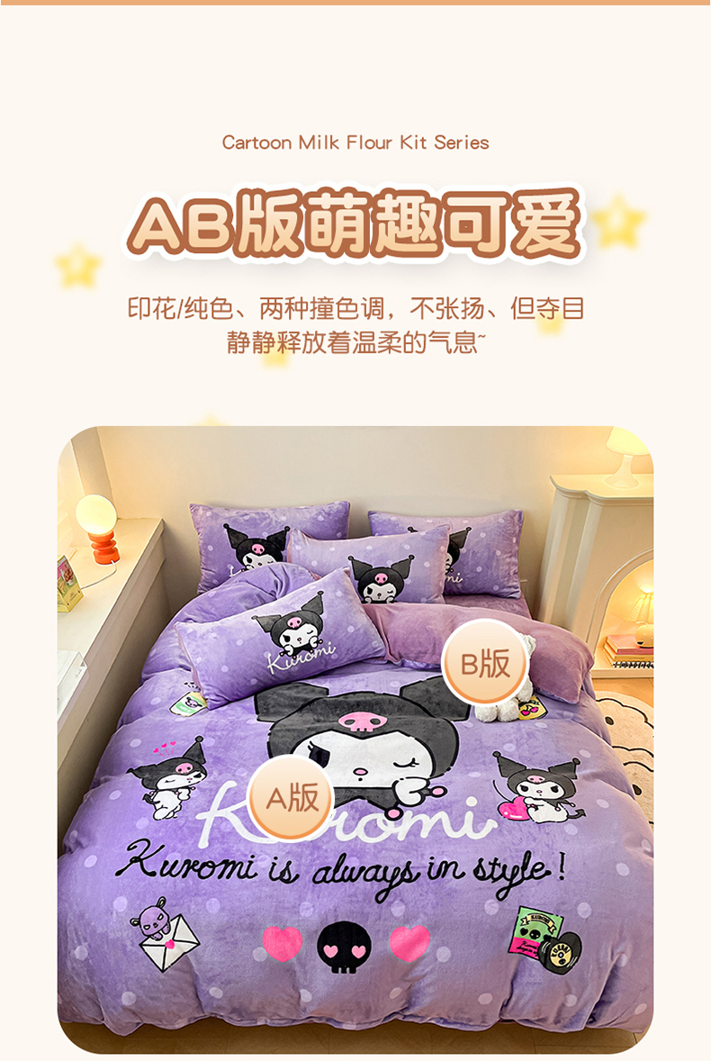 当前位置: 91家纺网 > 商品网购 > 床品套件 > 四件套 > 牛奶绒四件套 > 孩子王家纺 2024新款正版授权三丽鸥库洛米大版卡通学生宿舍双面加厚牛奶绒系列四件套--提供买家秀 圆点库洛米