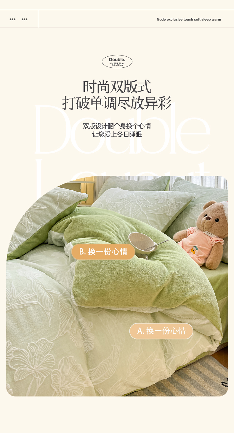 (总)绘萱家居 2025新款高克重雕花雕印纯色牛奶绒四件套双拼法莱绒珊瑚绒,蝴蝶纷飞-白卡其,蝴蝶纷飞-粉,蝴蝶纷飞-灰,蝴蝶纷飞-咖,蝴蝶纷飞-绿,甜蜜结-白卡其,甜蜜结-粉,甜蜜结-咖,甜蜜结-蓝,甜蜜结-紫,小雏菊,爱意浓-粉,爱意浓-蓝,芭蕉叶-灰绿,芭蕉叶-奶白咖,芭蕉叶-奶咖,芭蕉叶-浅兰,雕印蝴蝶-浅粉,雕印蝴蝶-浅兰,雕印郁金香-粉,雕印郁金香-紫,蝴蝶公主,花开-淡紫粉,花开-浅绿,华夫格-奶白橙,华夫格-奶白灰,回字格-灰,回字格-奶白咖,回字格-浅兰,孔雀开屏,麦穗-绿,麦穗-奶白咖,曼塔玫瑰-粉豆,曼塔玫瑰-绿,山茶庄园-奶白粉,山茶庄园-奶白咖,手捧花-奶白咖,手捧花-浅兰,叶景-咖,叶景-蓝,一生挚爱-粉,一生挚爱-卡其,知意-粉,知意-绿