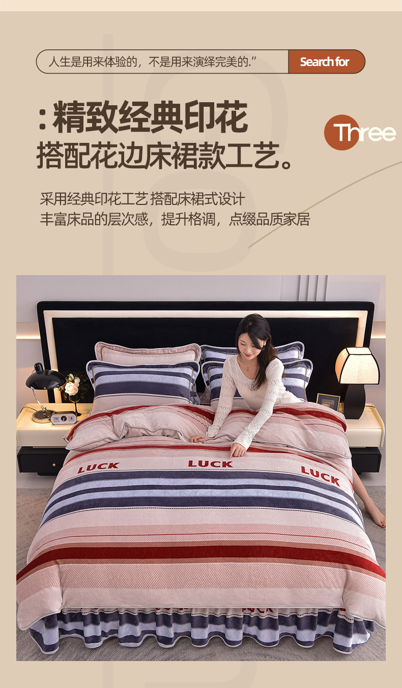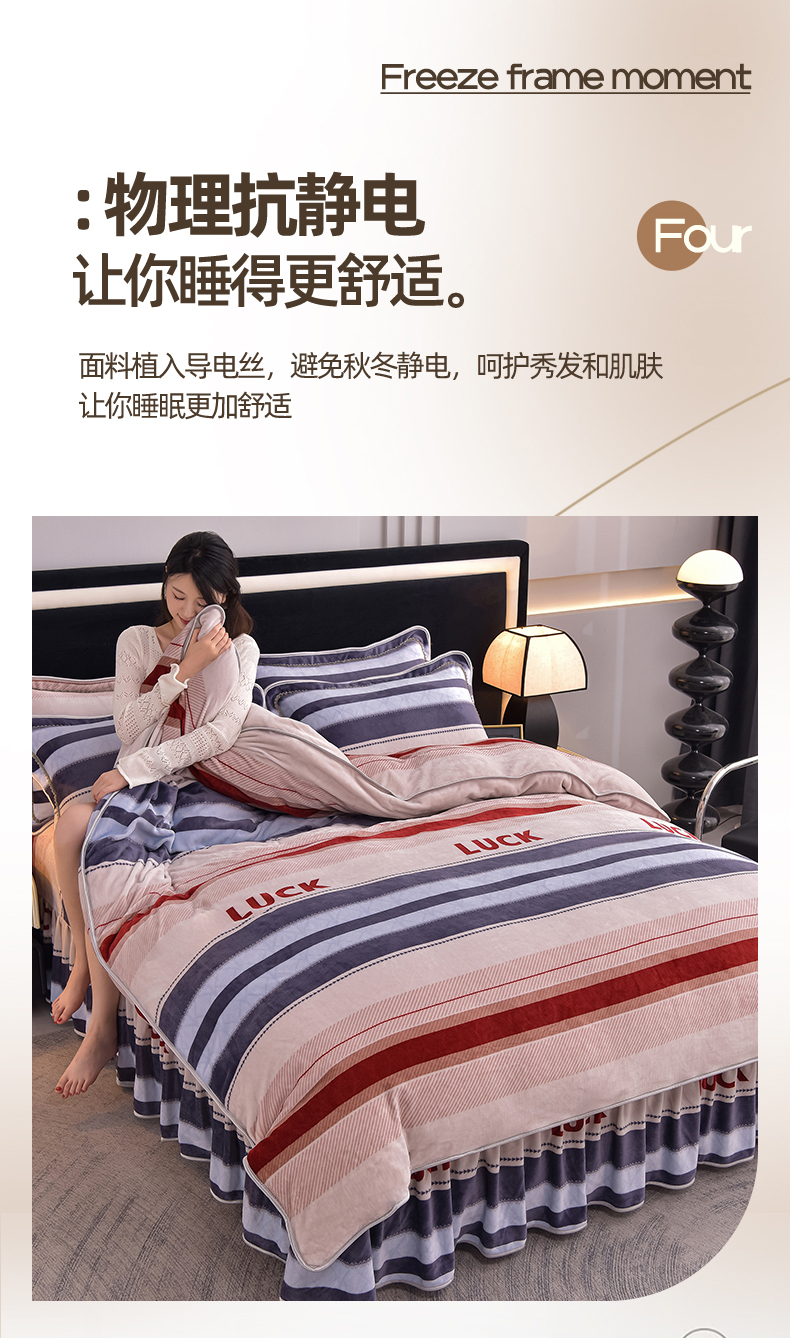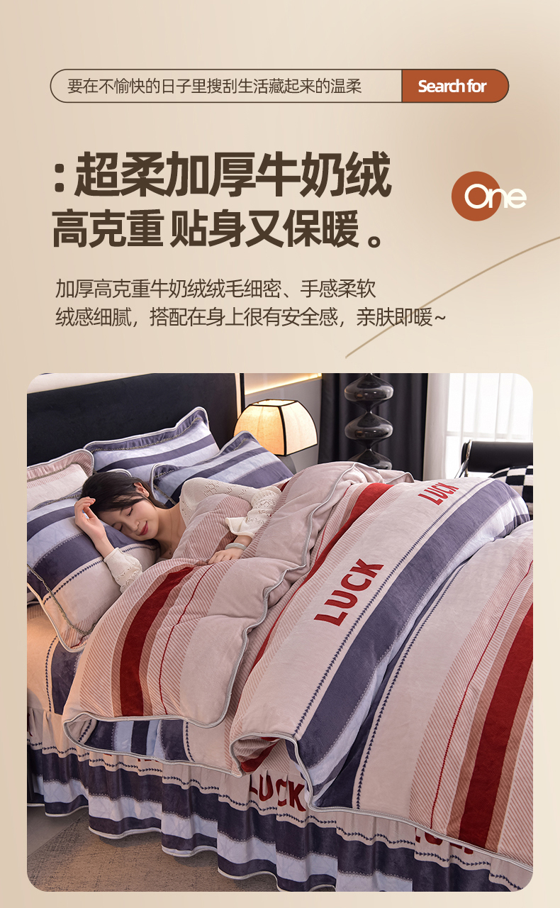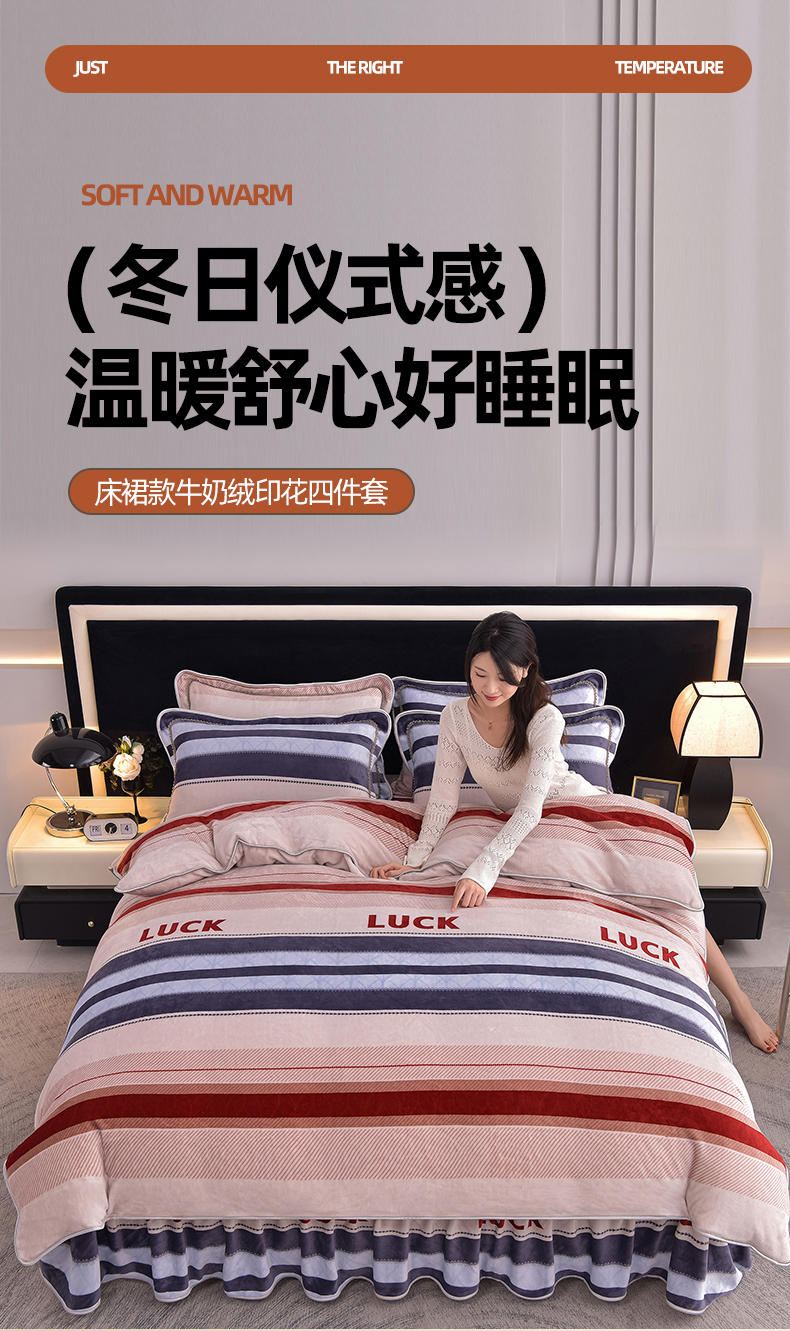 商品名称:佳品居 2025新款8斤床裙款牛奶绒四件套 时光印象