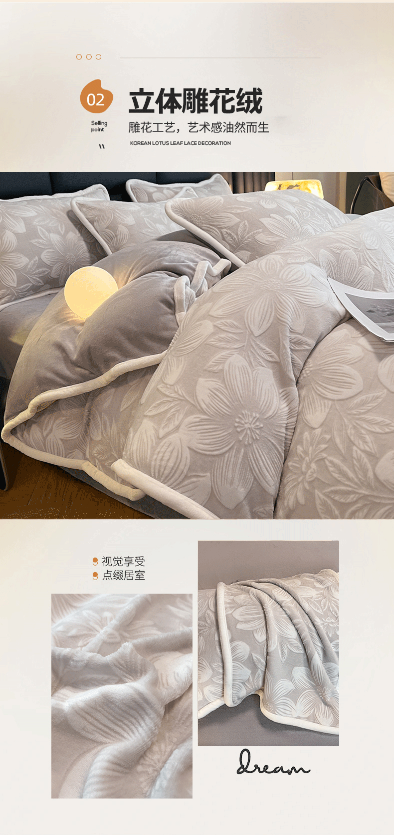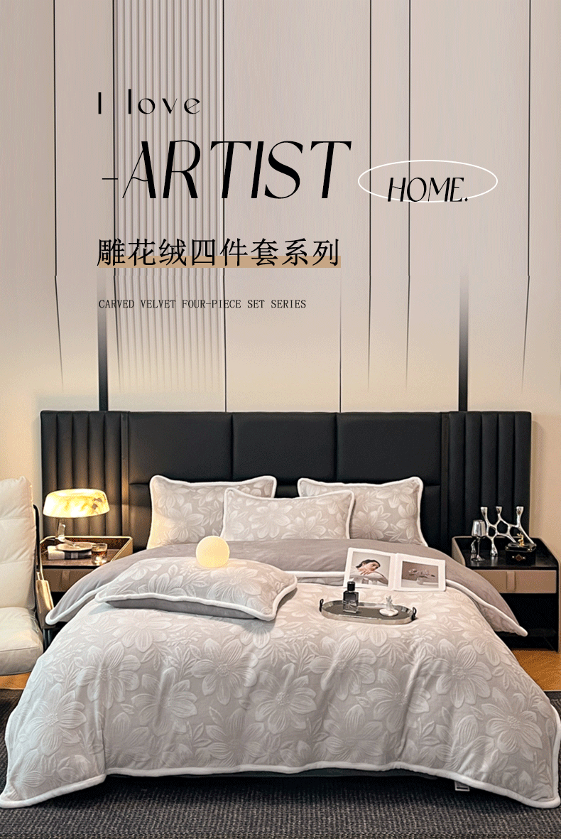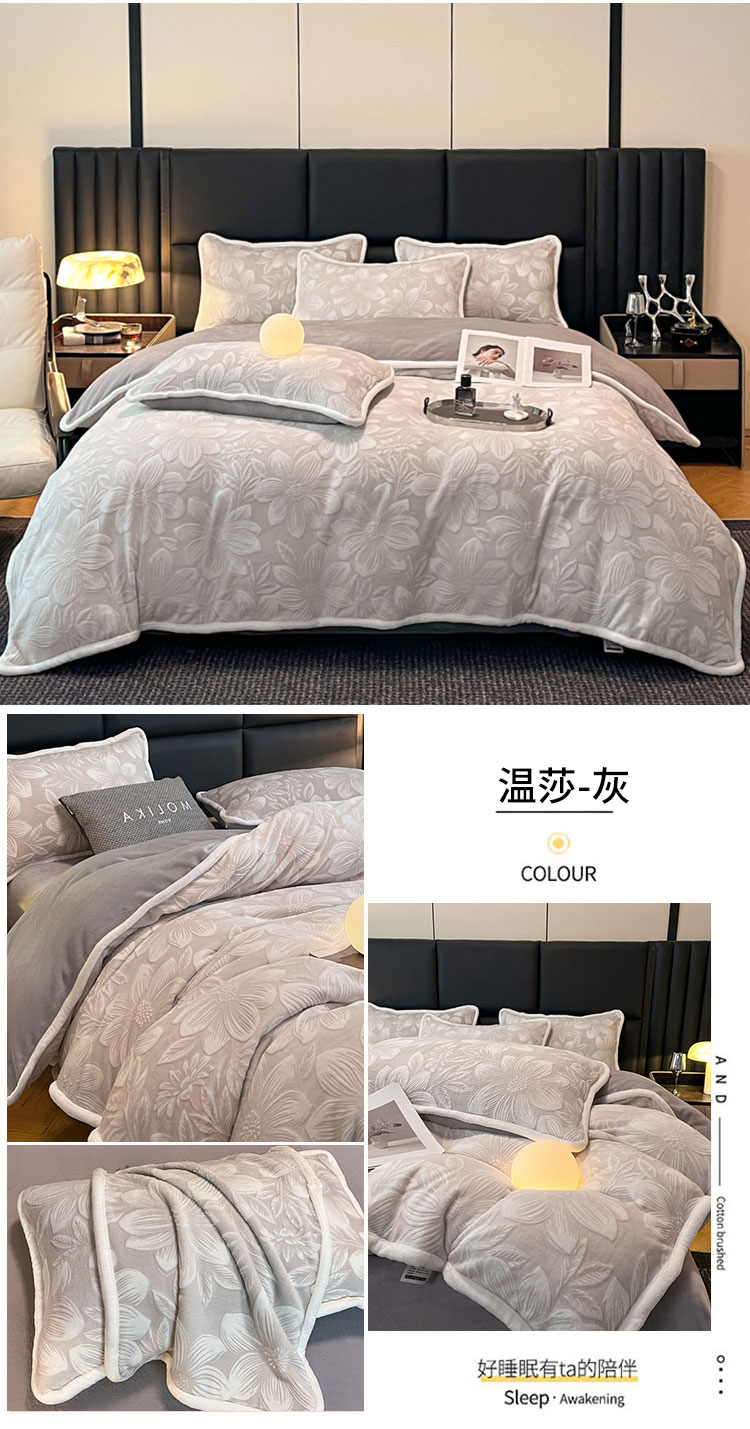 诺梵 2025新款立体雕花绒四件套_控价标准高于149,加大高于159 温莎-灰
