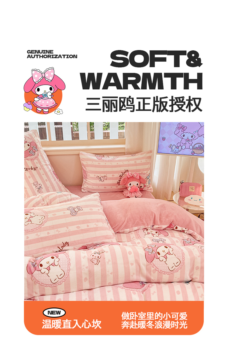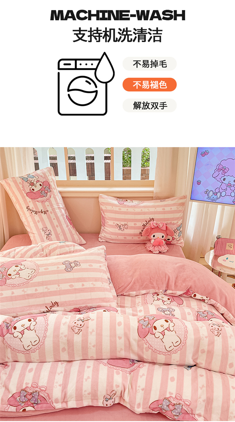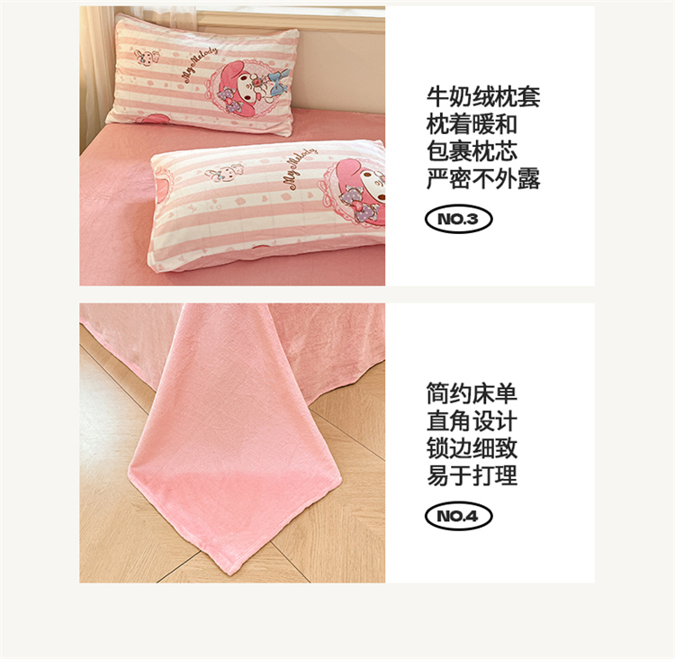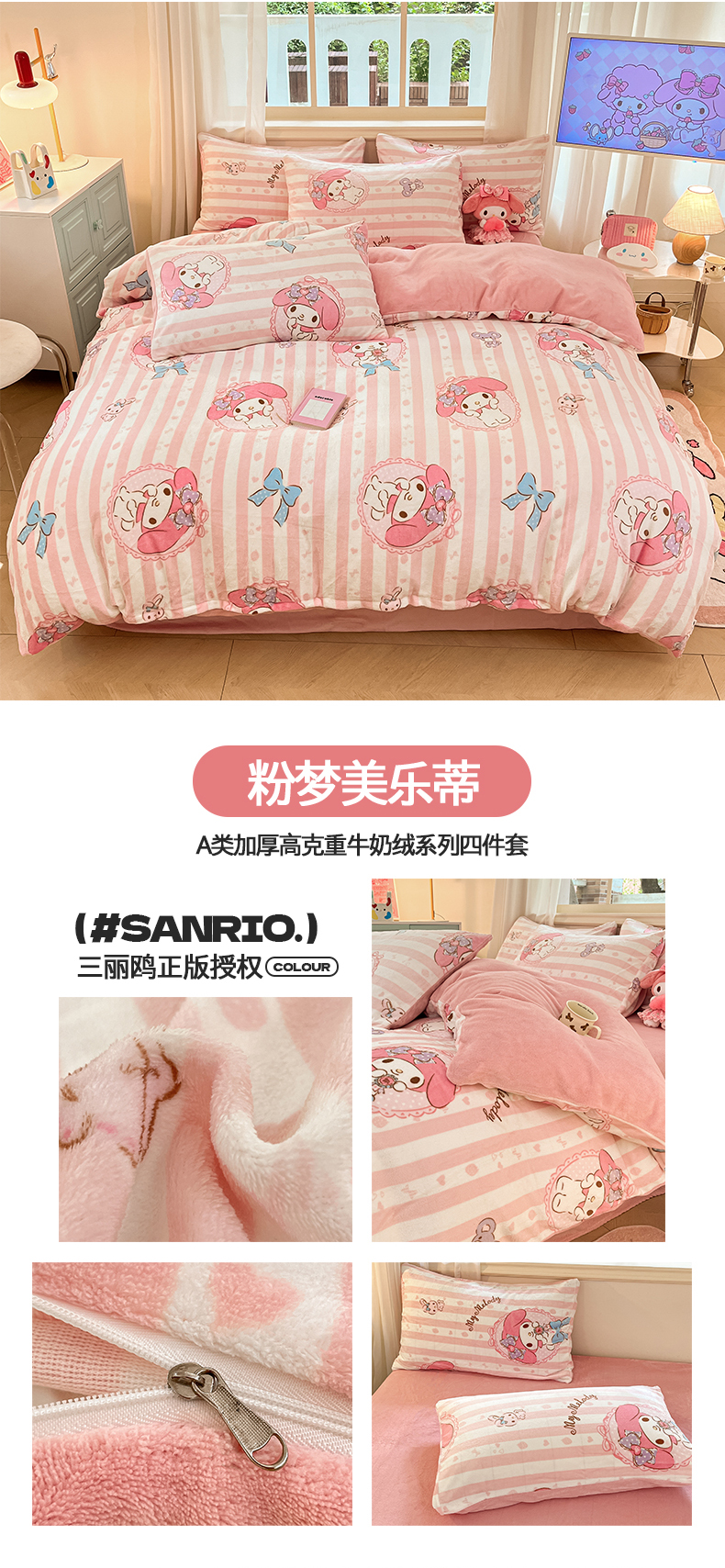 当前位置: 91家纺网 > 商品网购 > 床品套件 > 四件套 > 牛奶绒四件套 > 2024新品正版三丽鸥授权卡通加厚高克重牛奶绒系列四件套 绒三丽鸥-粉梦美乐蒂