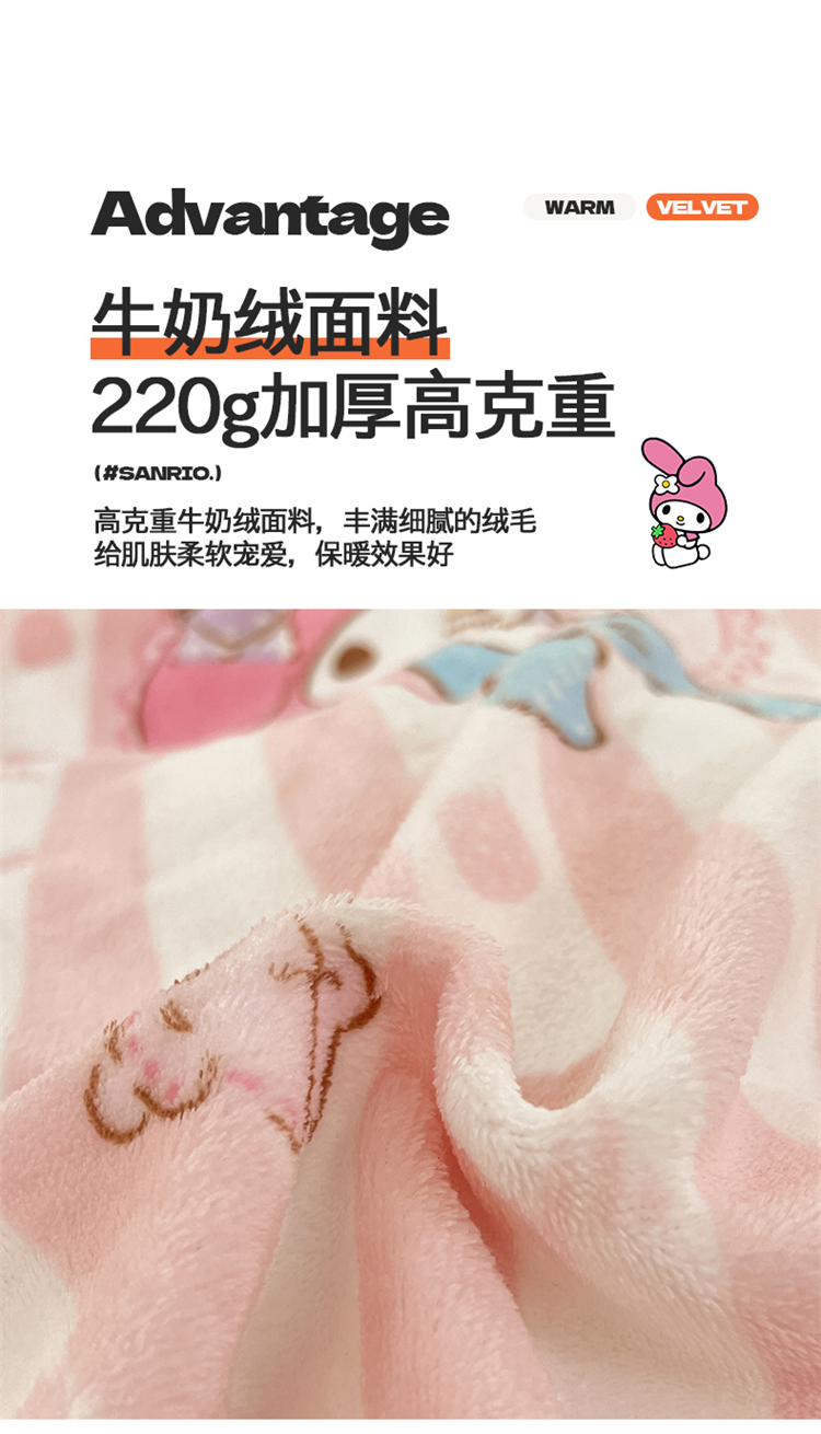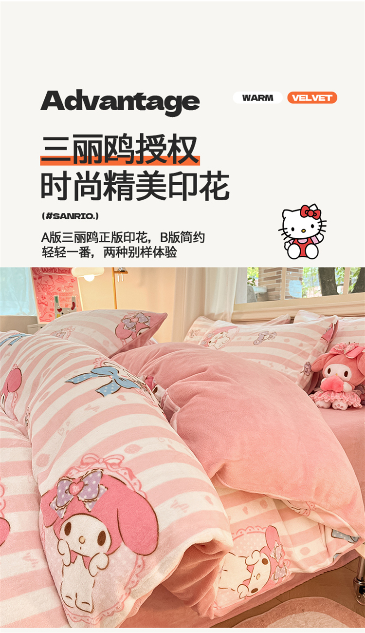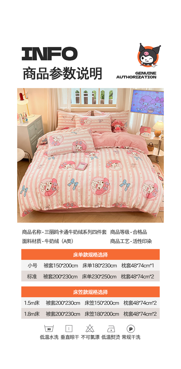 当前位置: 91家纺网 > 商品网购 > 床品套件 > 四件套 > 牛奶绒四件套 > 2024新品正版三丽鸥授权卡通加厚高克重牛奶绒系列四件套 绒三丽鸥-粉梦美乐蒂