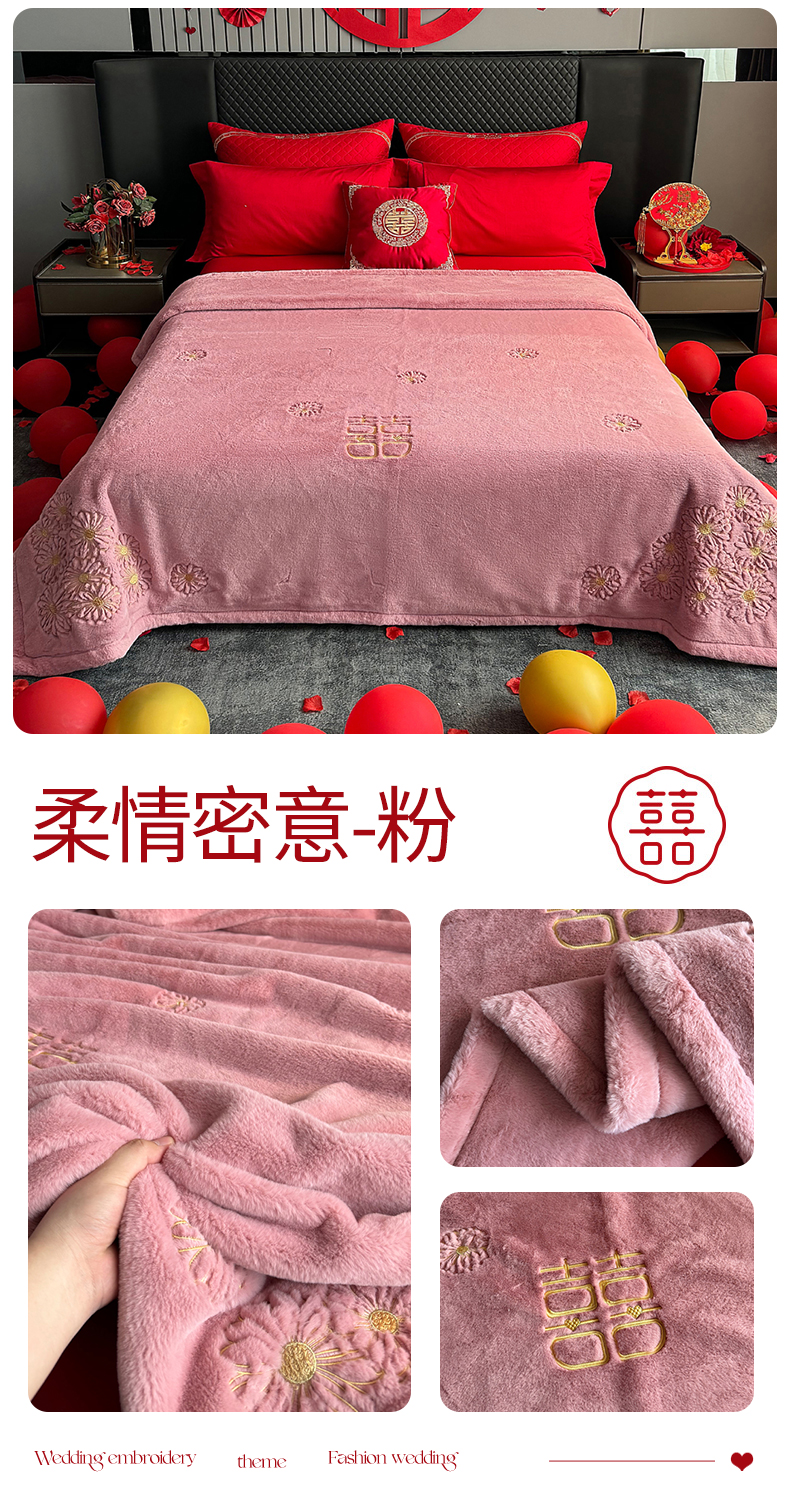 2024新款仿皮草兔绒精品绣花毛毯毯子 柔情密意-粉