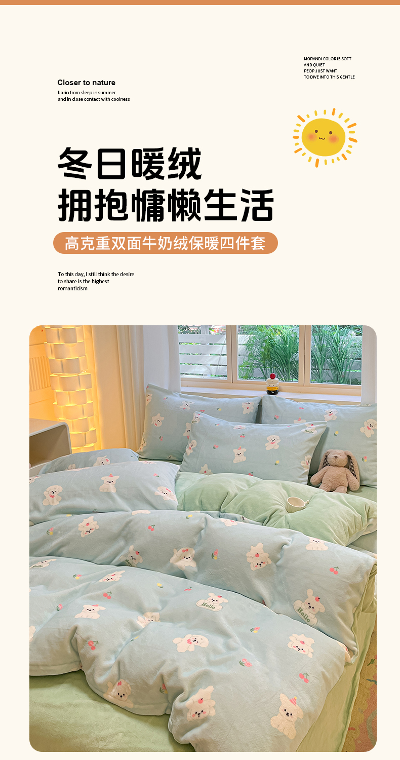 (总)铭宣 2025新款高克重牛奶绒印花保暖四件套床单床笠单被套款,爱丽丝花园,爱心兔-粉,爱心熊,豹纹猫咪,草莓熊,春日萌犬,高地犬-蓝,欢乐颂,黄油小熊,腊肠狗,蓝底小白狗,蓝调熊猫,萌仔熊猫,秘密花园,奶油派对,企鹅乐园,生日派对,甜心宝贝,甜樱萌宠,童话小兔,一帘幽梦,郁金香小兔,字母狗