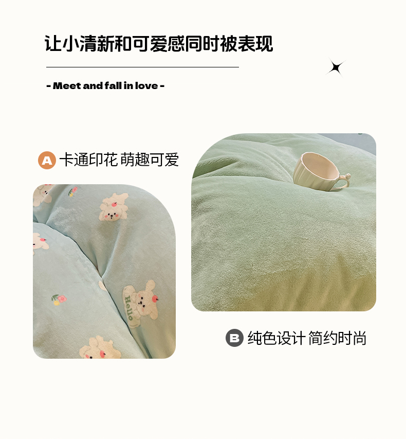 (总)铭宣家居 2025新款200g牛奶绒数码印花加毛巾绣四件套,海盐蛋糕,快乐萌友,萌餐格韵,萌喵花町,星落卡皮
