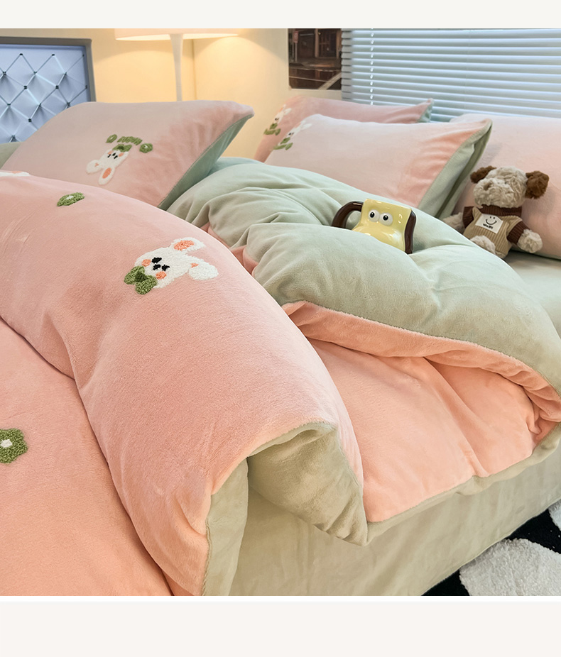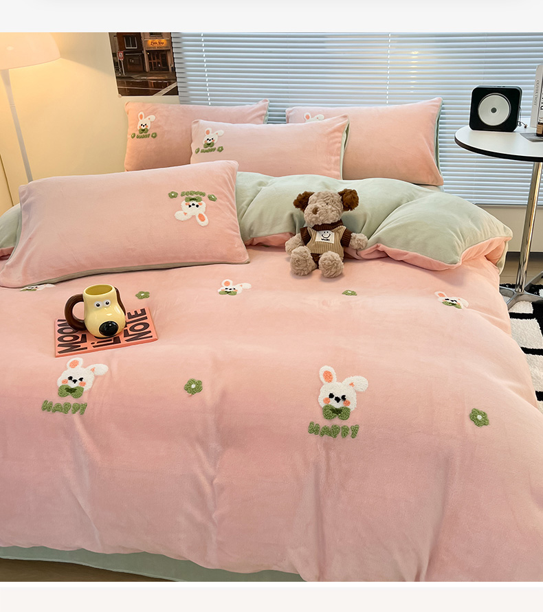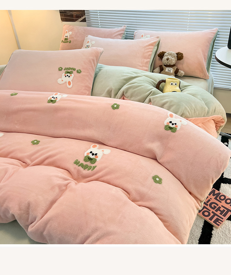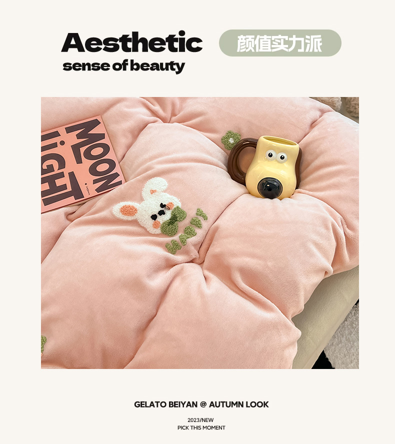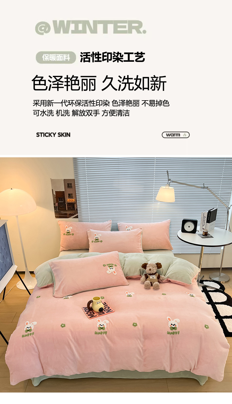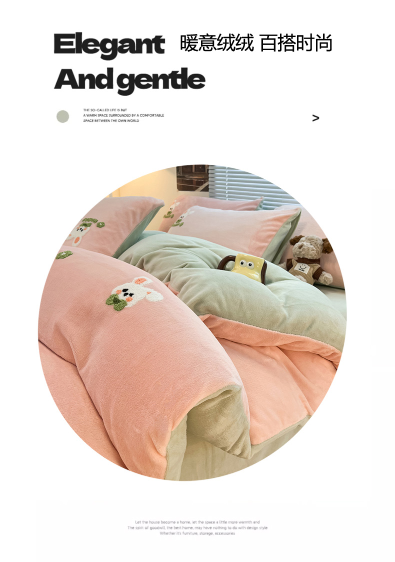 当前位置: 91家纺网 > 商品网购 > 床品套件 > 四件套 > 牛奶绒四件套 > 2024新款A类高克重牛奶绒毛巾绣加厚保暖系列四件套 毛巾绣小兔