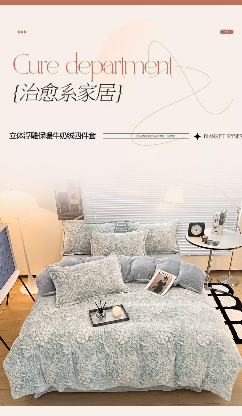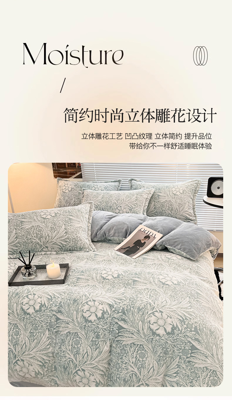 当前位置: 91家纺网 > 商品网购 > 床品套件 > 四件套 > 牛奶绒四件套 > 2024新款A类高克重立体浮雕牛奶绒加厚保暖系列-四件套 宛然蓝色
