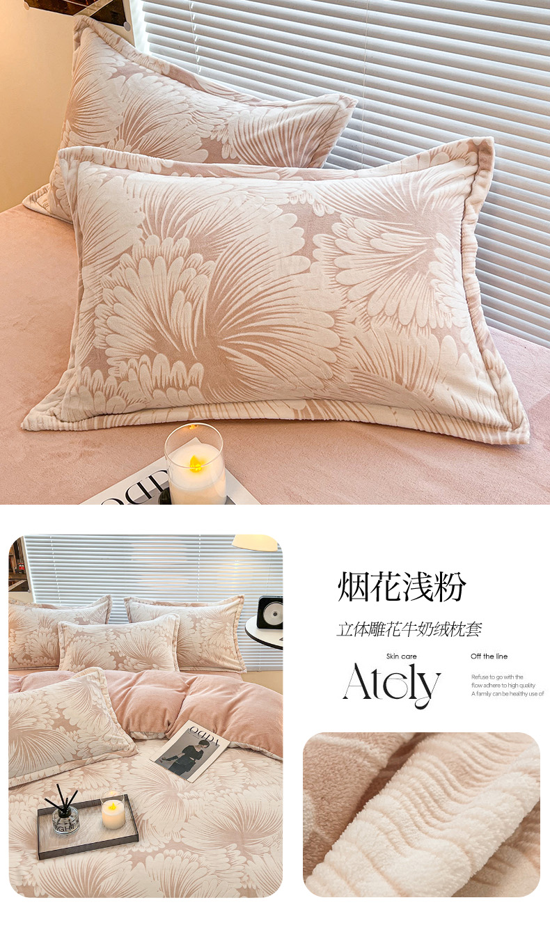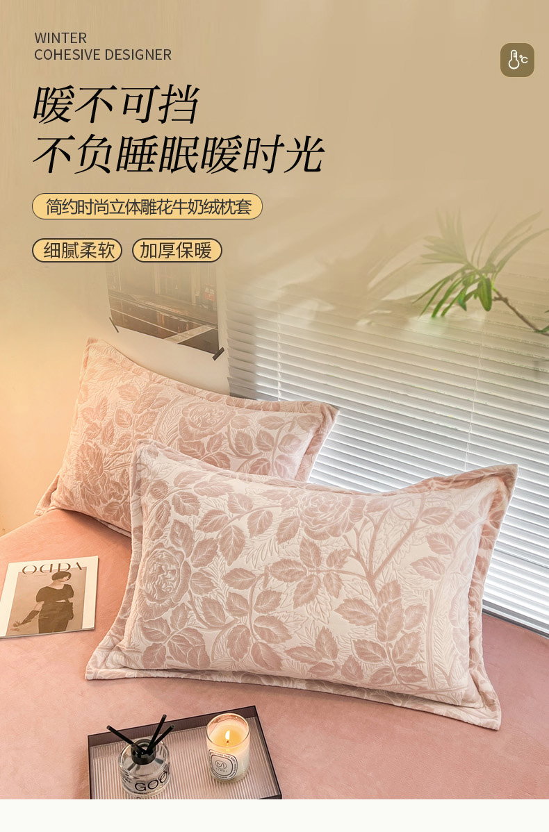 2024新款A类高克重立体浮雕牛奶绒加厚保暖系列-枕套 爱意浓蓝