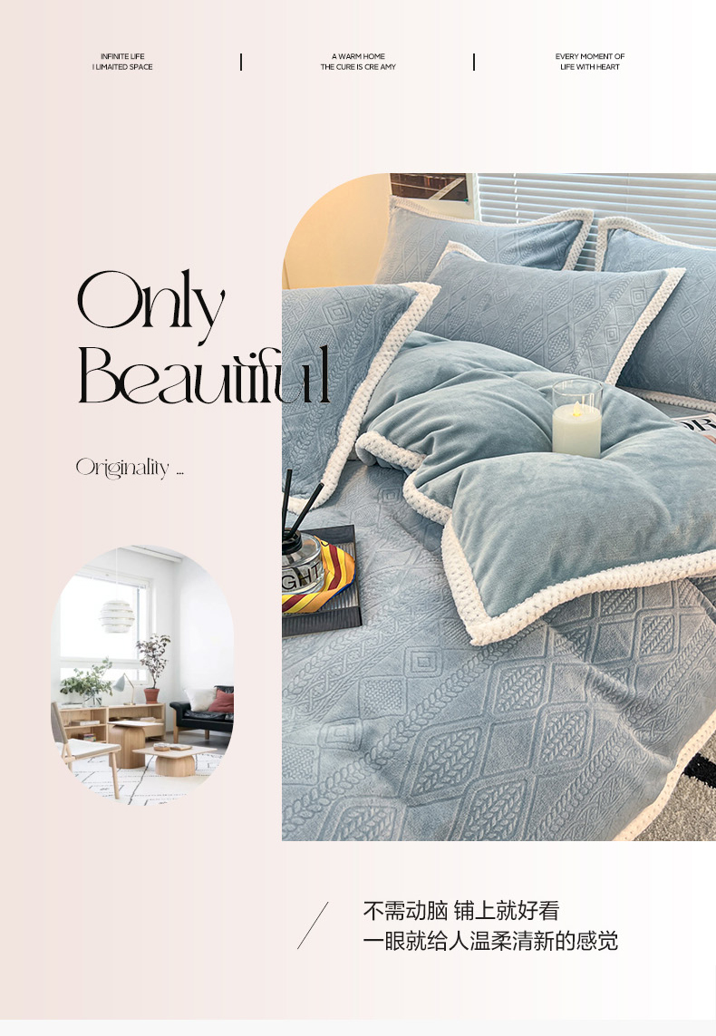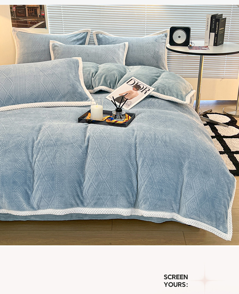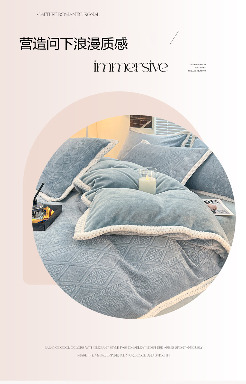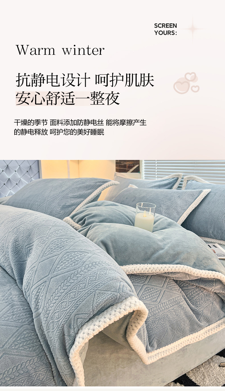 (总)倾慕 2025新款兔绒立体雕花加厚保暖系列四件套,爱娜玉,春絮蓝,春絮绿,伊宁玉,伊宁紫,优朵粉,珍妮粉,珍妮湖蓝