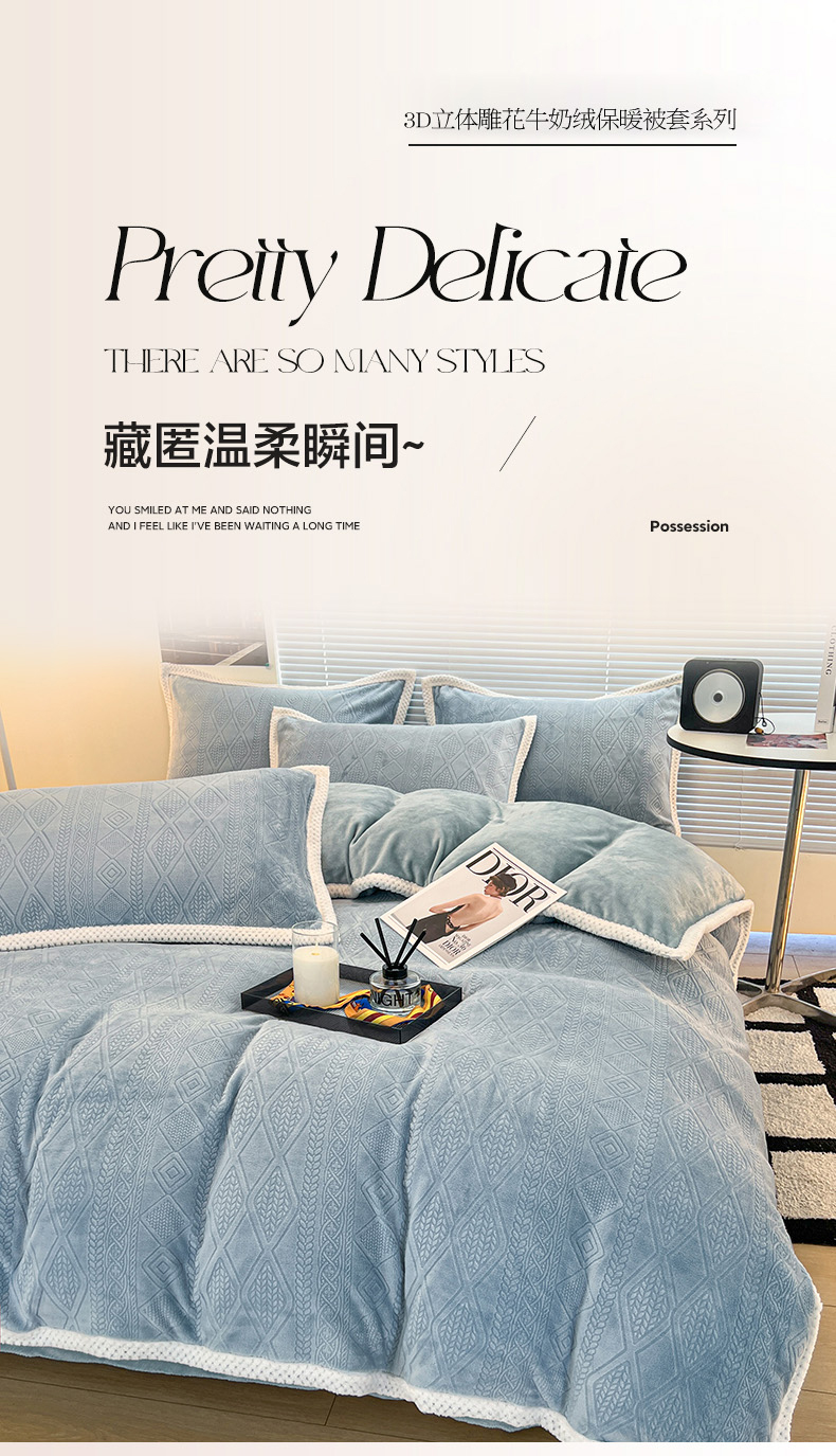2024新款A类高克重3D立体雕花牛奶绒保暖系列套件单品-被套 新暖意冰雪蓝