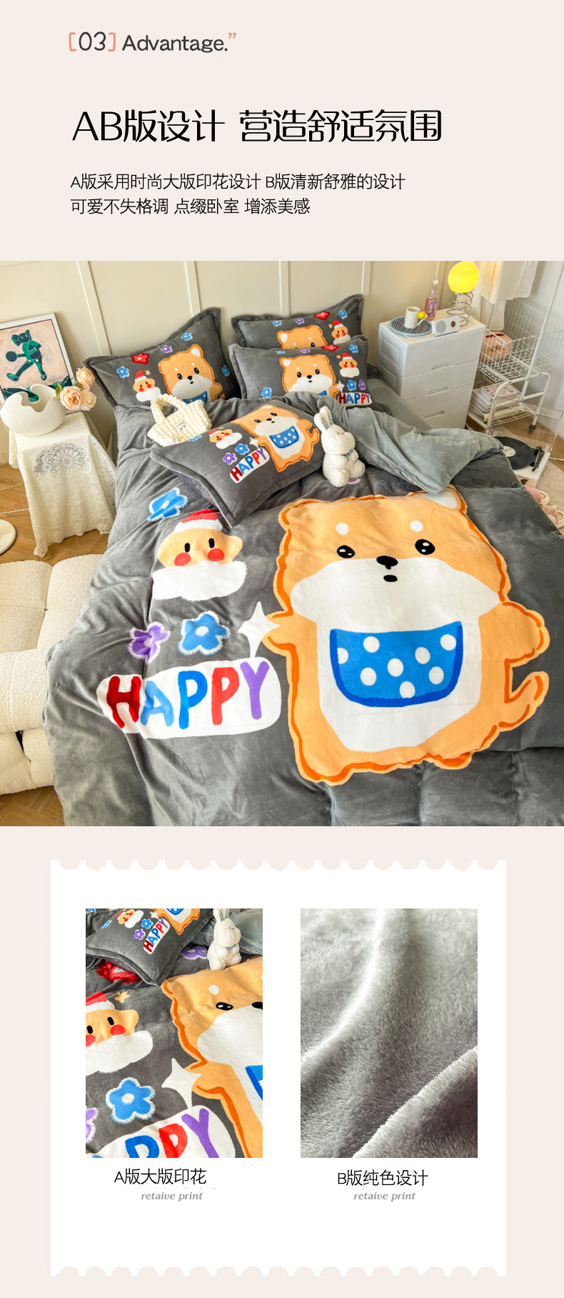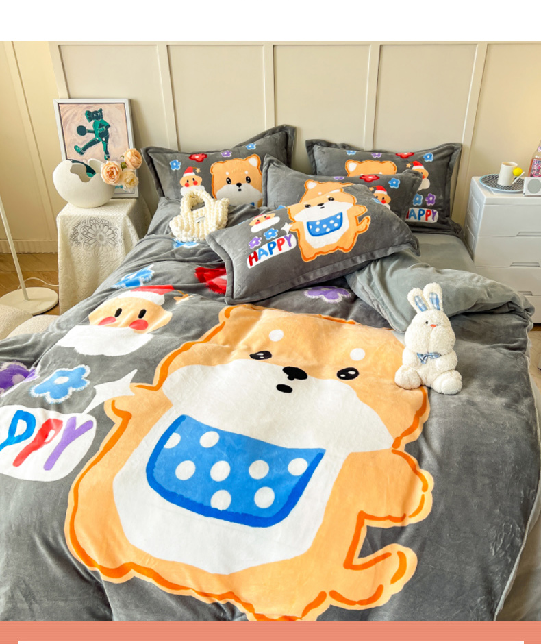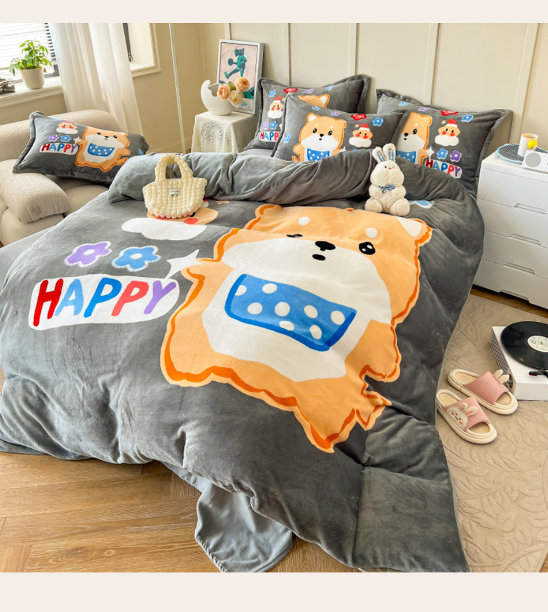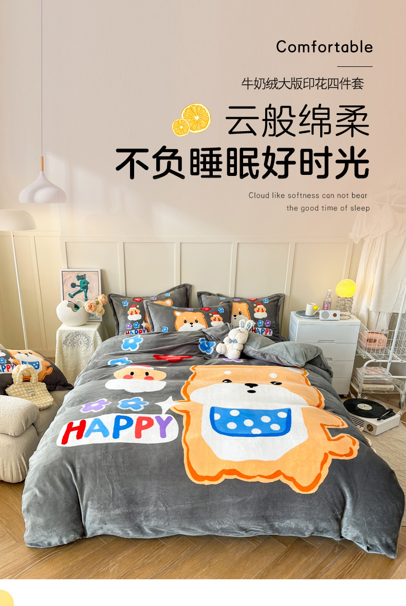 2024新款A类高克重牛奶绒大版印花保暖四件套 哈哈小犬